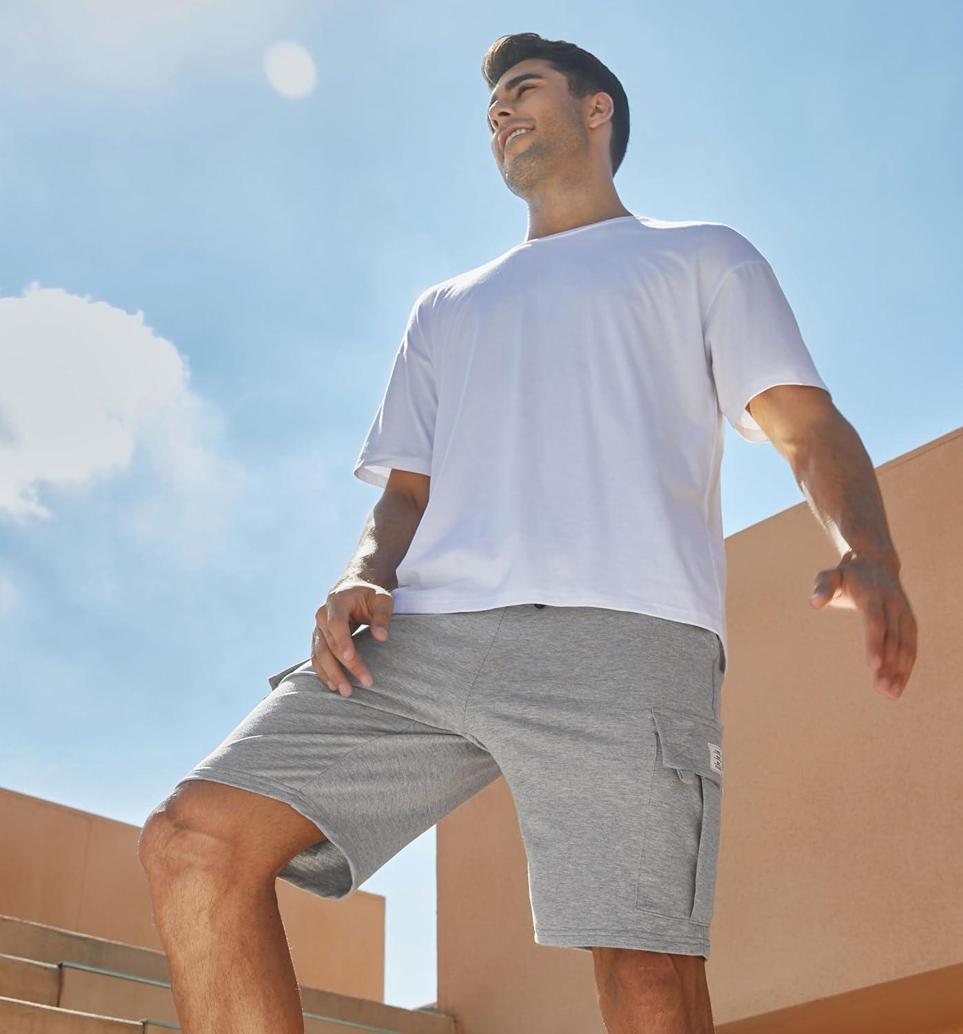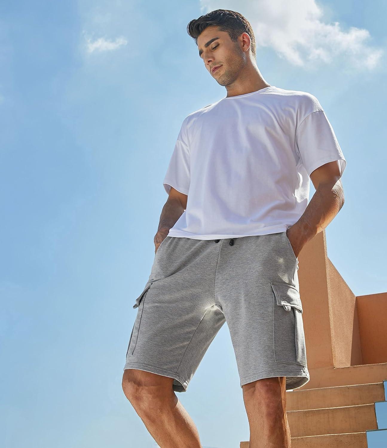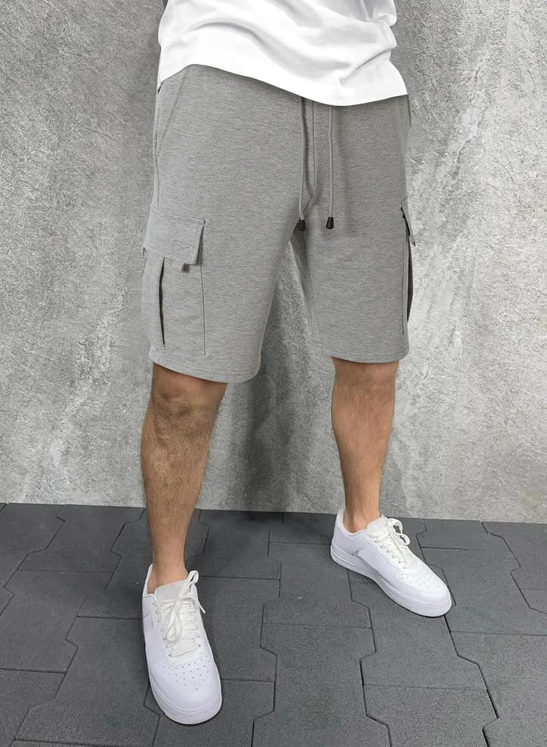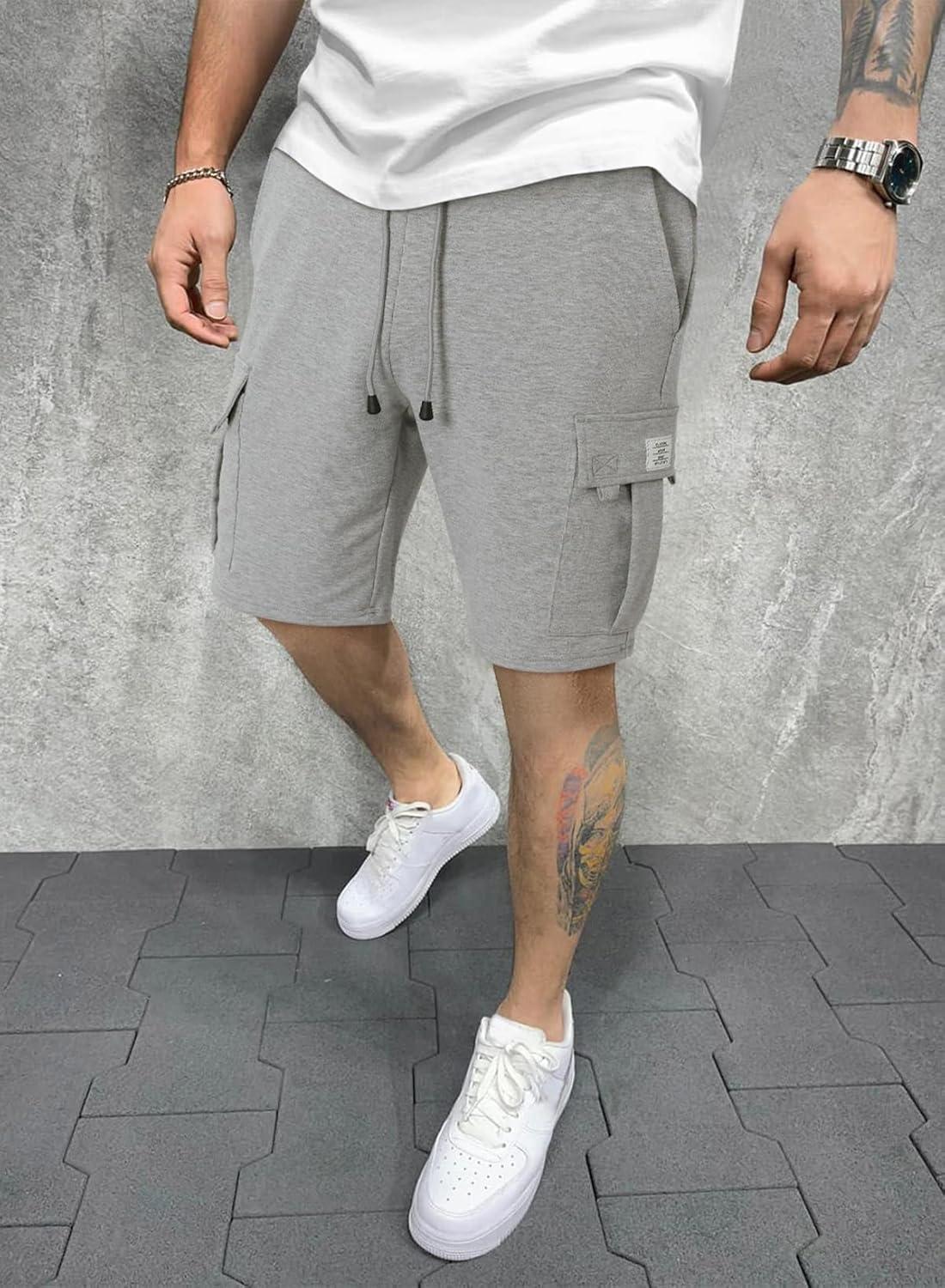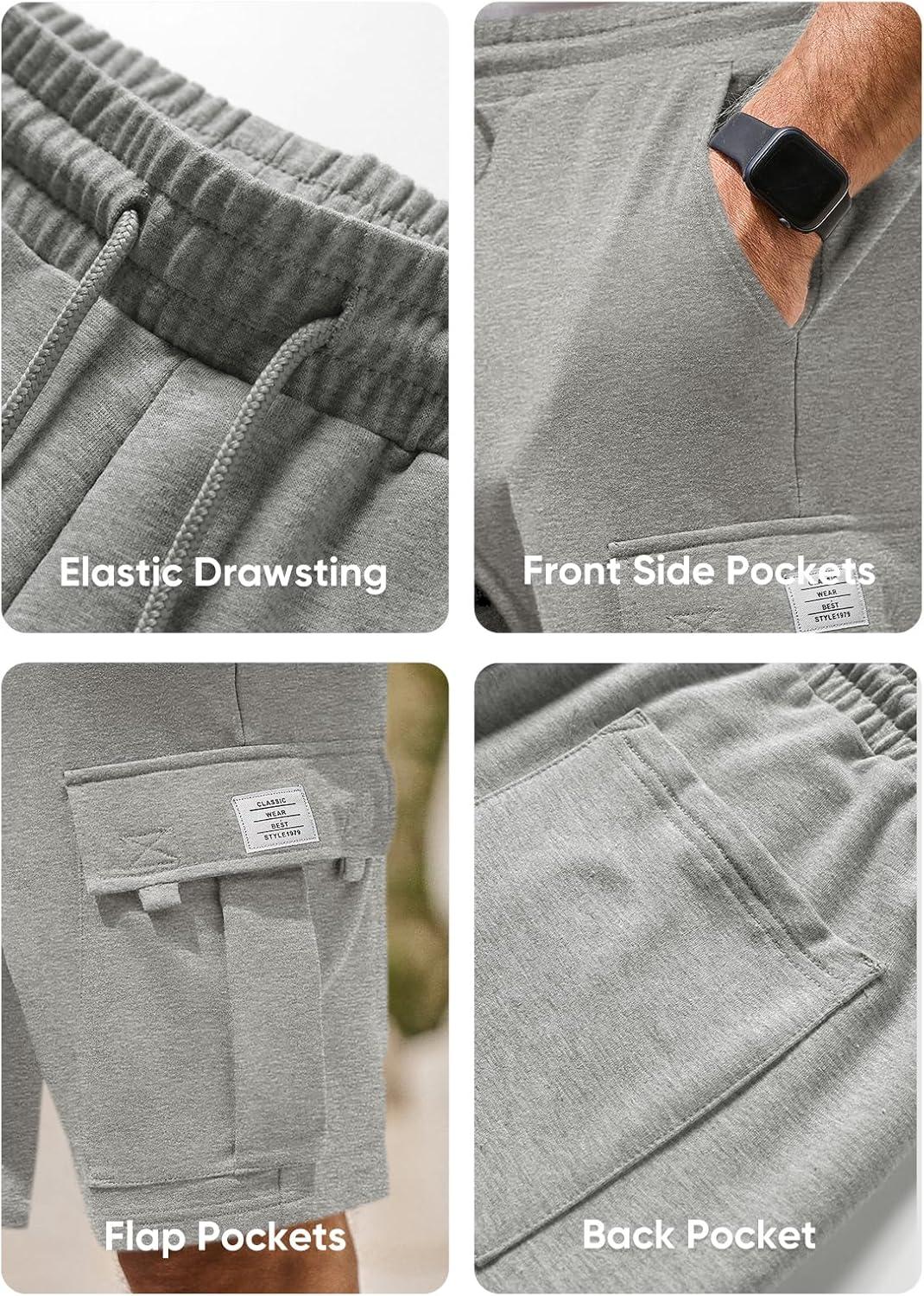 JMIERR Mens Cargo Sweat Shorts – Casual Drawstring Elastic Waist Cotton Athletic Workout Gym Jogger Shorts with 5 Pockets(A Grey 1)