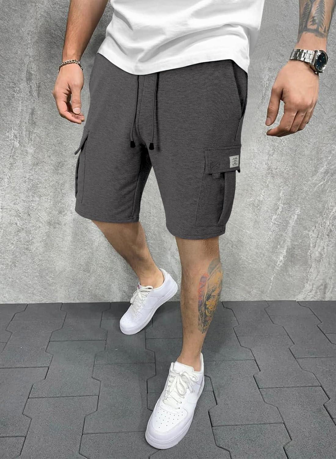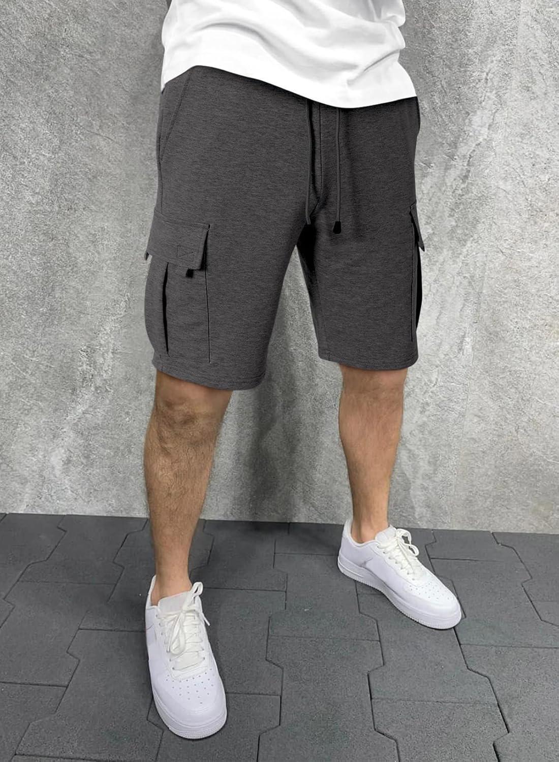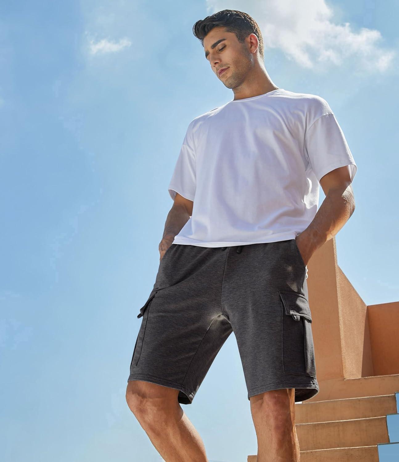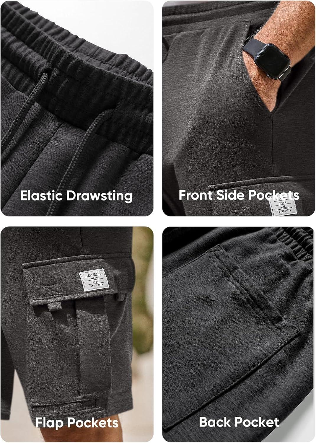 JMIERR Mens Cargo Sweat Shorts – Casual Drawstring Elastic Waist Cotton Athletic Workout Gym Jogger Shorts with 5 Pockets(A Grey 2)
