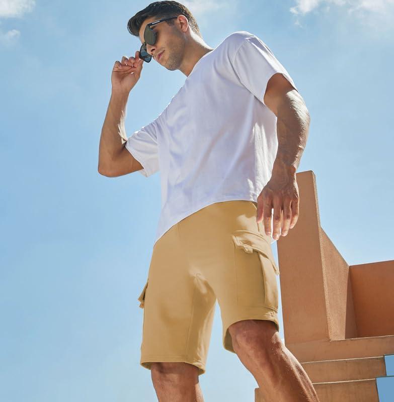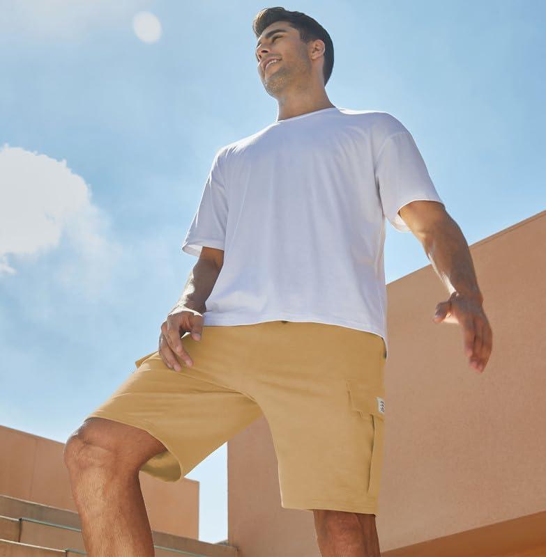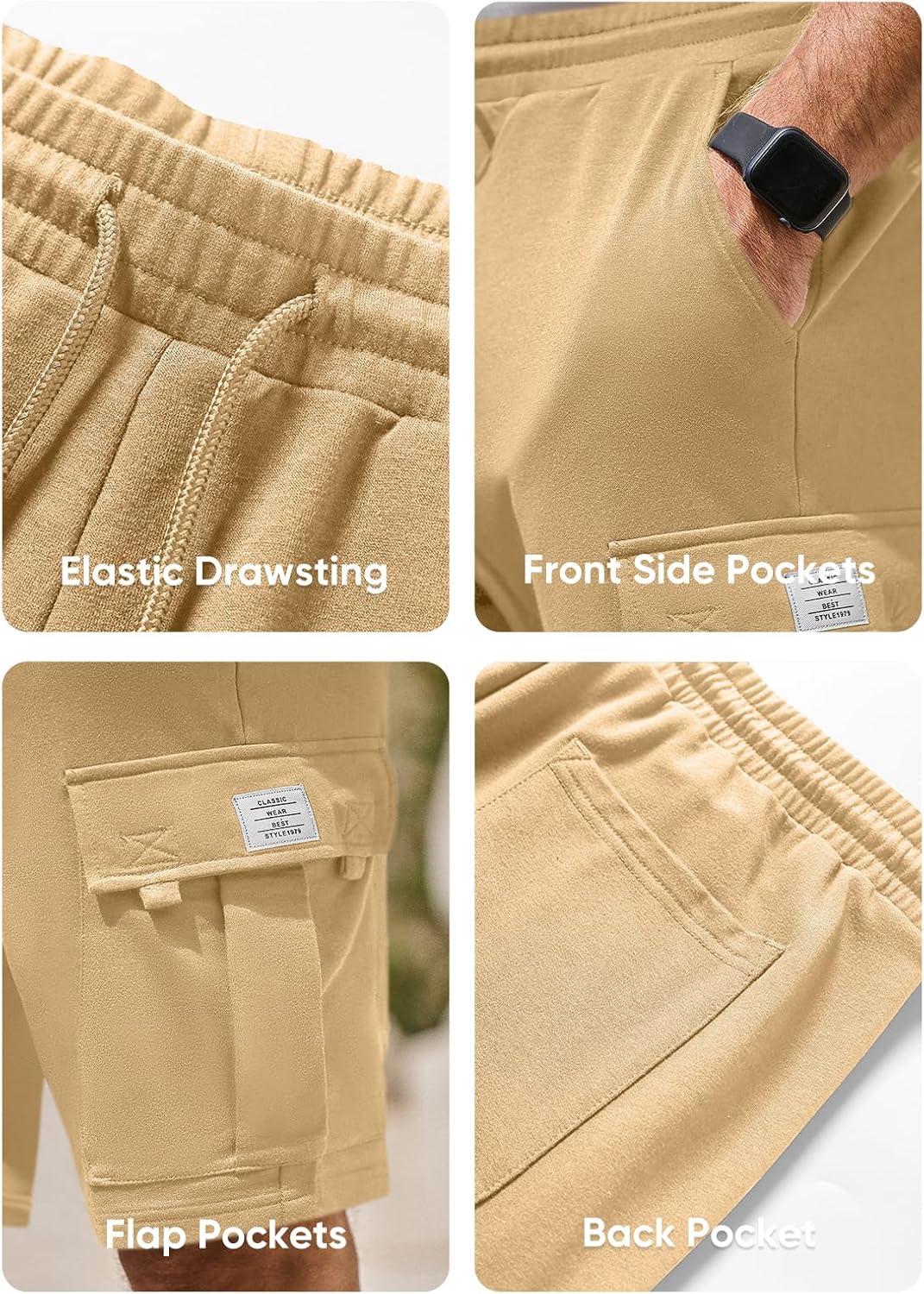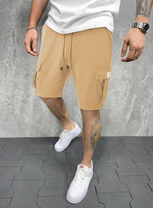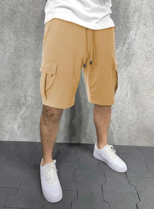 JMIERR Mens Cargo Sweat Shorts – Casual Drawstring Elastic Waist Cotton Athletic Workout Gym Jogger Shorts with 5 Pockets(B Beige 2)