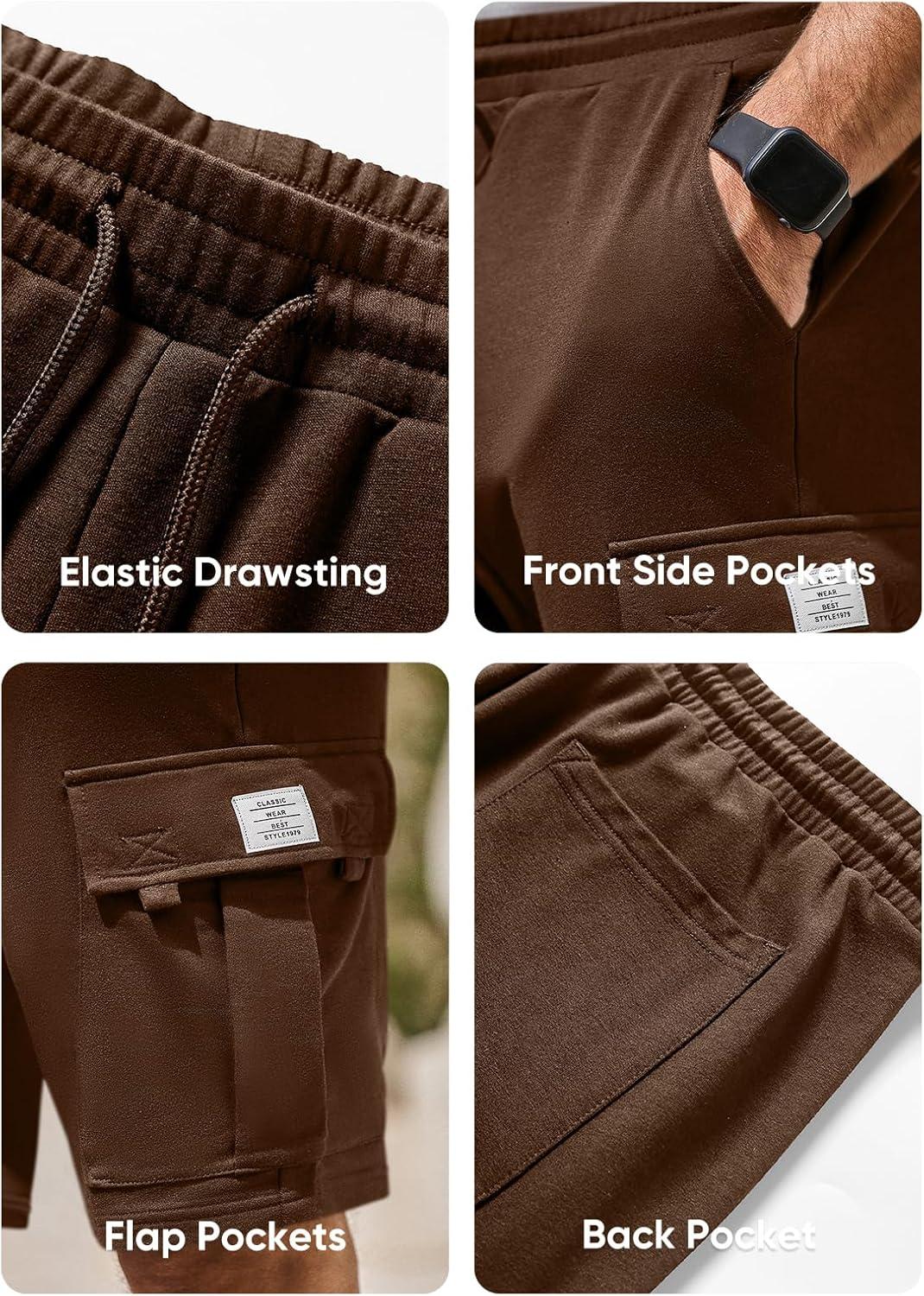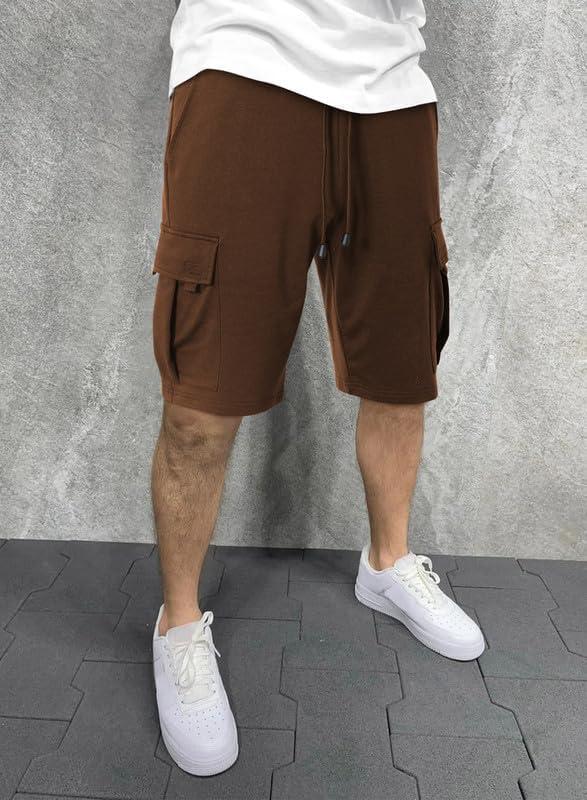 JMIERR Mens Cargo Sweat Shorts – Casual Drawstring Elastic Waist Cotton Athletic Workout Gym Jogger Shorts with 5 Pockets(B Dark Brown)
