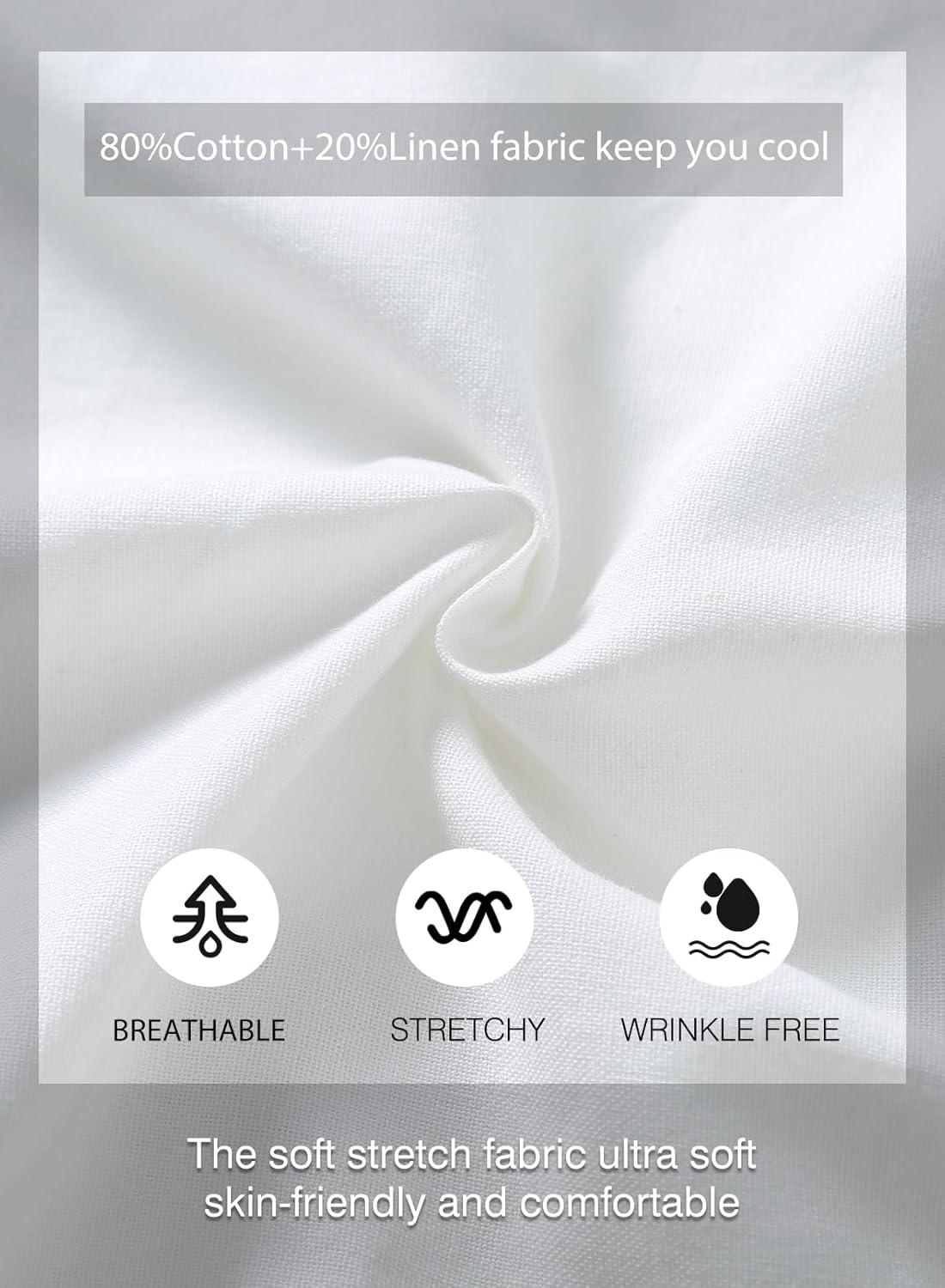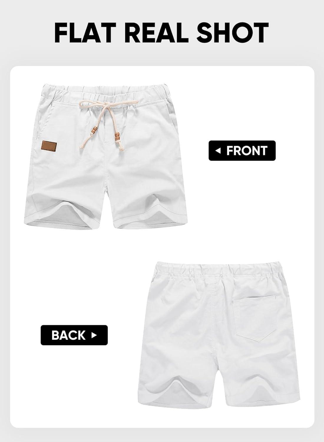 JMIERR Mens Casual 5″/ 7″ Cotton Linen Shorts – Elastic Waist Drawstring Summer Beach Shorts with Pockets(0 White)