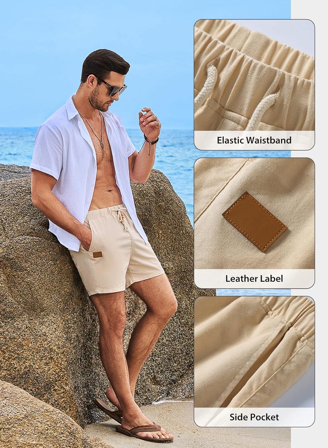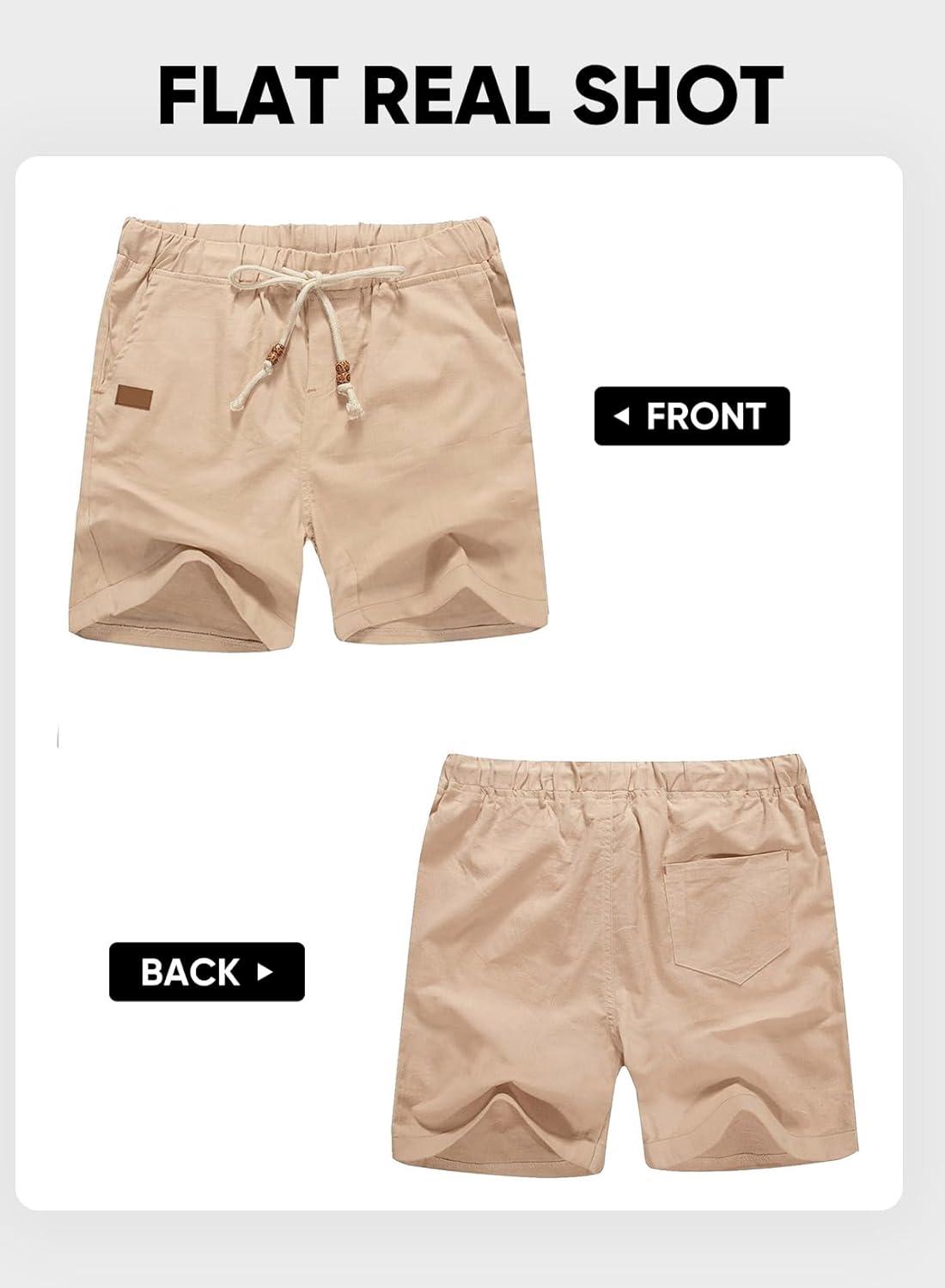 JMIERR Mens Casual 5″/ 7″ Cotton Linen Shorts – Elastic Waist Drawstring Summer Beach Shorts with Pockets(A Khaki)