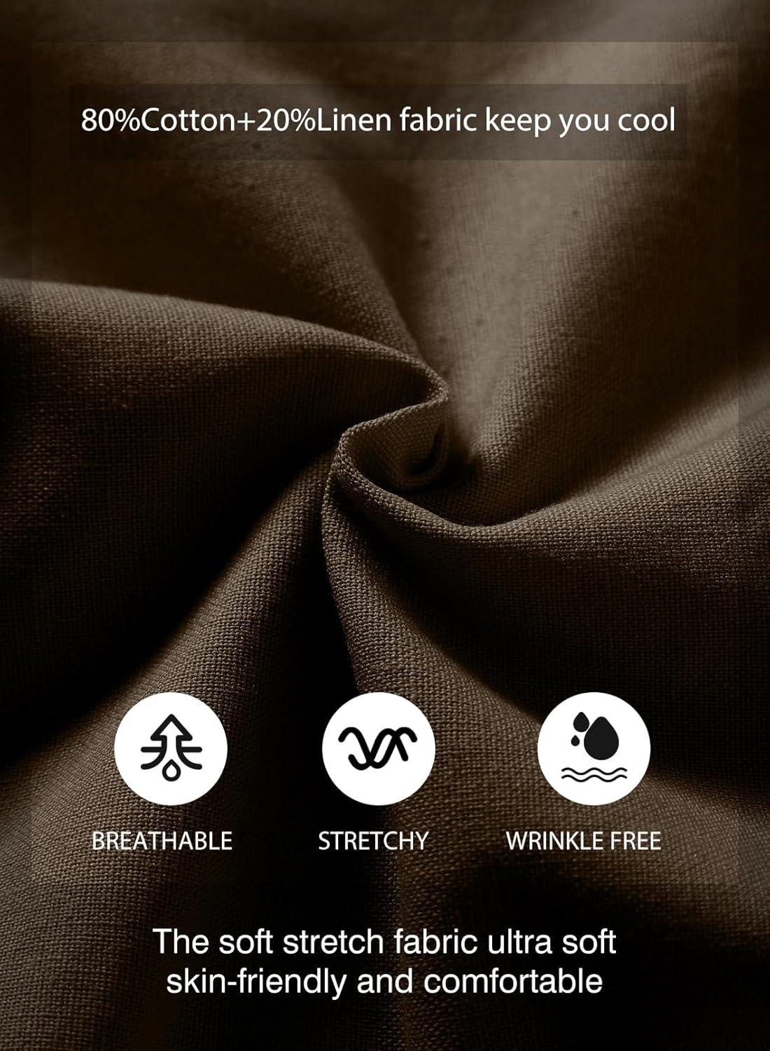 JMIERR Mens Casual 5″/ 7″ Cotton Linen Shorts – Elastic Waist Drawstring Summer Beach Shorts with Pockets(B Brown)