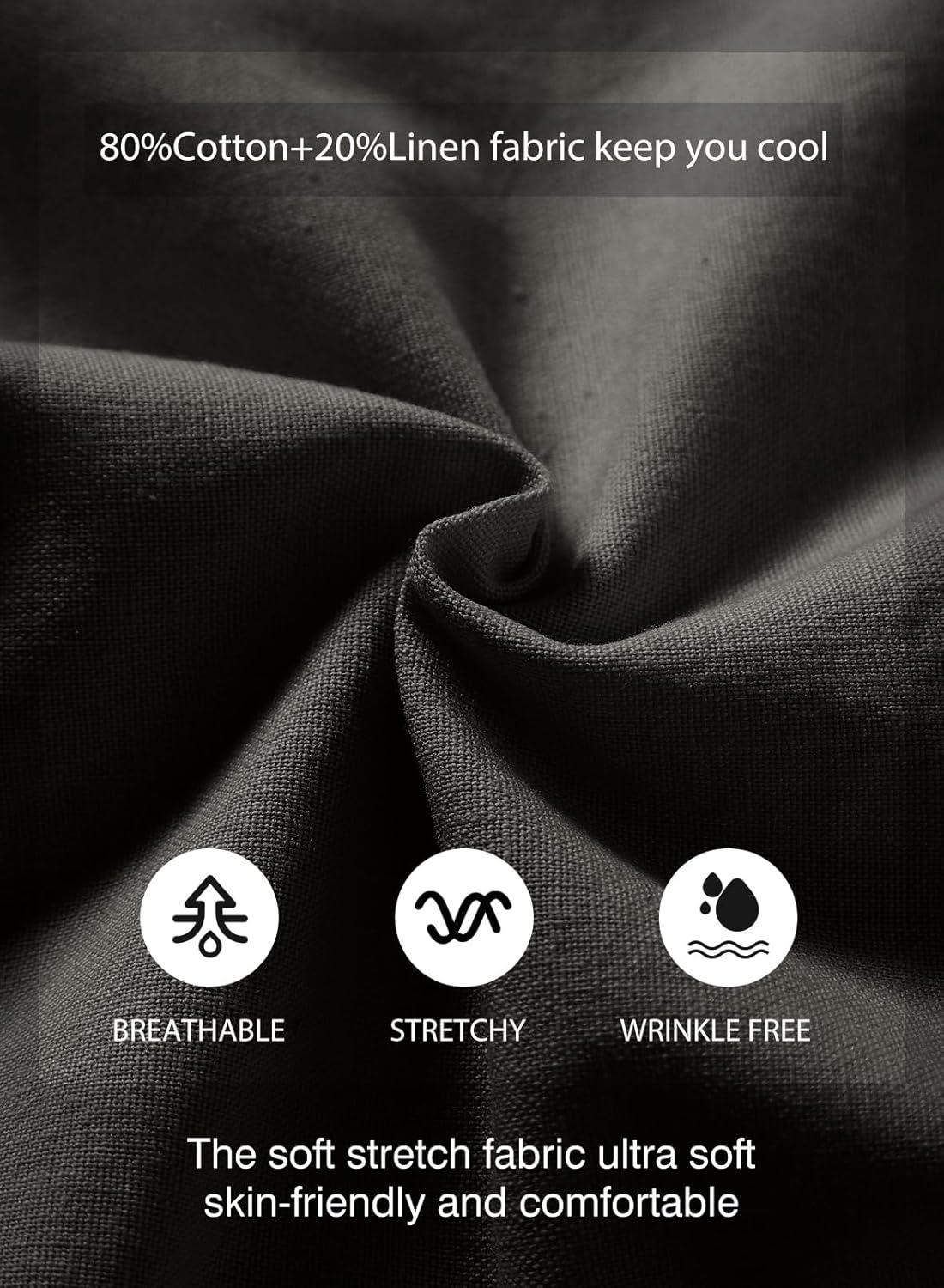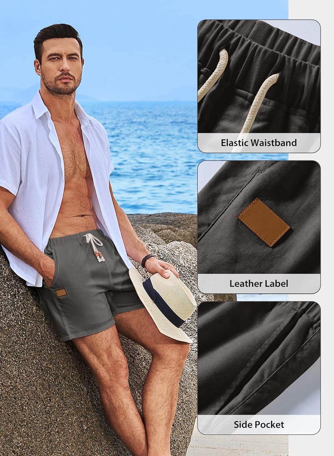 JMIERR Mens Casual 5″/ 7″ Cotton Linen Shorts – Elastic Waist Drawstring Summer Beach Shorts with Pockets(B Dark Grey)