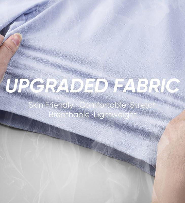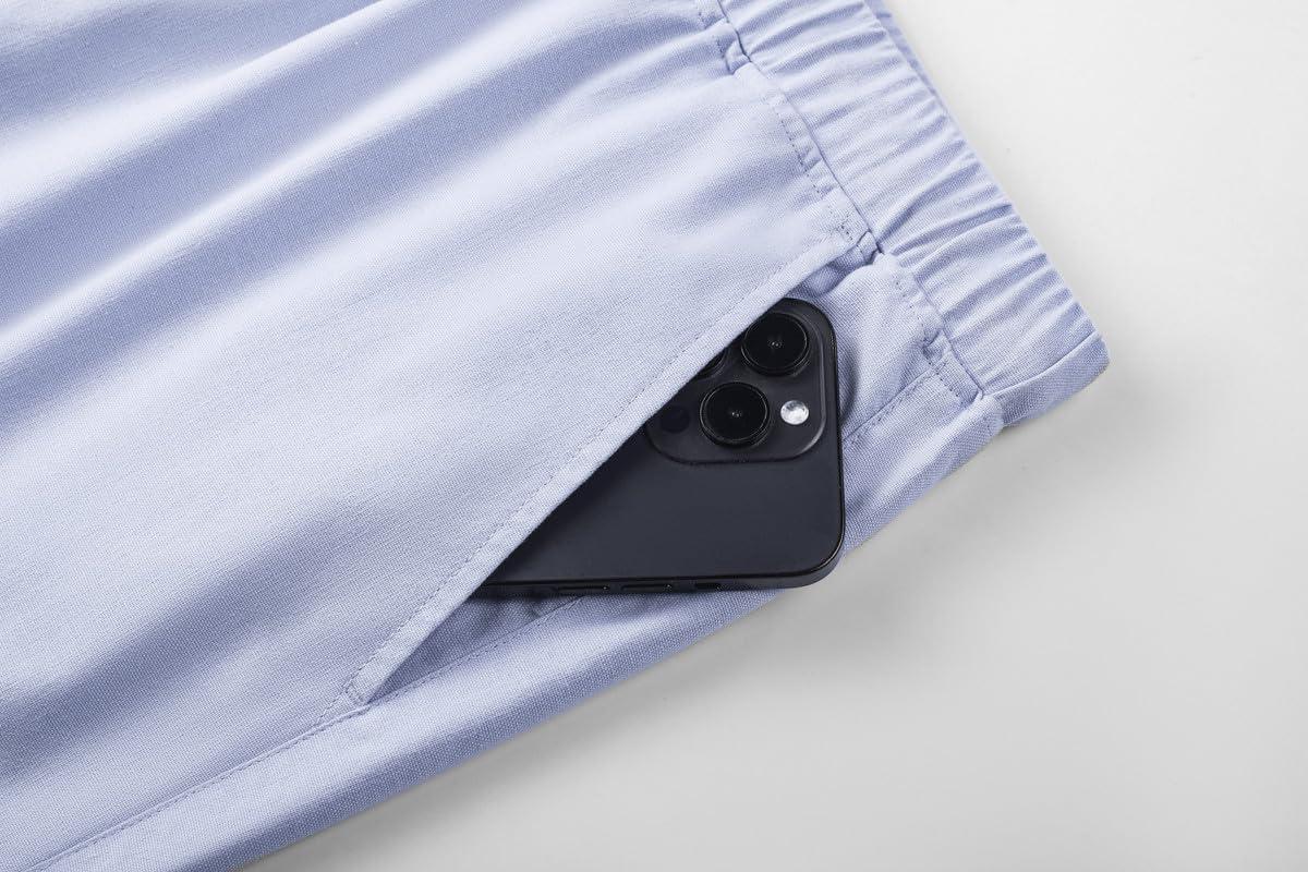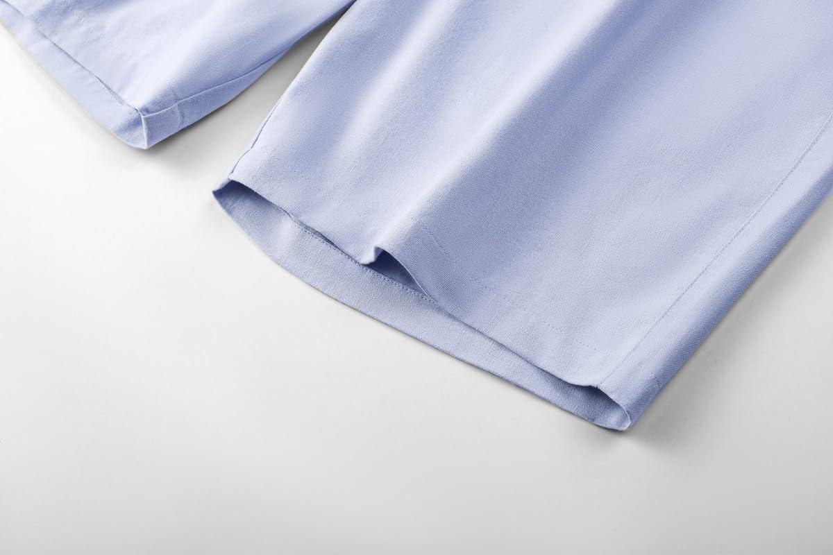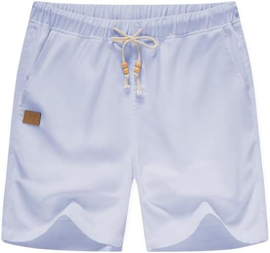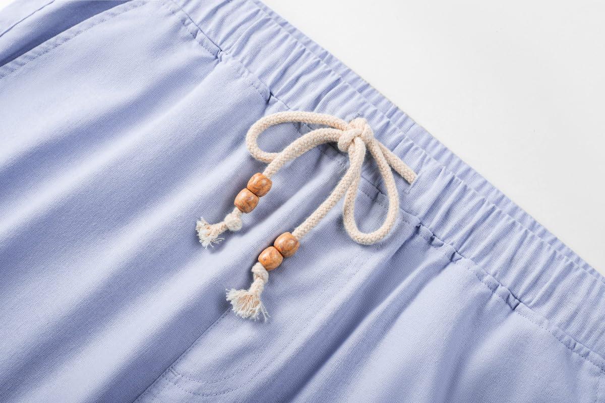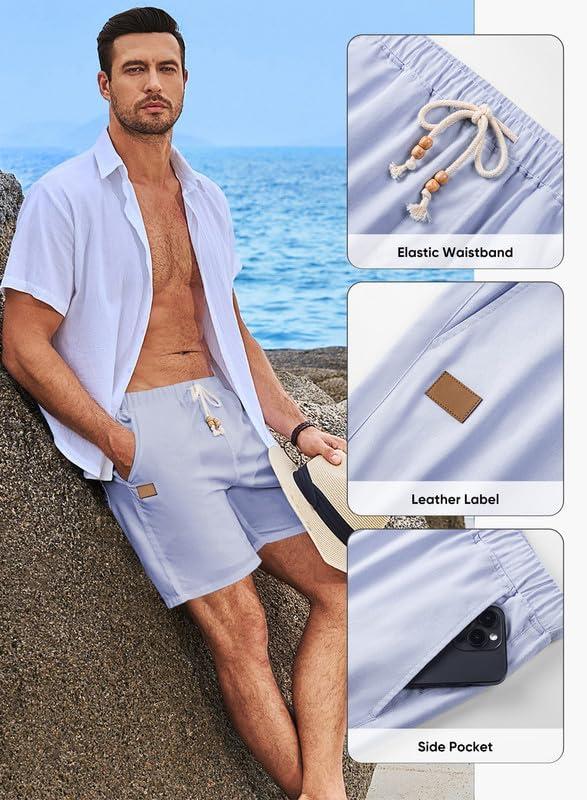 JMIERR Mens Casual 5″/ 7″ Cotton Linen Shorts – Elastic Waist Drawstring Summer Beach Shorts with Pockets(F Light Blue)