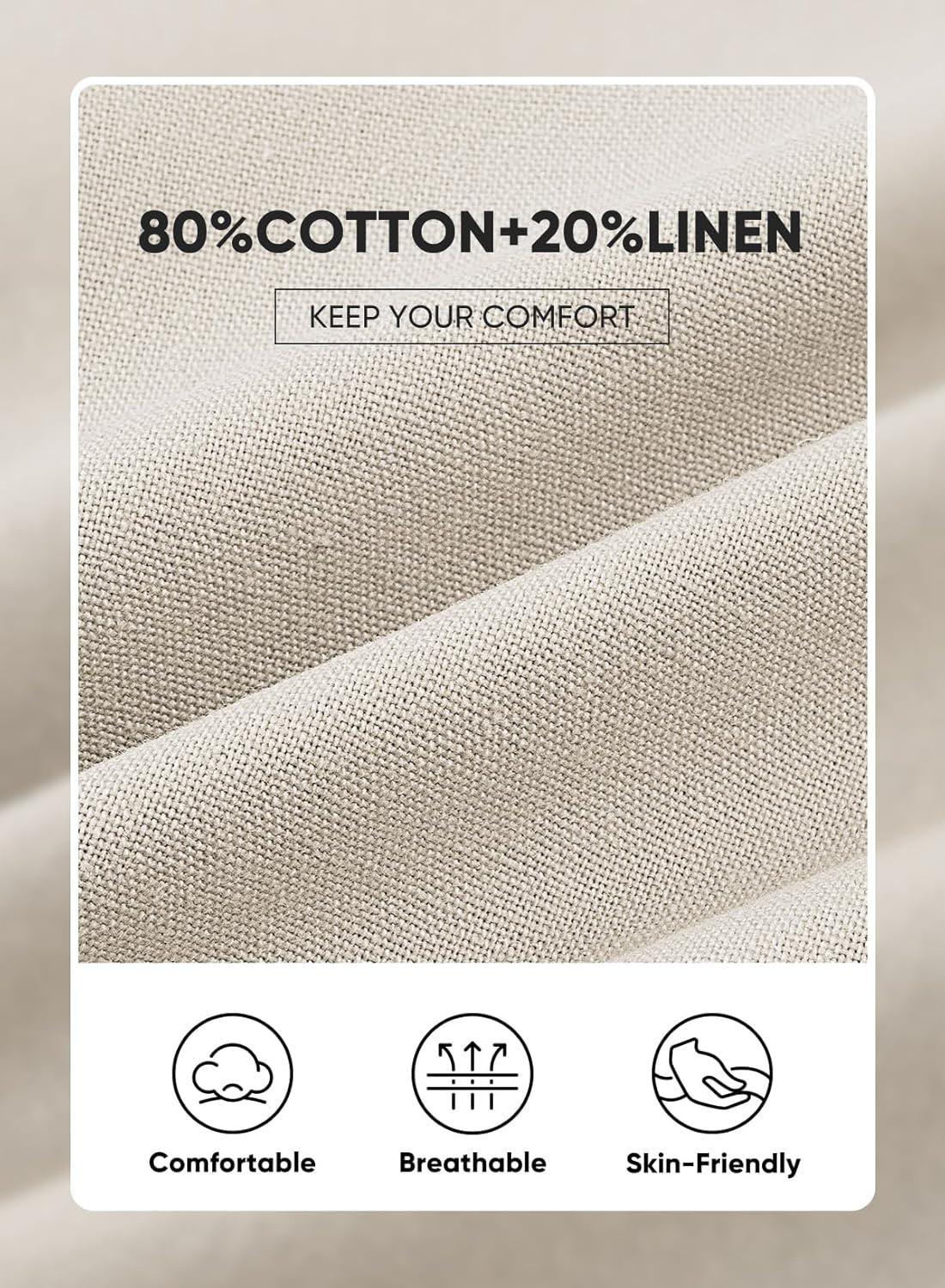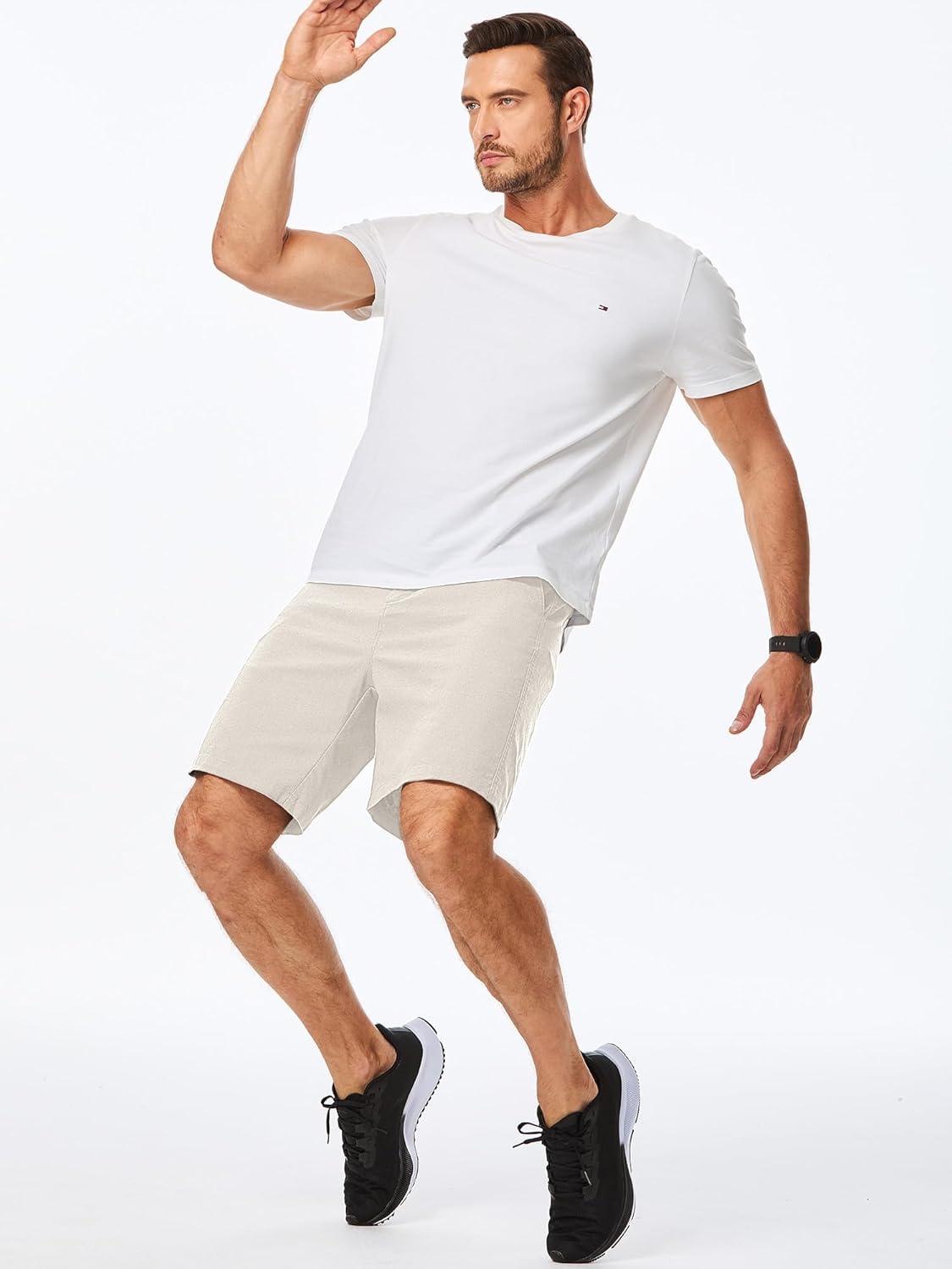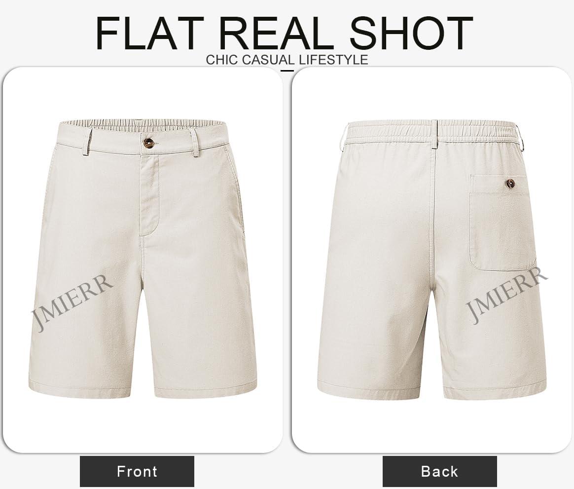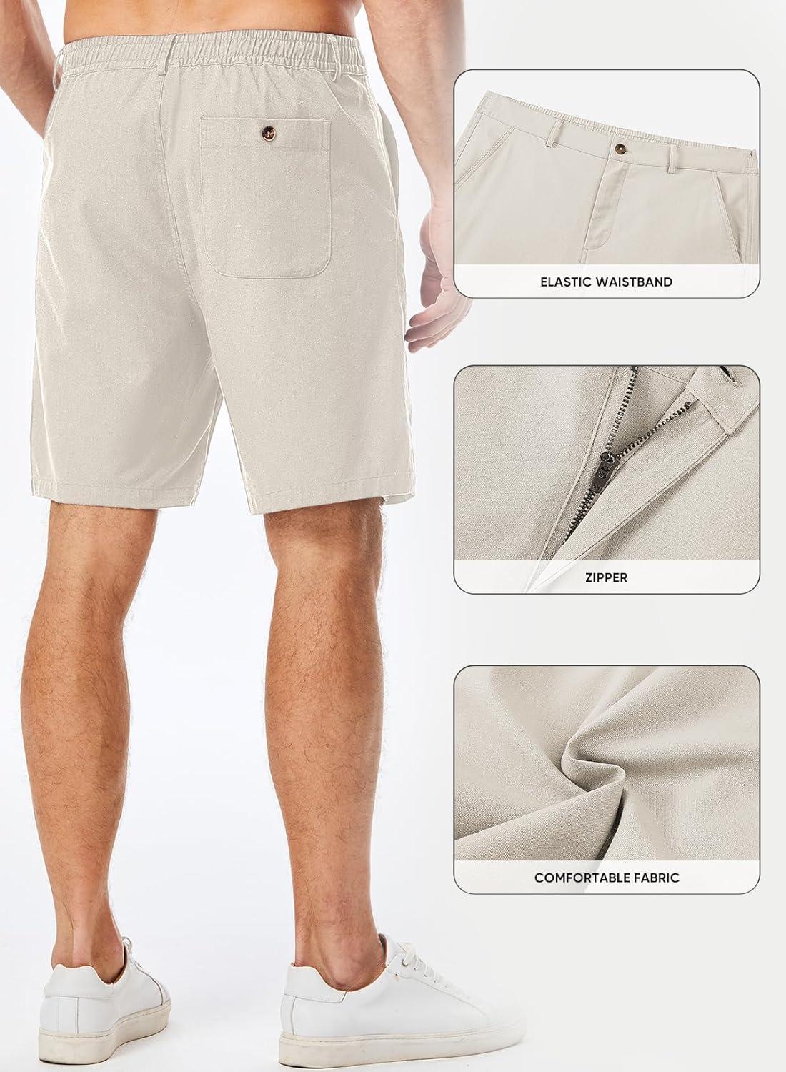JMIERR Mens Casual 8″ Cotton Linen Shorts – Button Waist Summer Beach Shorts with Pockets(Beige)