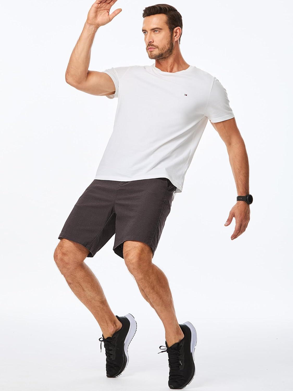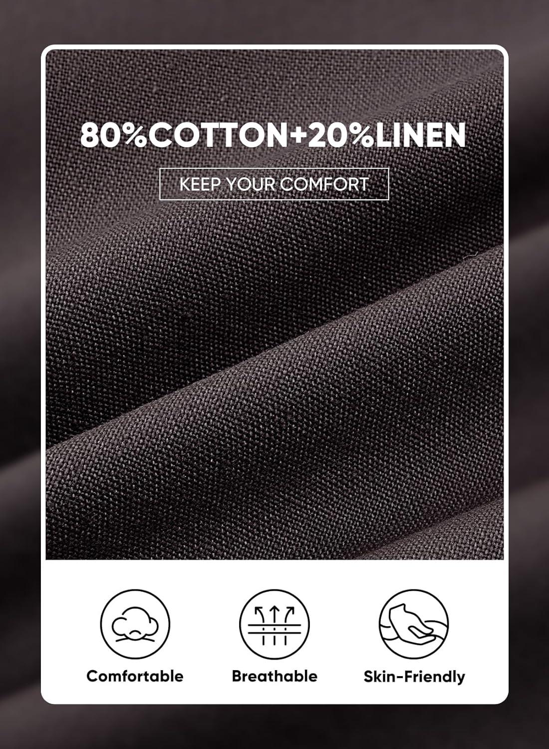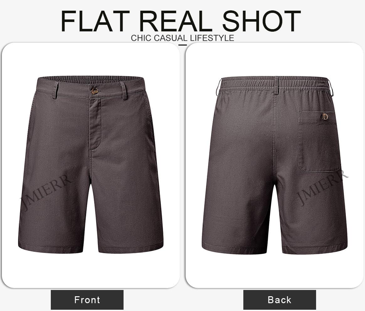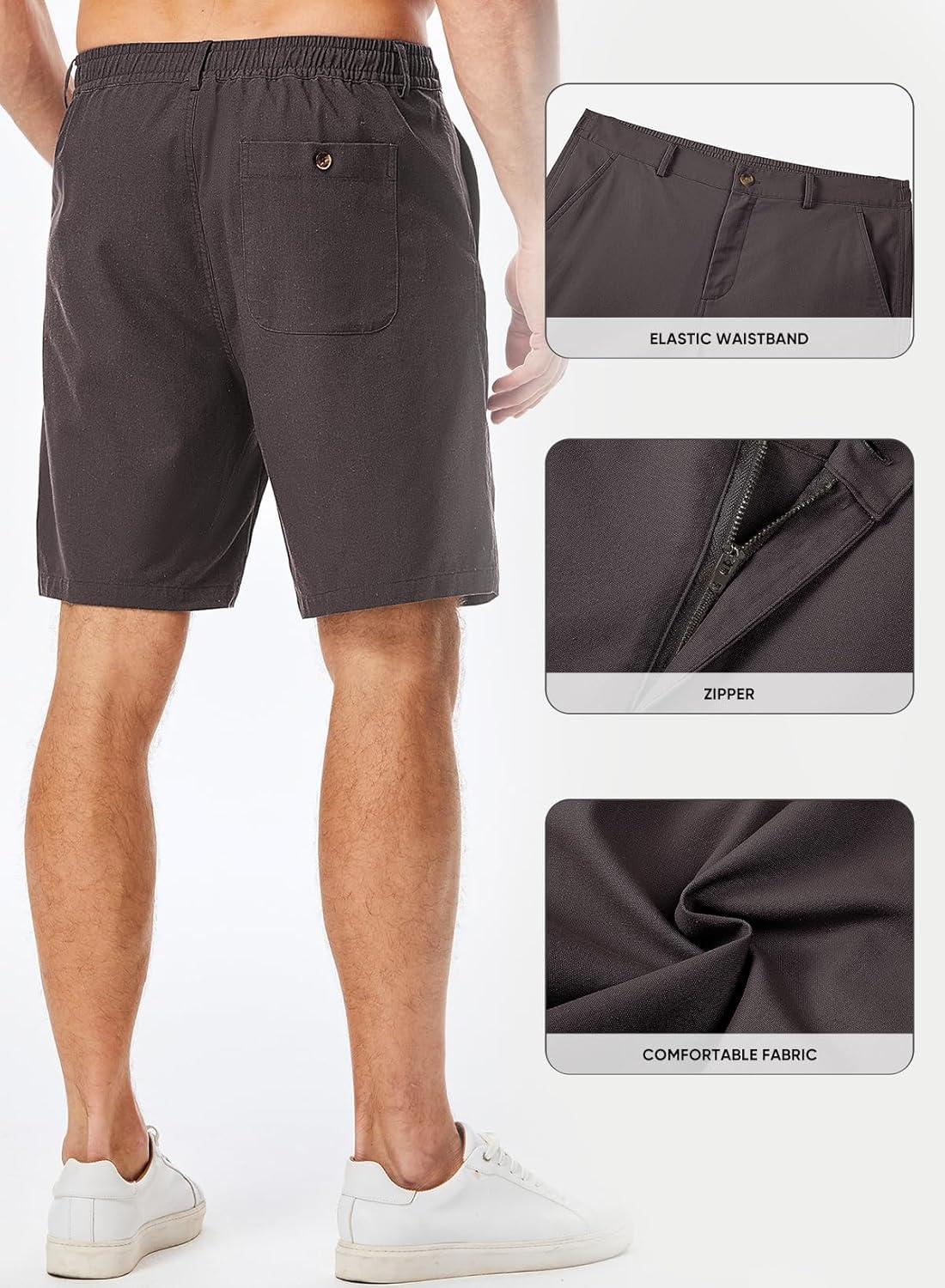JMIERR Mens Casual 8″ Cotton Linen Shorts – Button Waist Summer Beach Shorts with Pockets(Dark Grey)