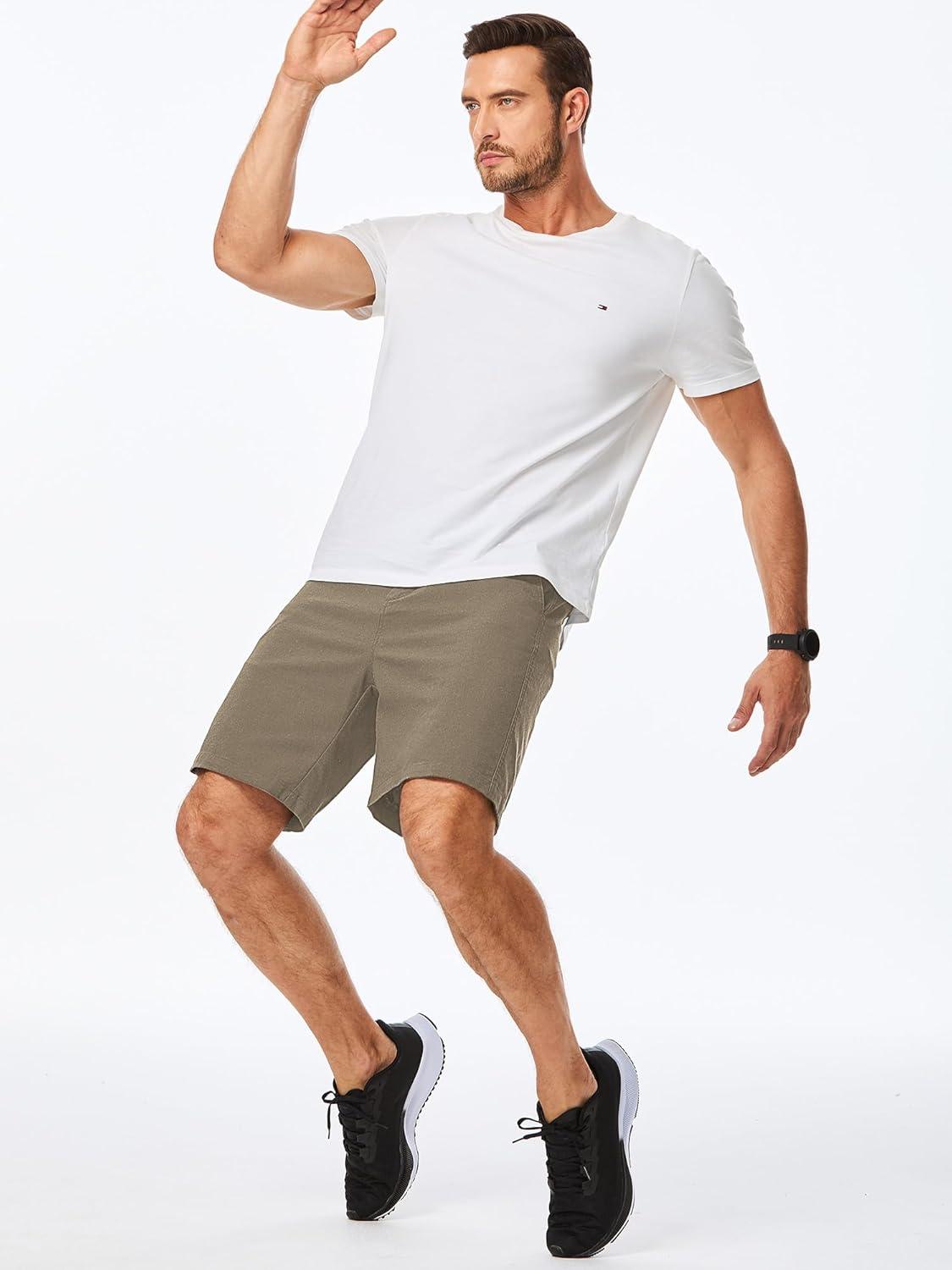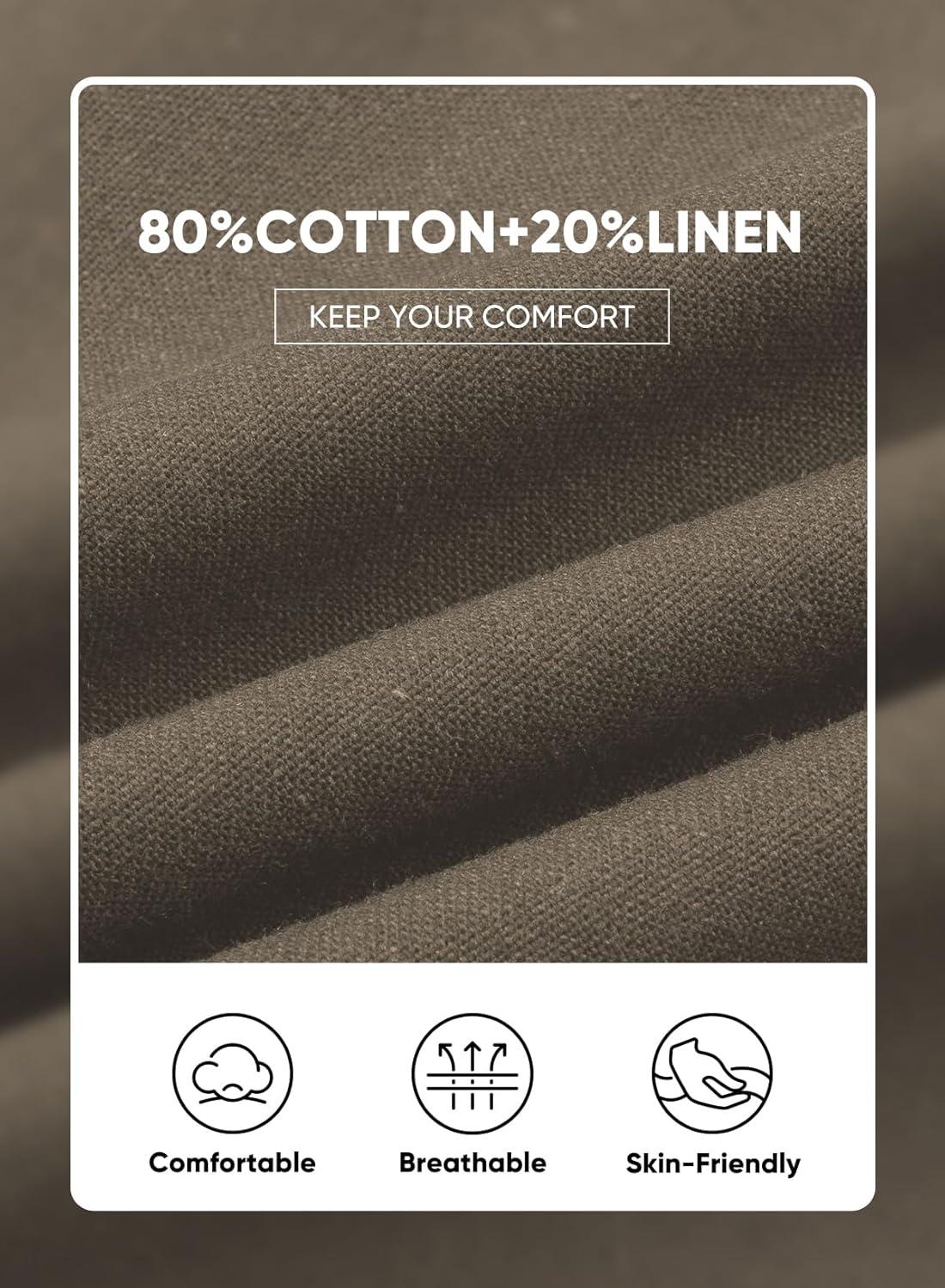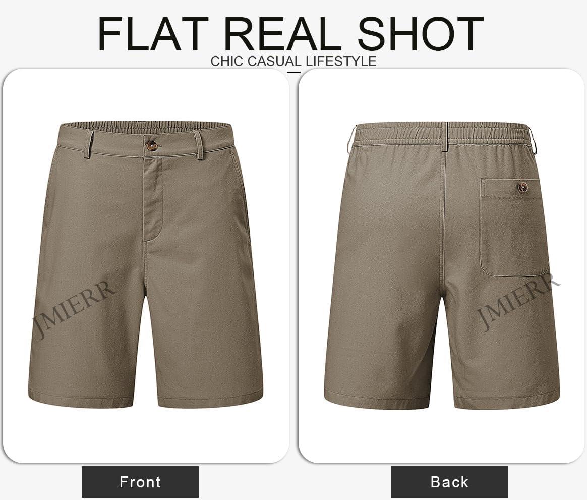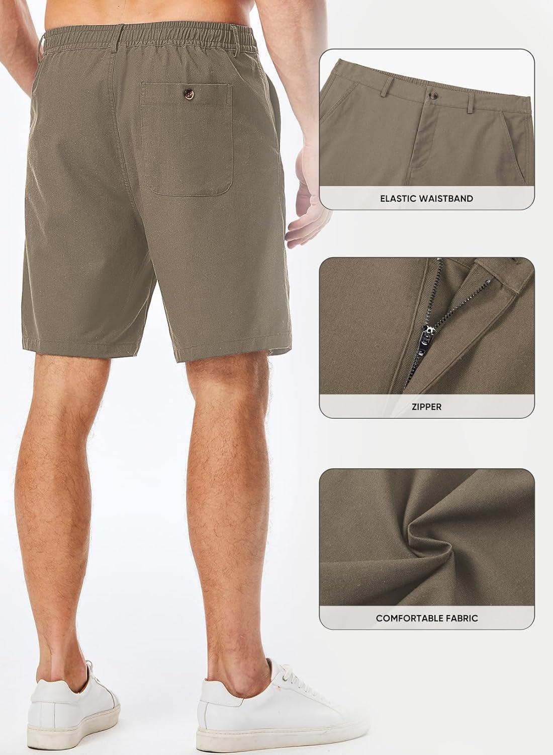 JMIERR Mens Casual 8″ Cotton Linen Shorts – Button Waist Summer Beach Shorts with Pockets(Light Green)