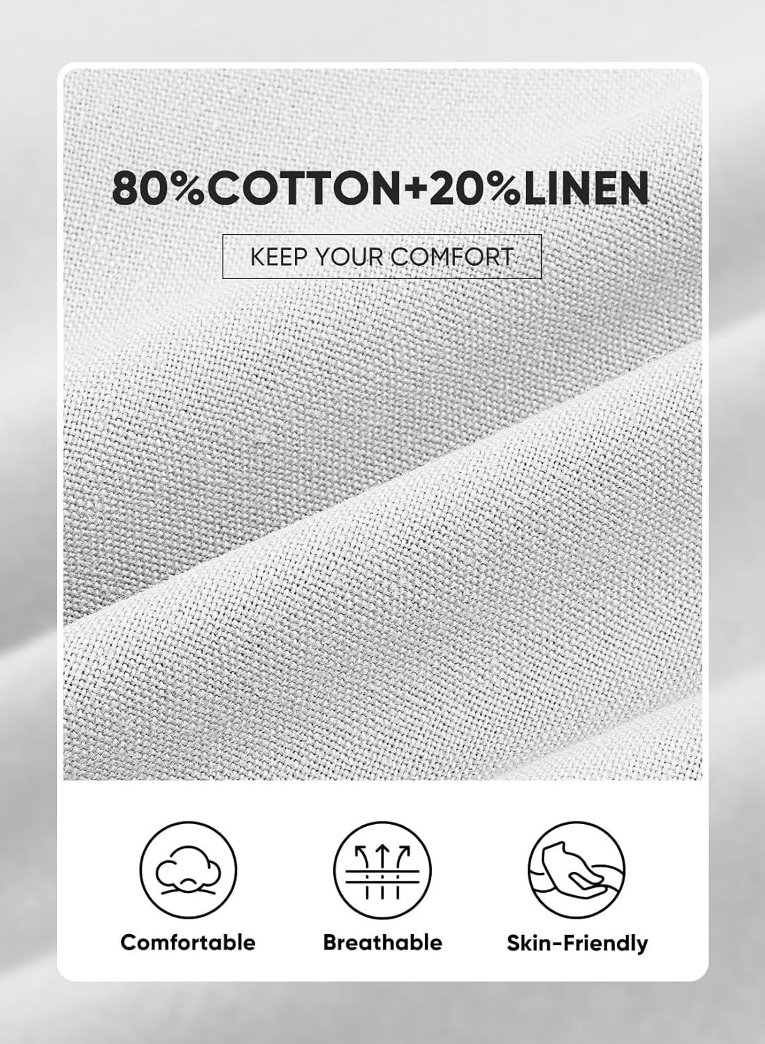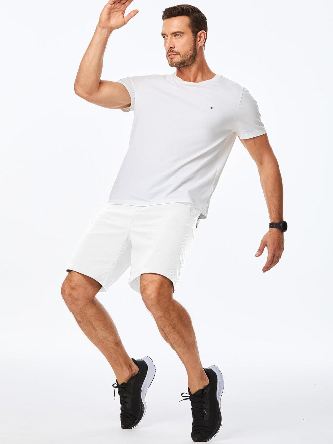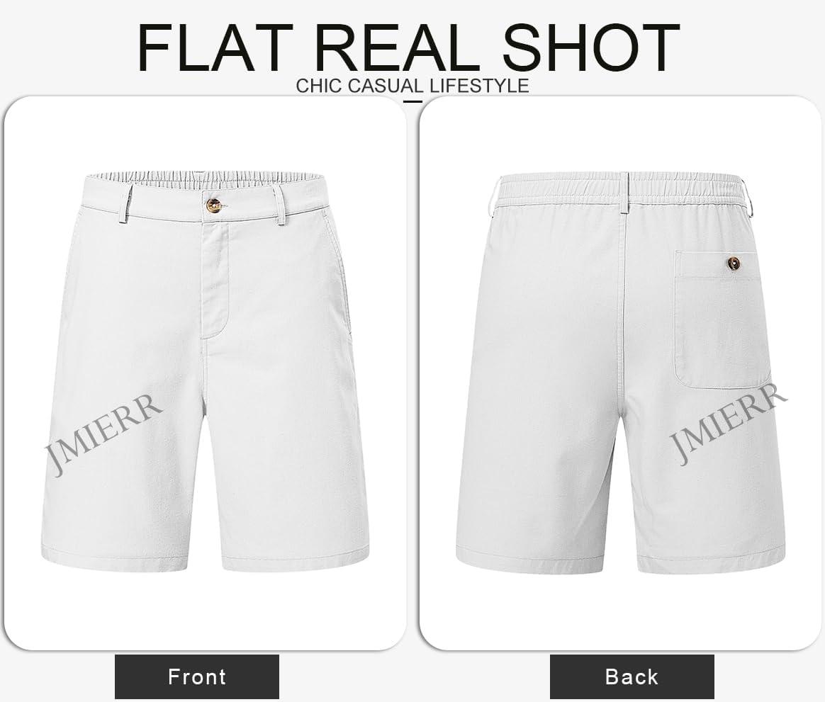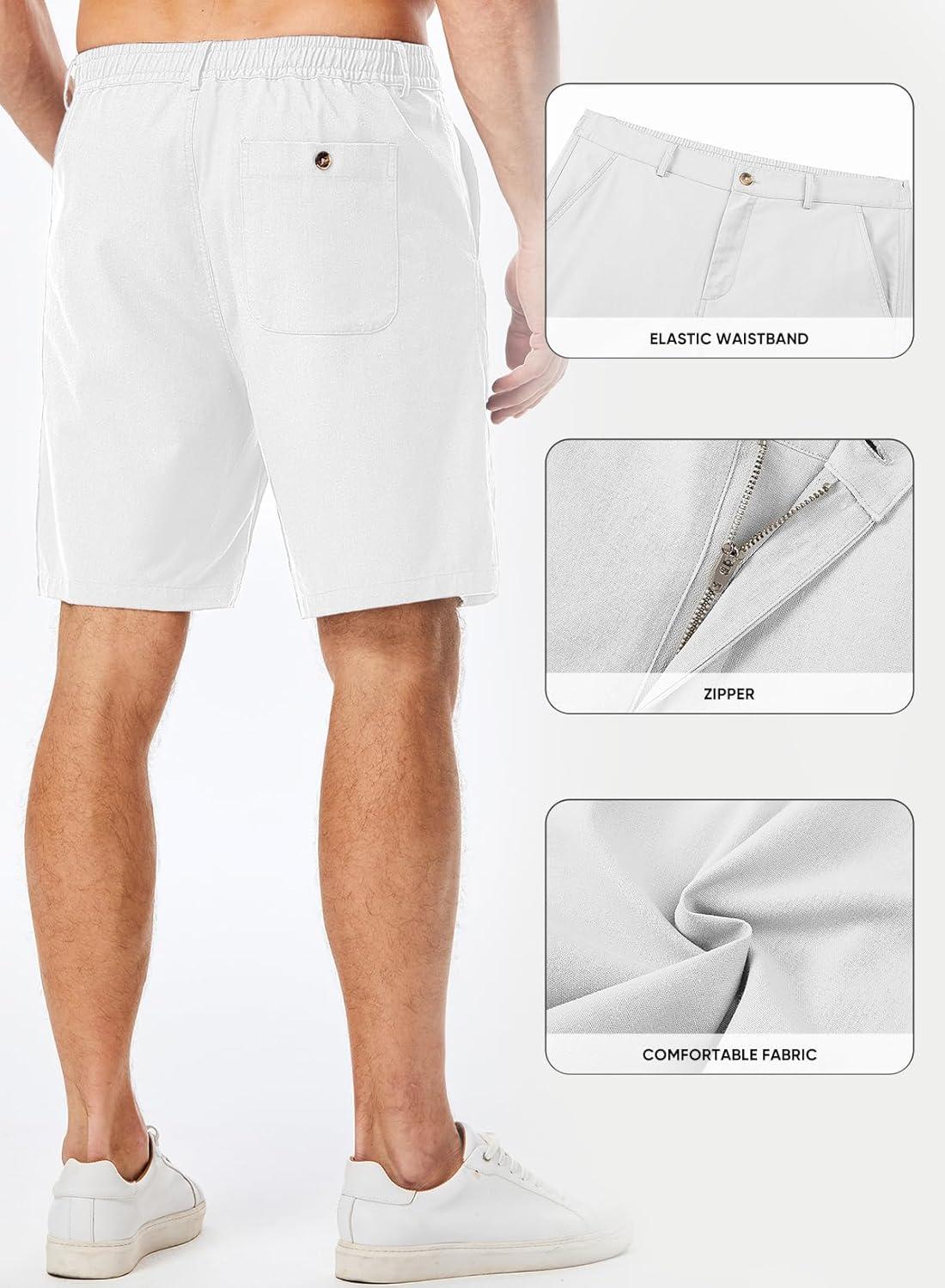 JMIERR Mens Casual 8″ Cotton Linen Shorts – Button Waist Summer Beach Shorts with Pockets(White)