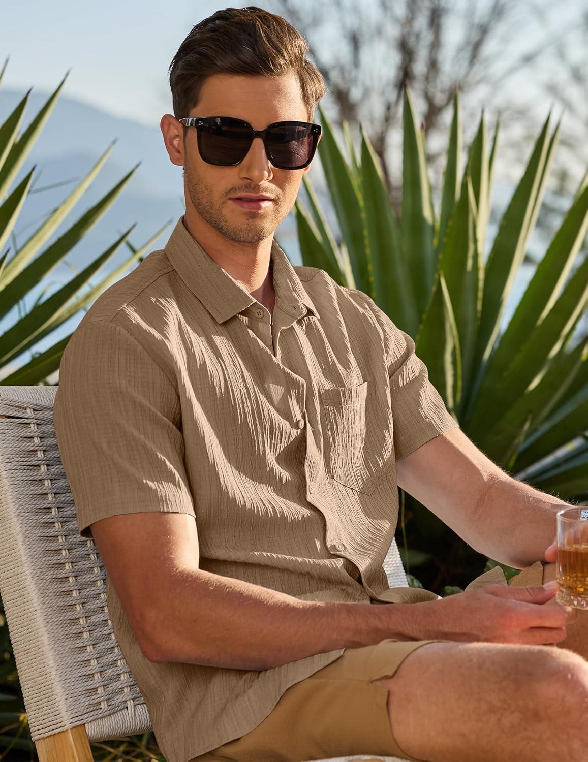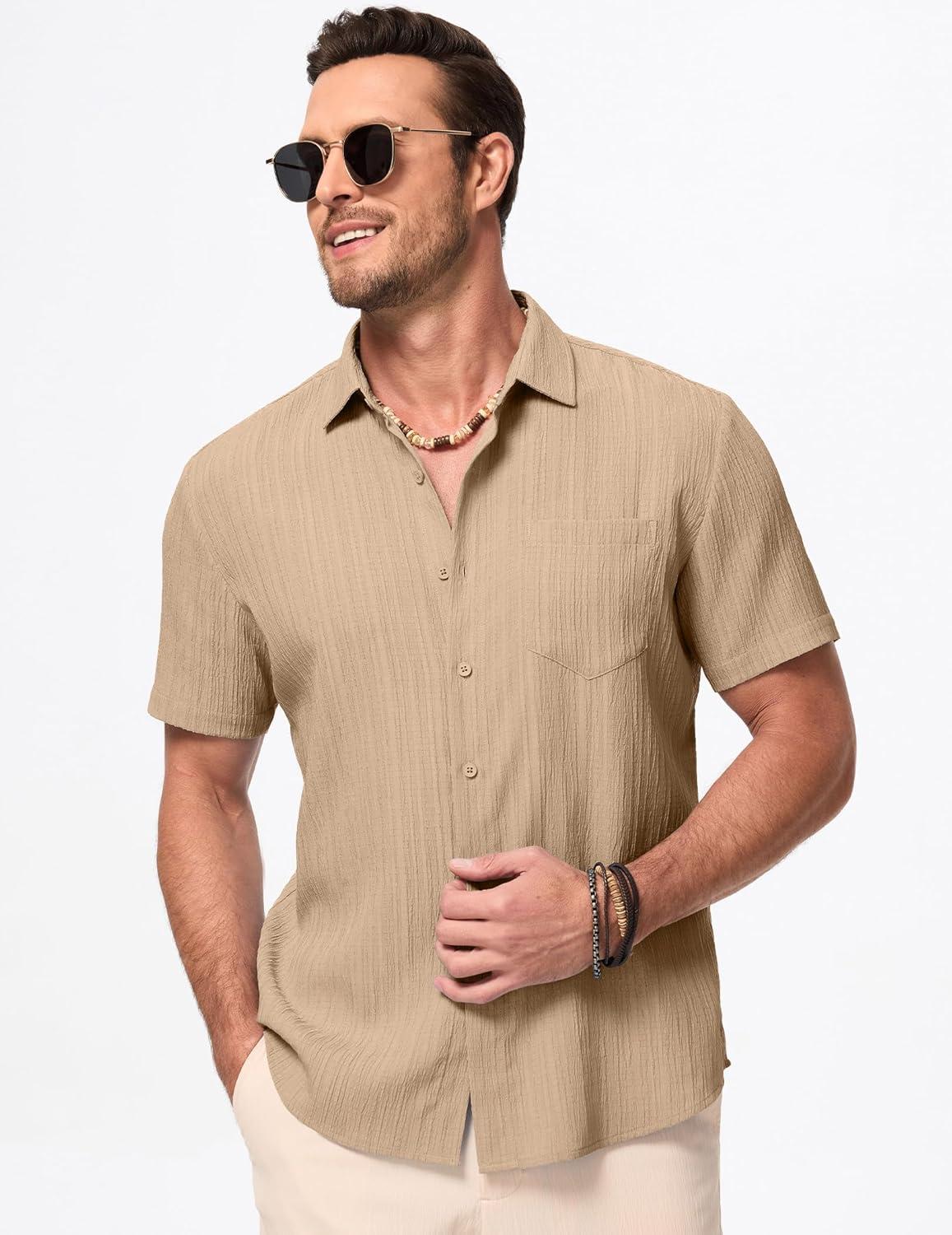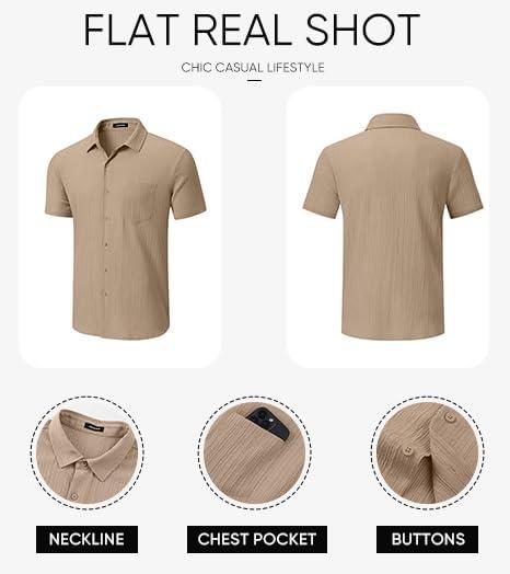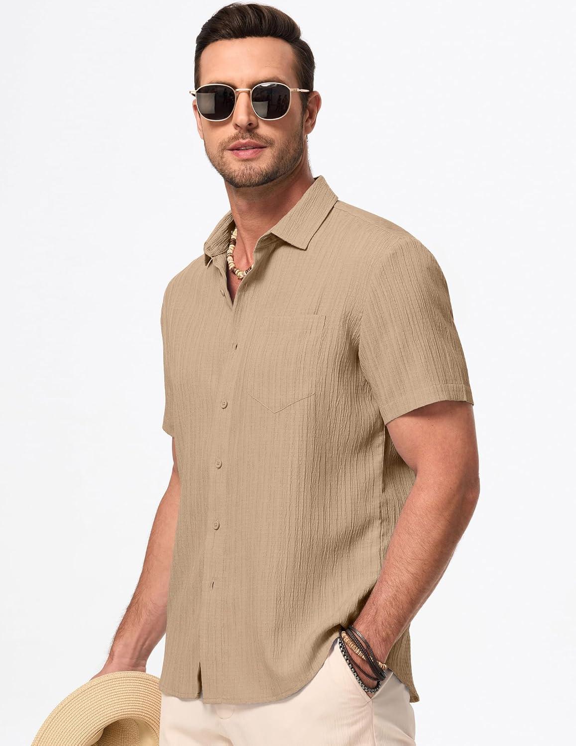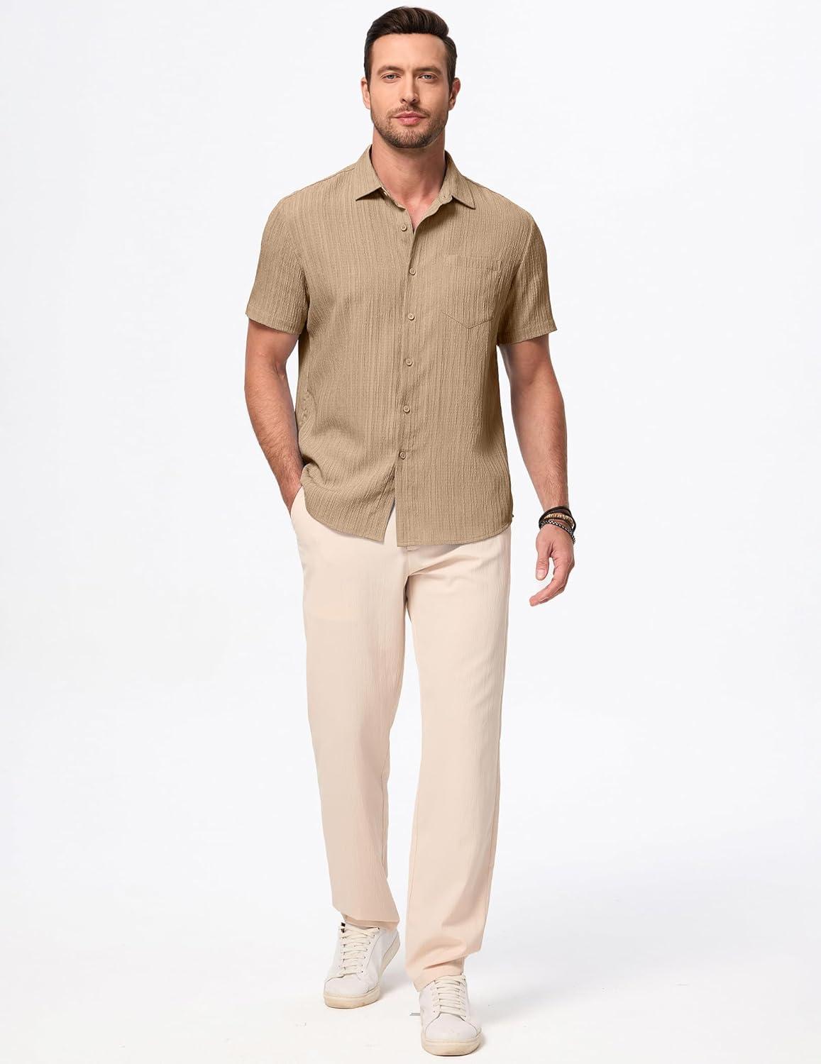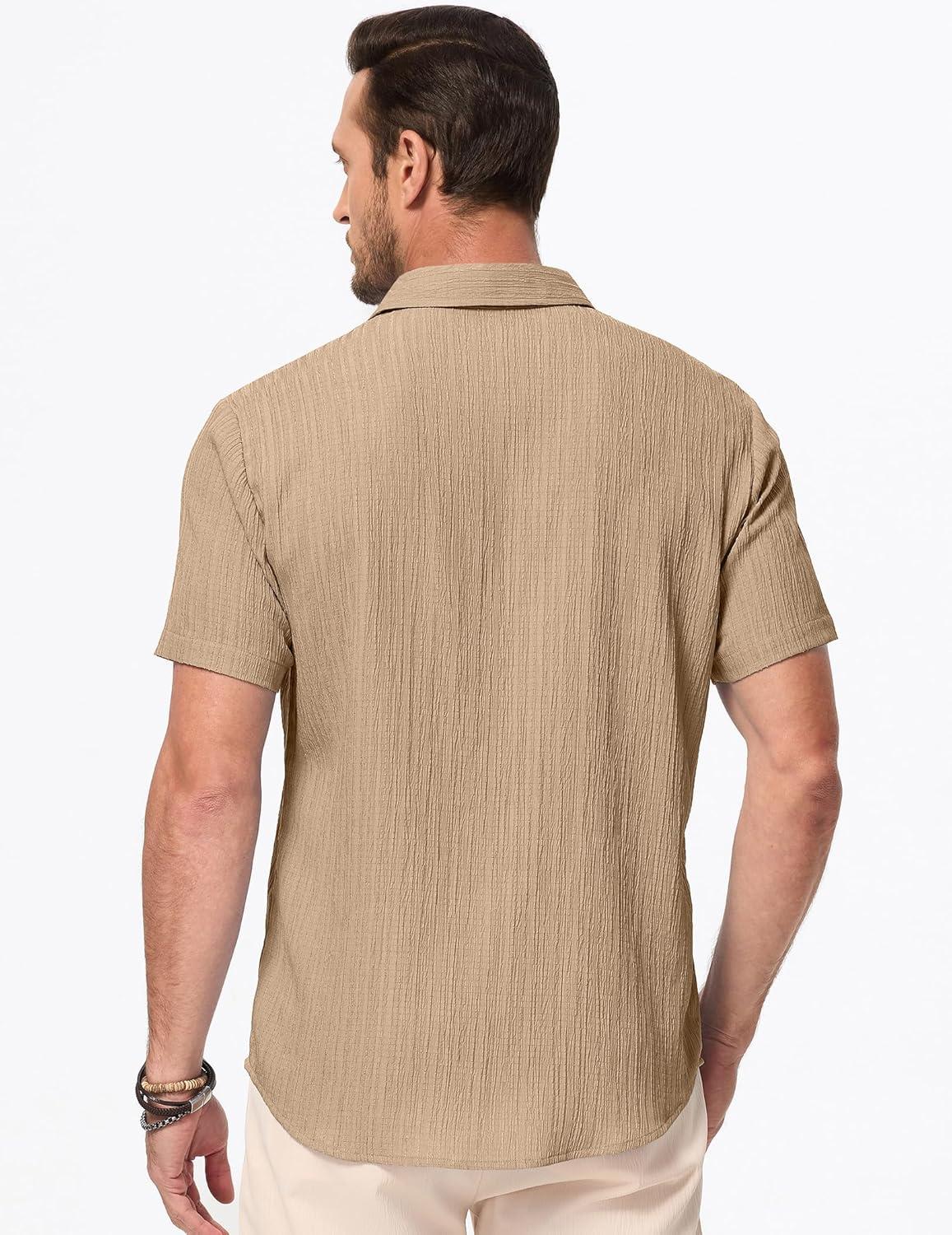 JMIERR Men’s Casual Button Down Shirt Short Sleeve Summer Beach Vacation Shirts Textured Shirts with Pocket(Khaki)
