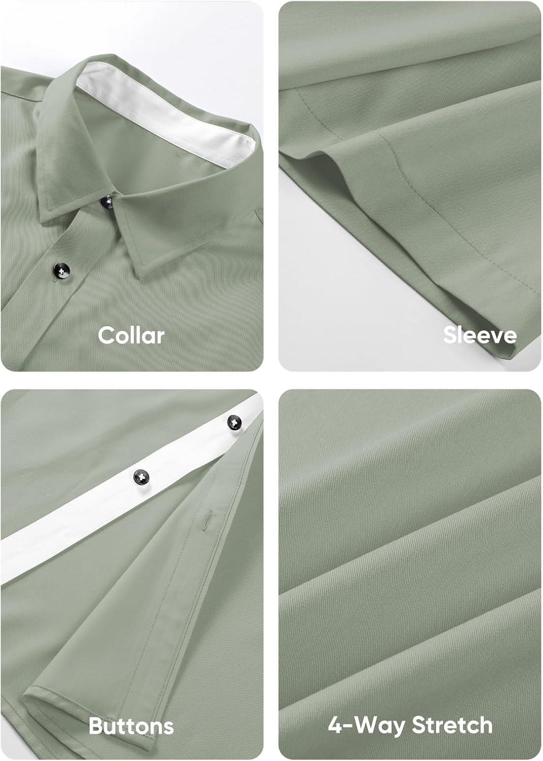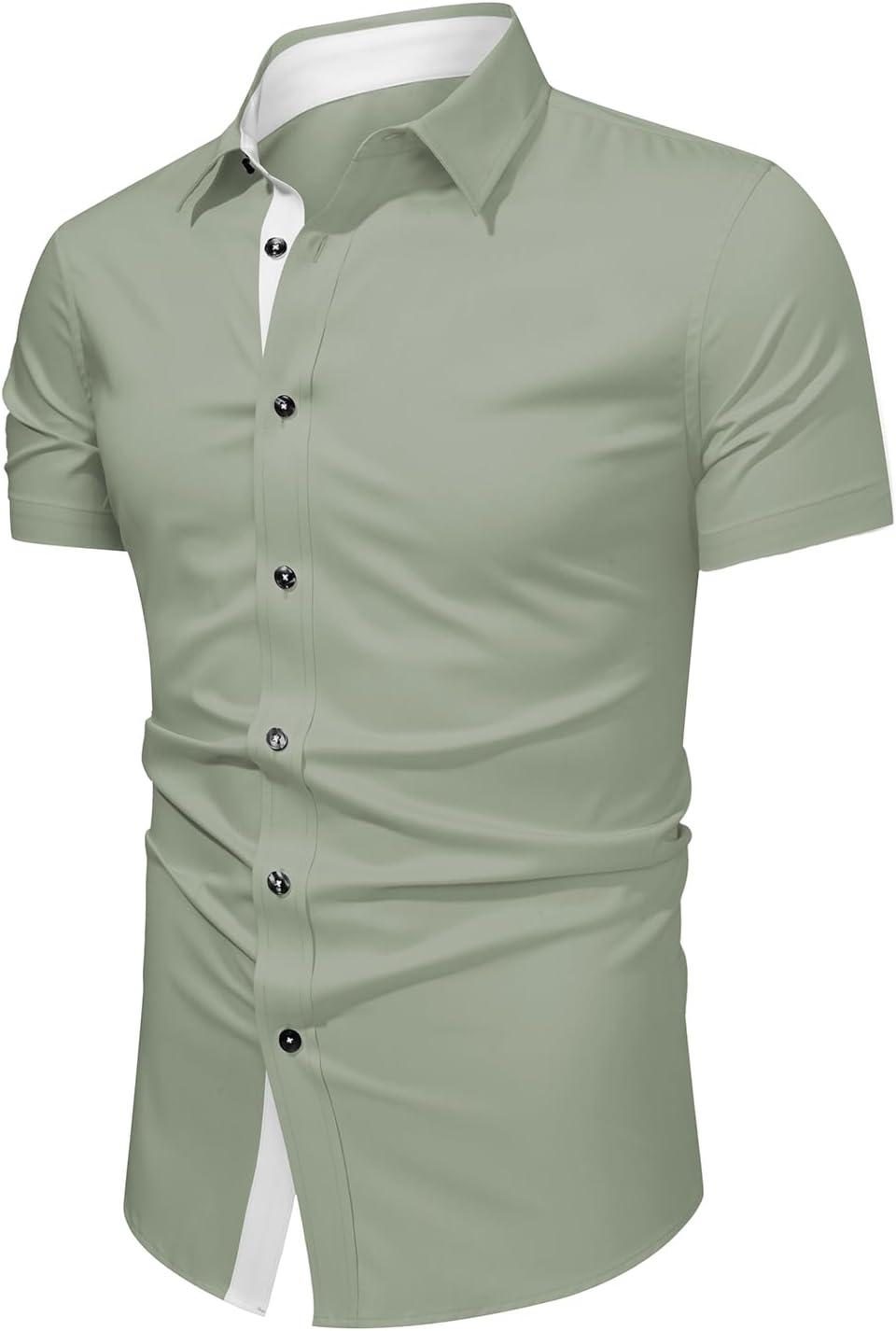 JMIERR Men’s Casual Button Down Shirts Wrinkle-Free Short Sleeve Business Dress Shirt(2 Green)