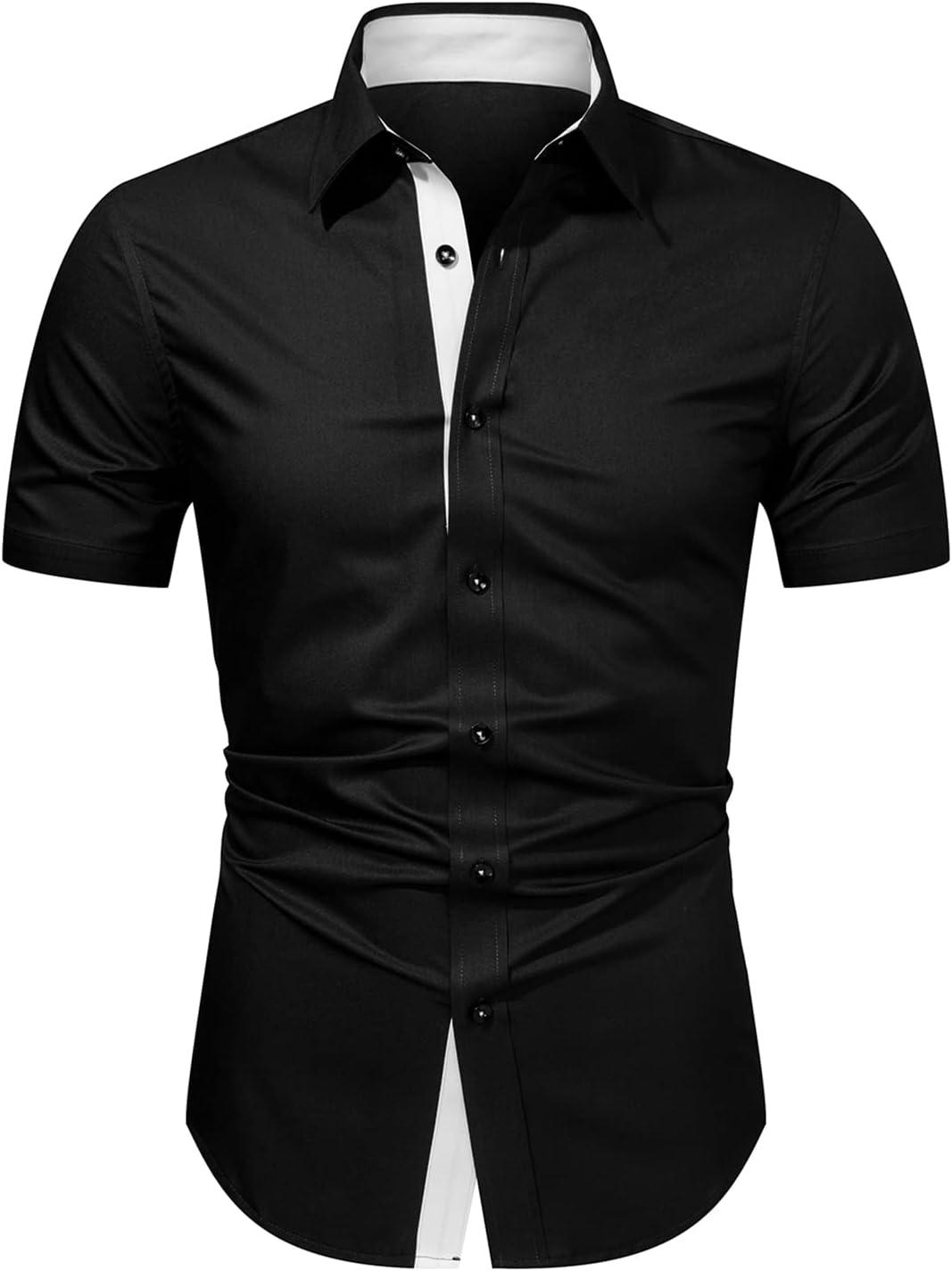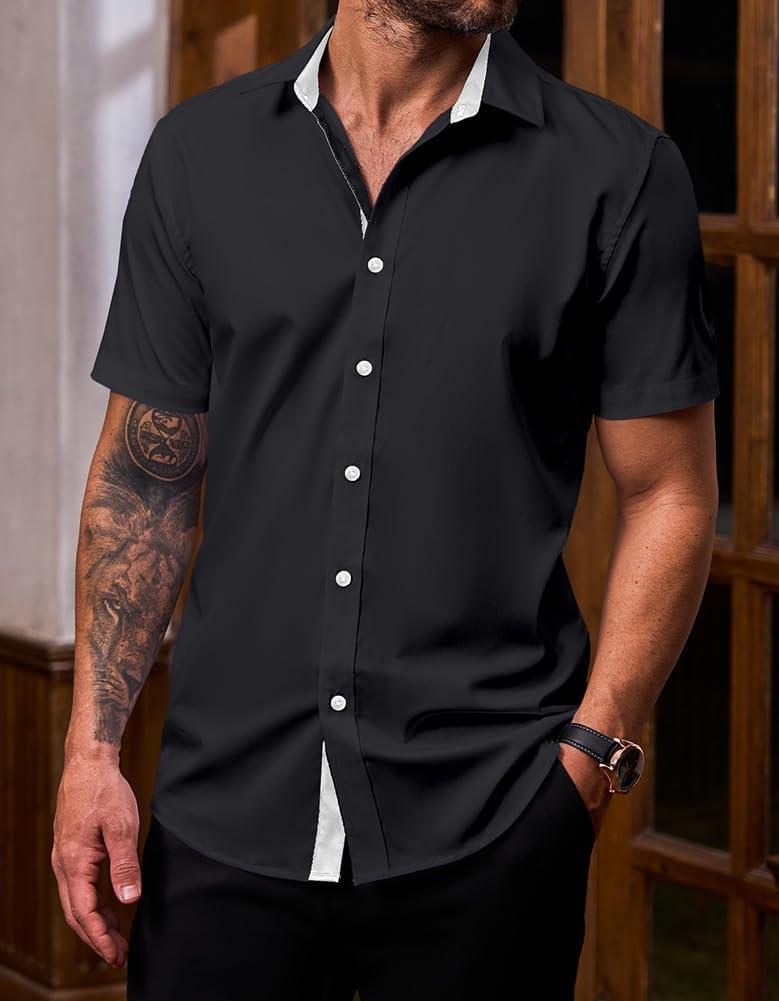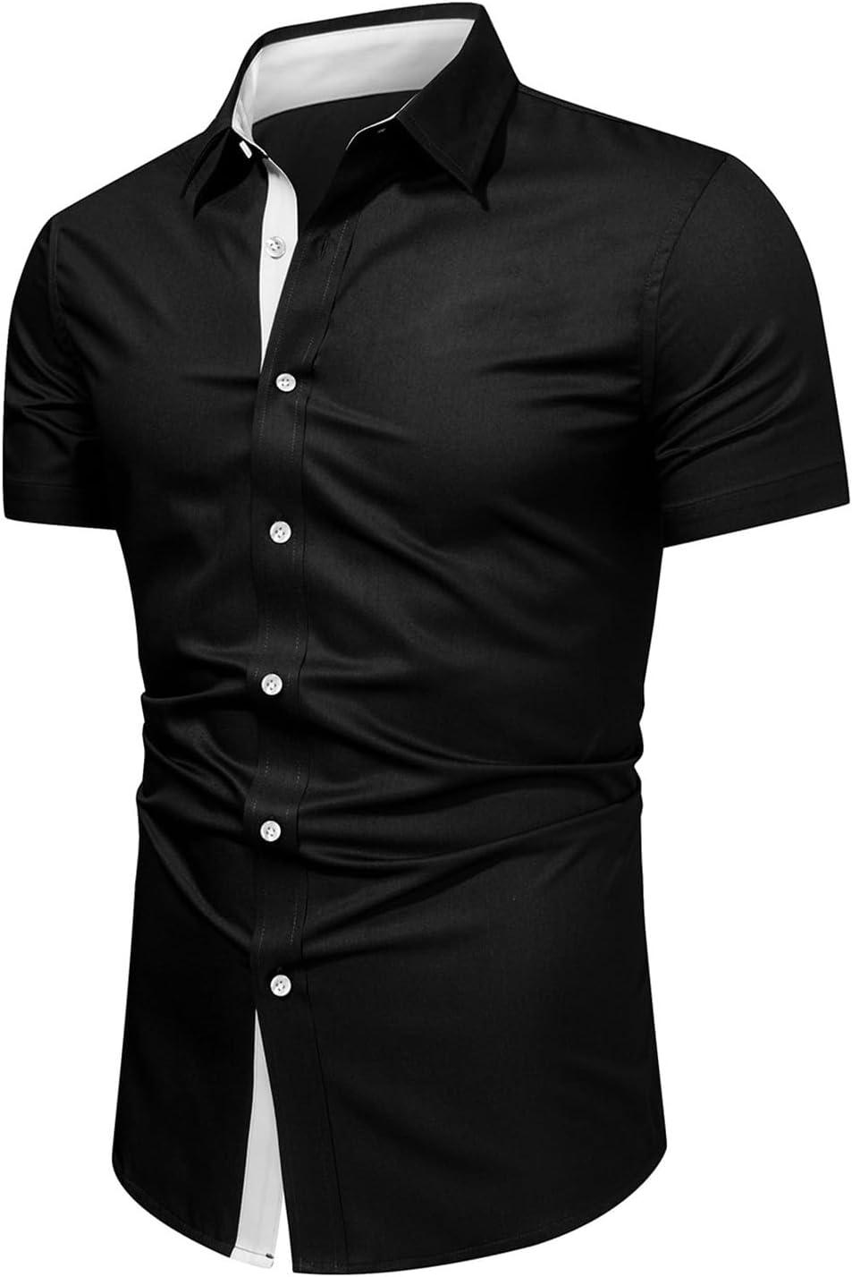 JMIERR Men’s Casual Button Down Shirts Wrinkle-Free Short Sleeve Business Dress Shirt(A Black)