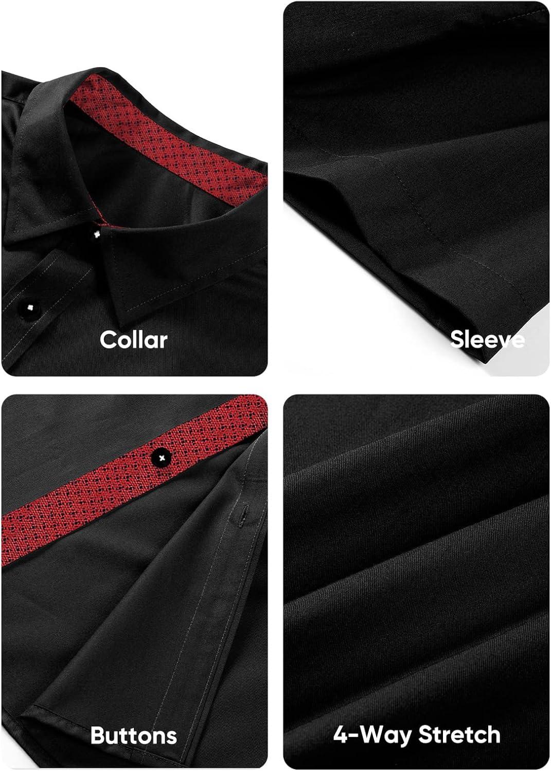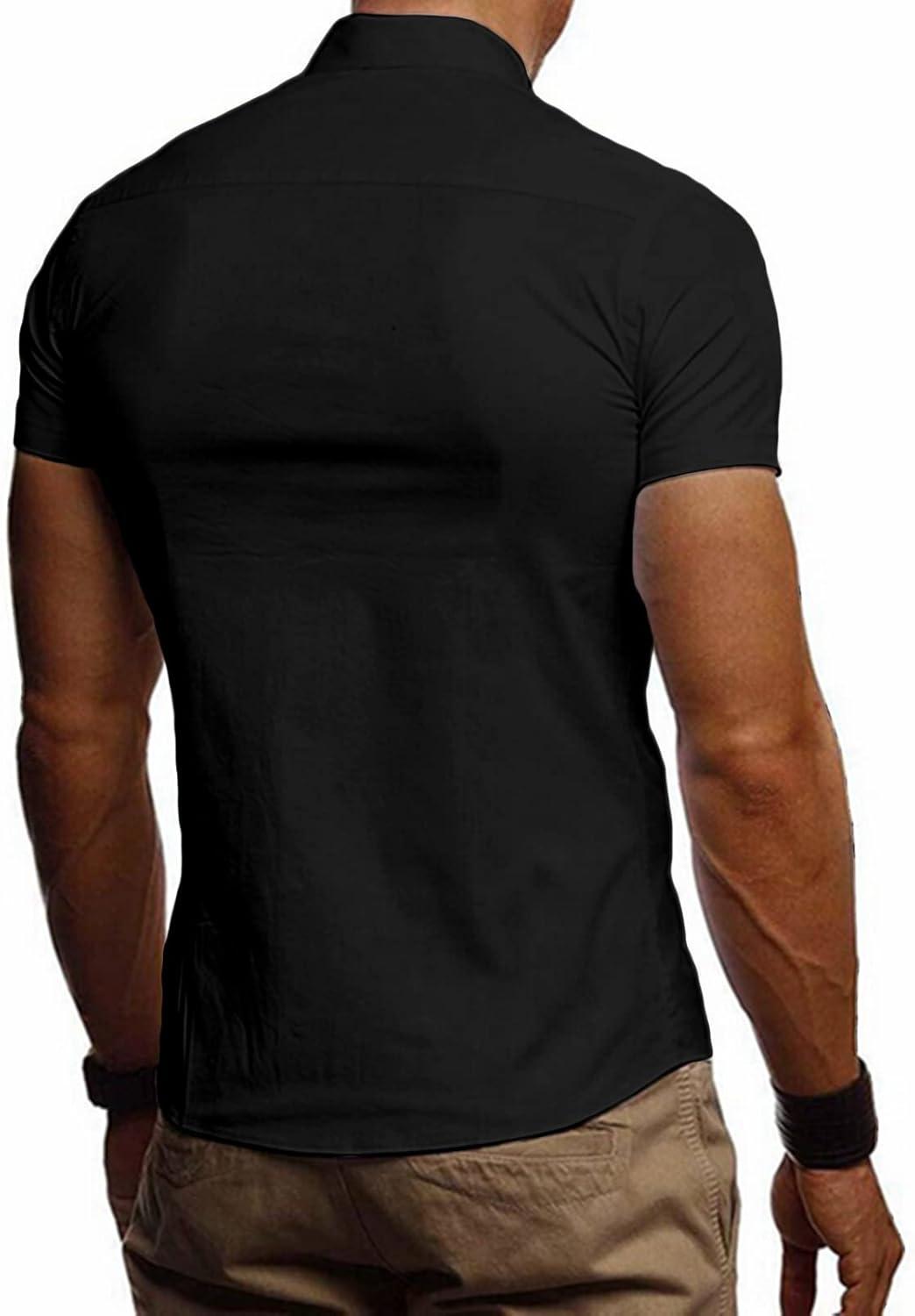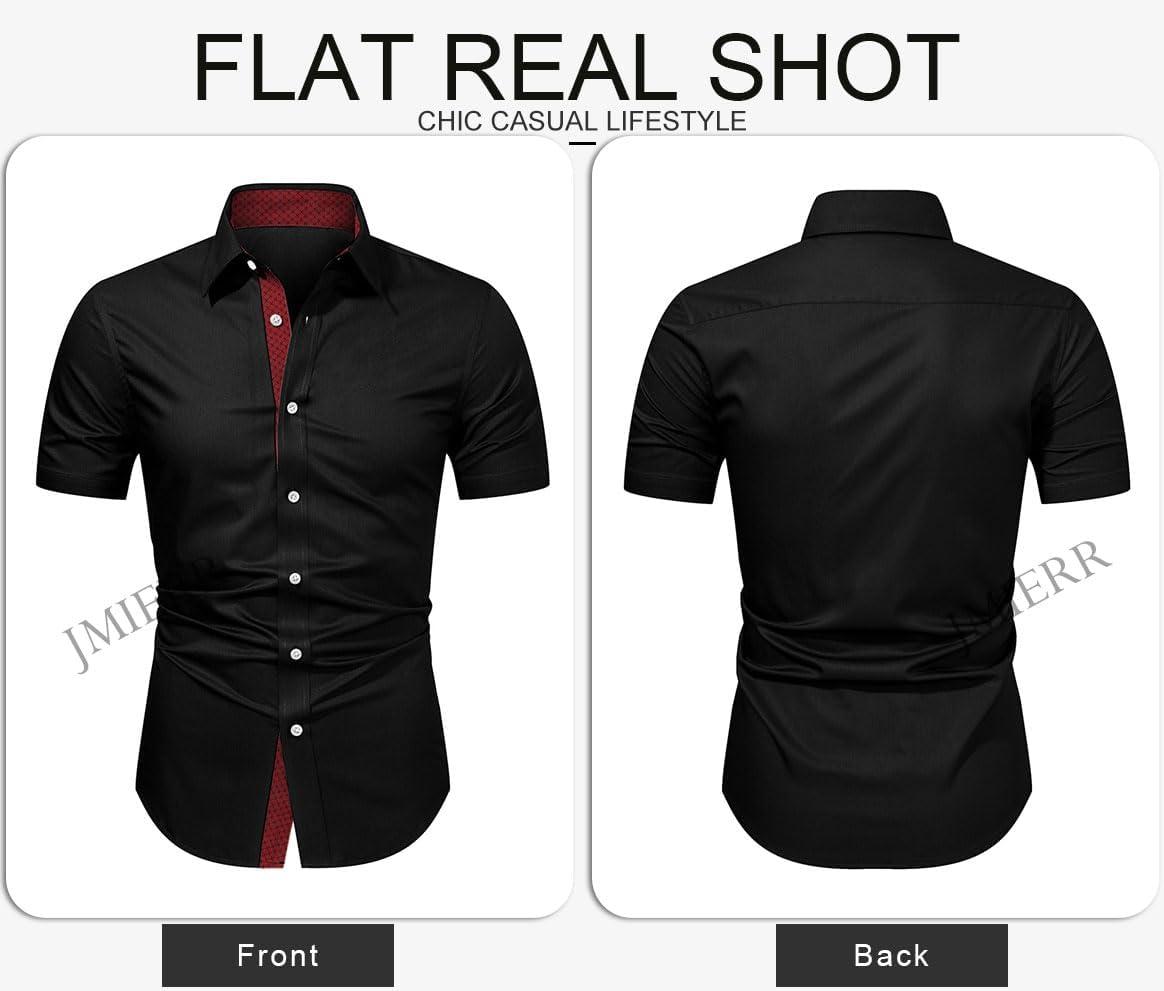 JMIERR Men’s Casual Button Down Shirts Wrinkle-Free Short Sleeve Business Dress Shirt(A Black2)