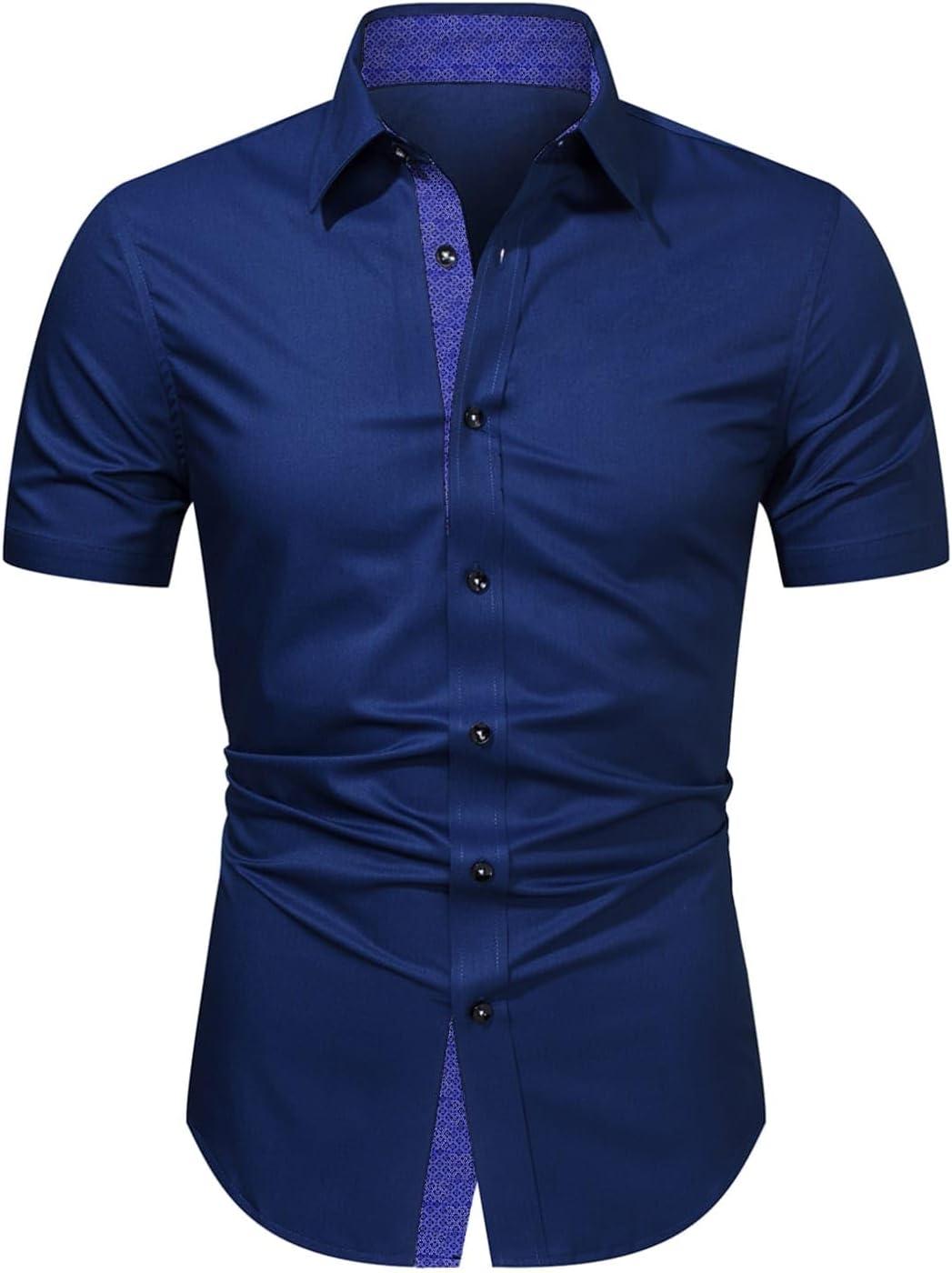JMIERR Men’s Casual Button Down Shirts Wrinkle-Free Short Sleeve Business Dress Shirt(A Blue3)