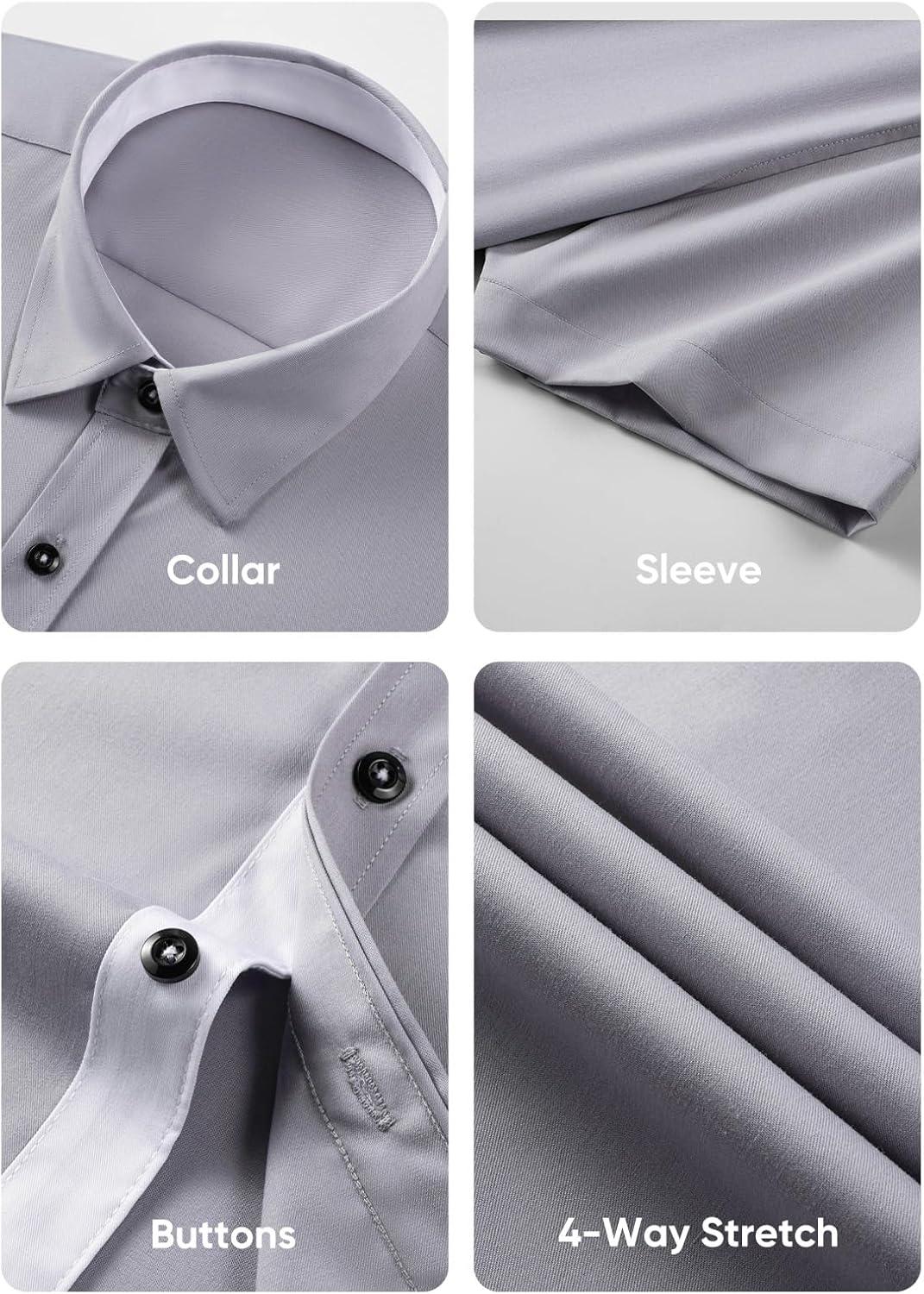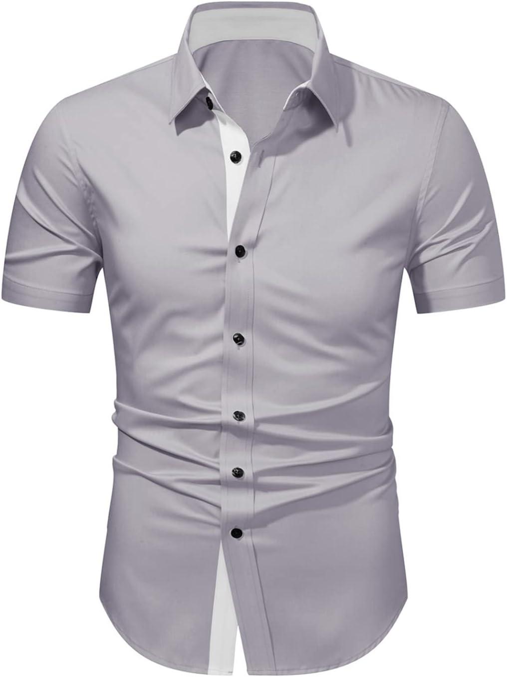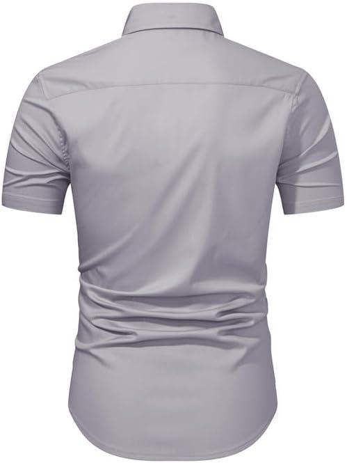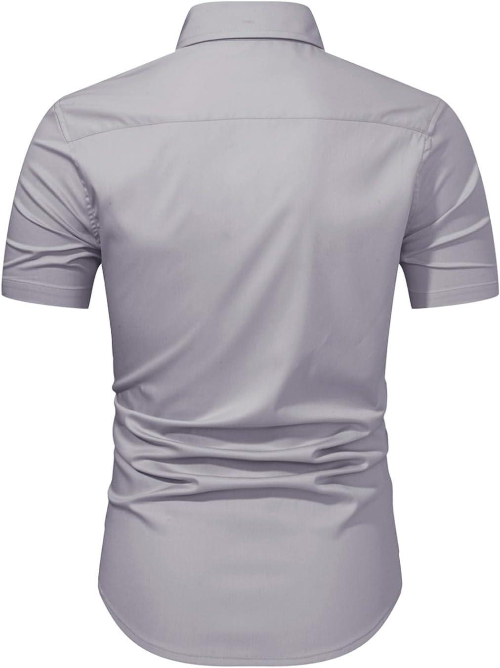 JMIERR Men’s Casual Button Down Shirts Wrinkle-Free Short Sleeve Business Dress Shirt(B Grey)