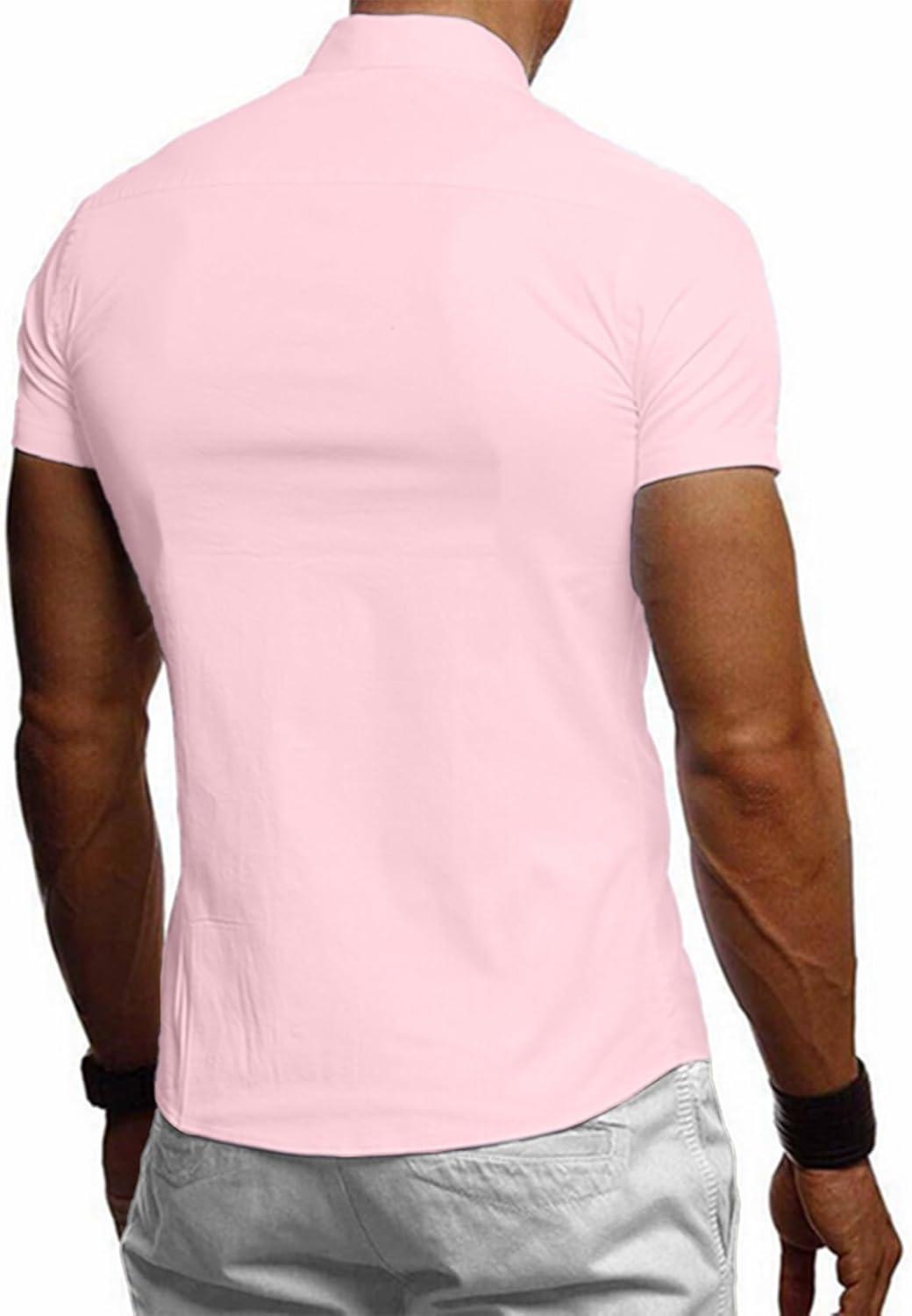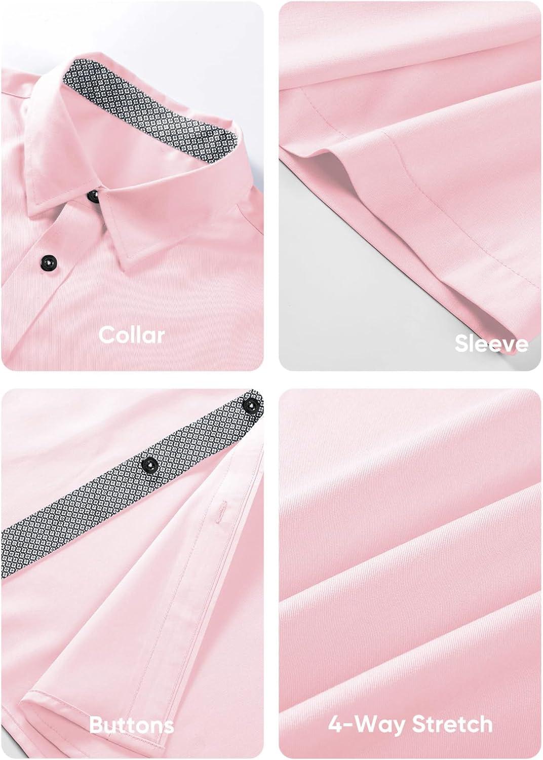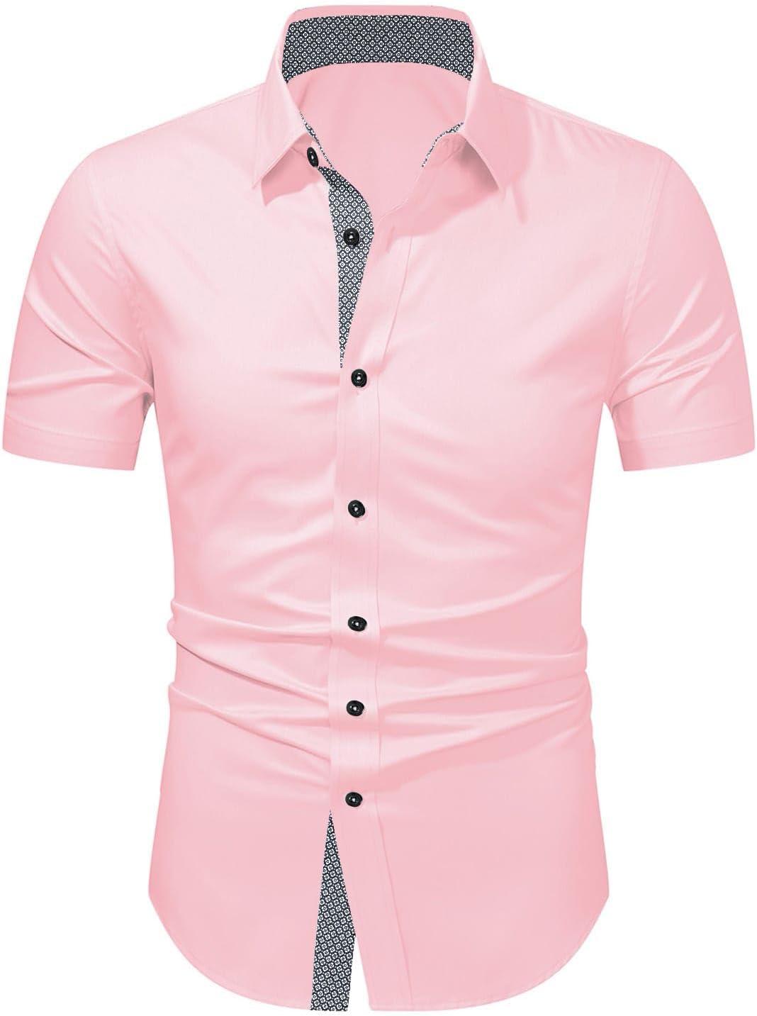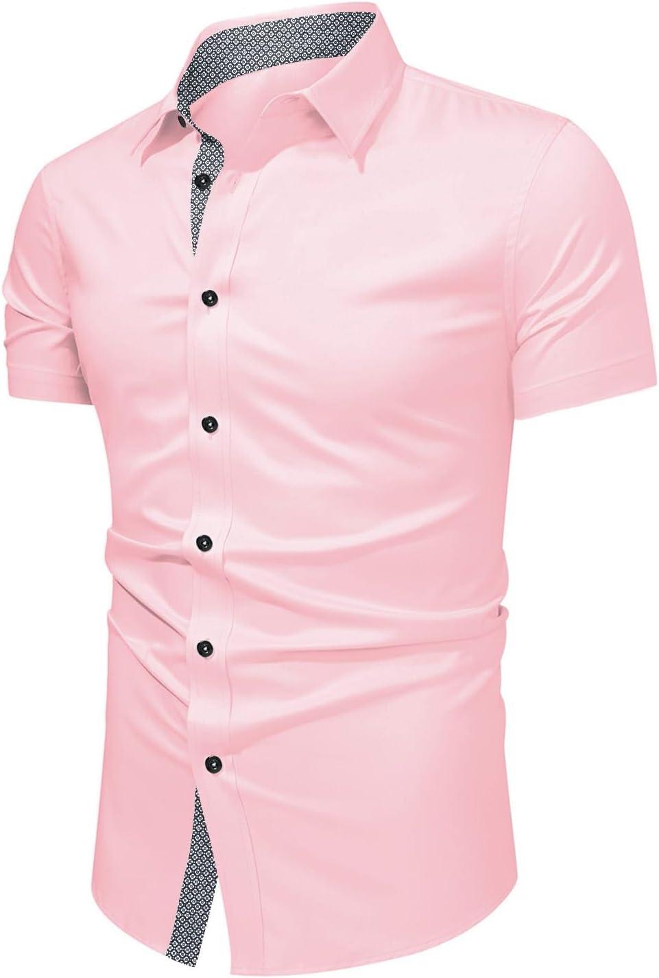 JMIERR Men’s Casual Button Down Shirts Wrinkle-Free Short Sleeve Business Dress Shirt(B Pink2)