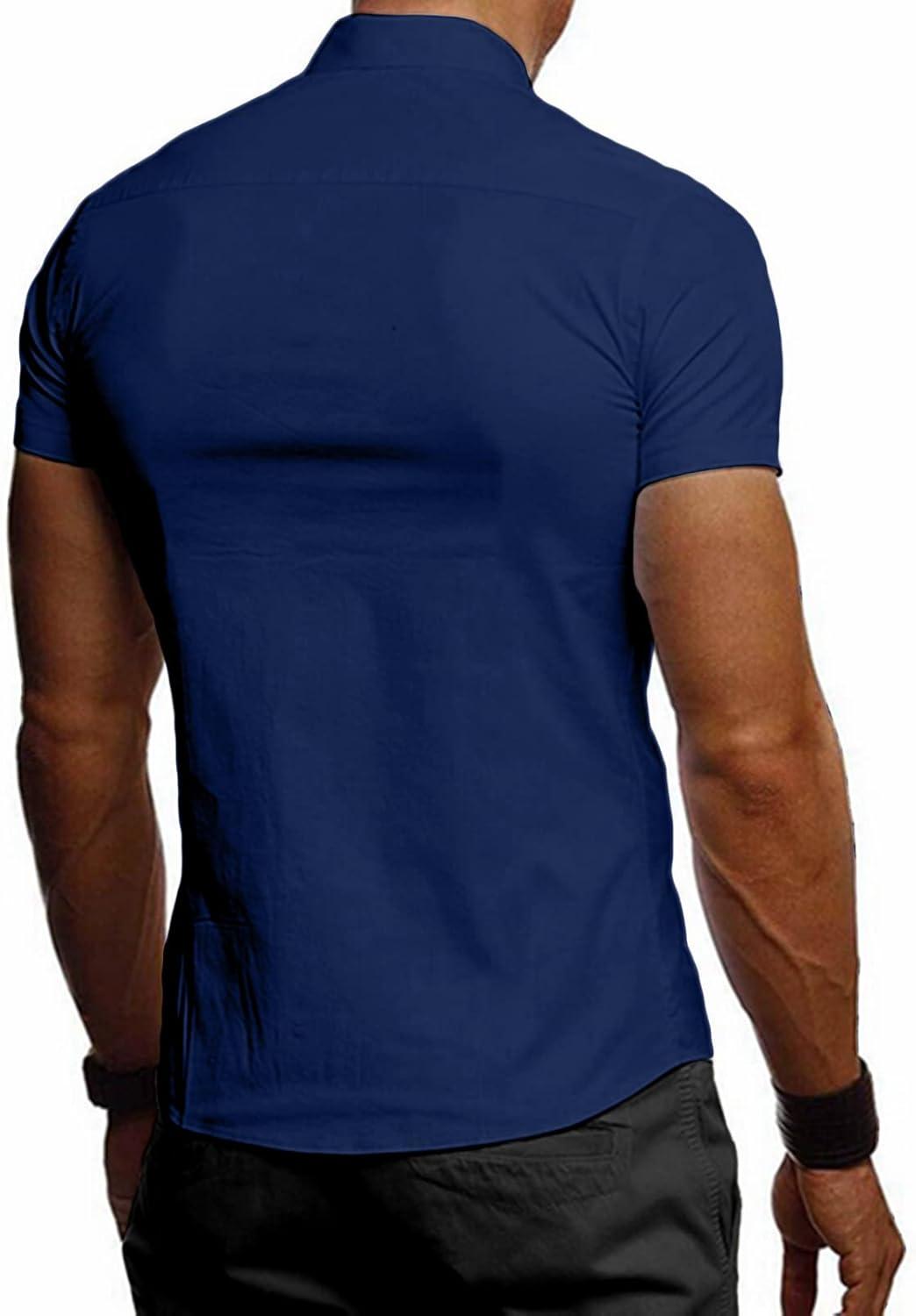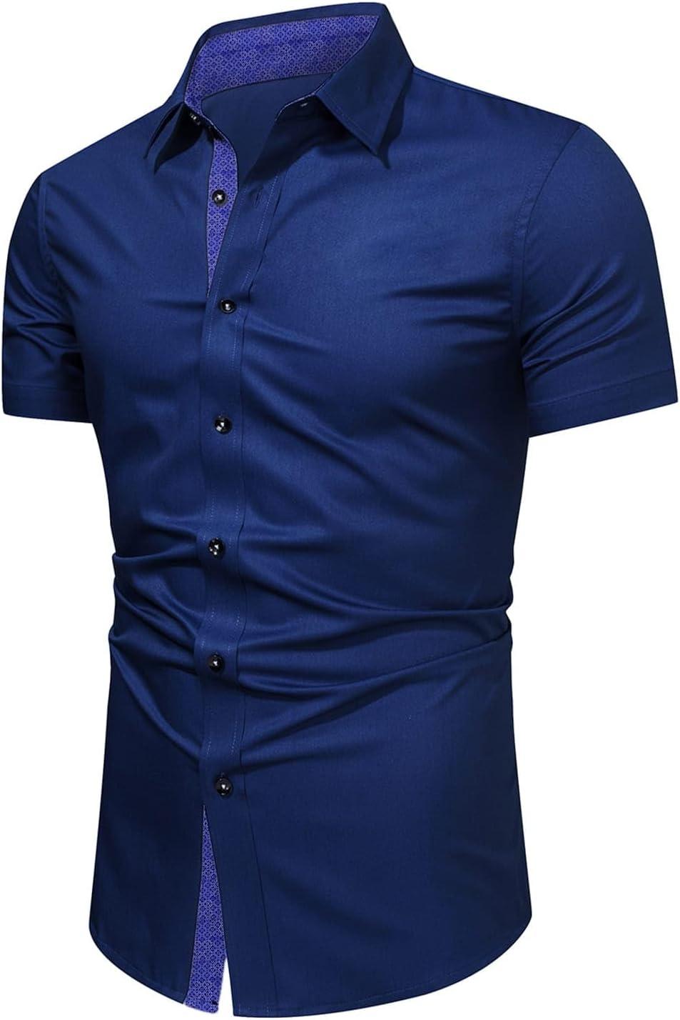 JMIERR Men’s Casual Button Down Shirts Wrinkle-Free Short Sleeve Business Dress Shirt(Blue 3)
