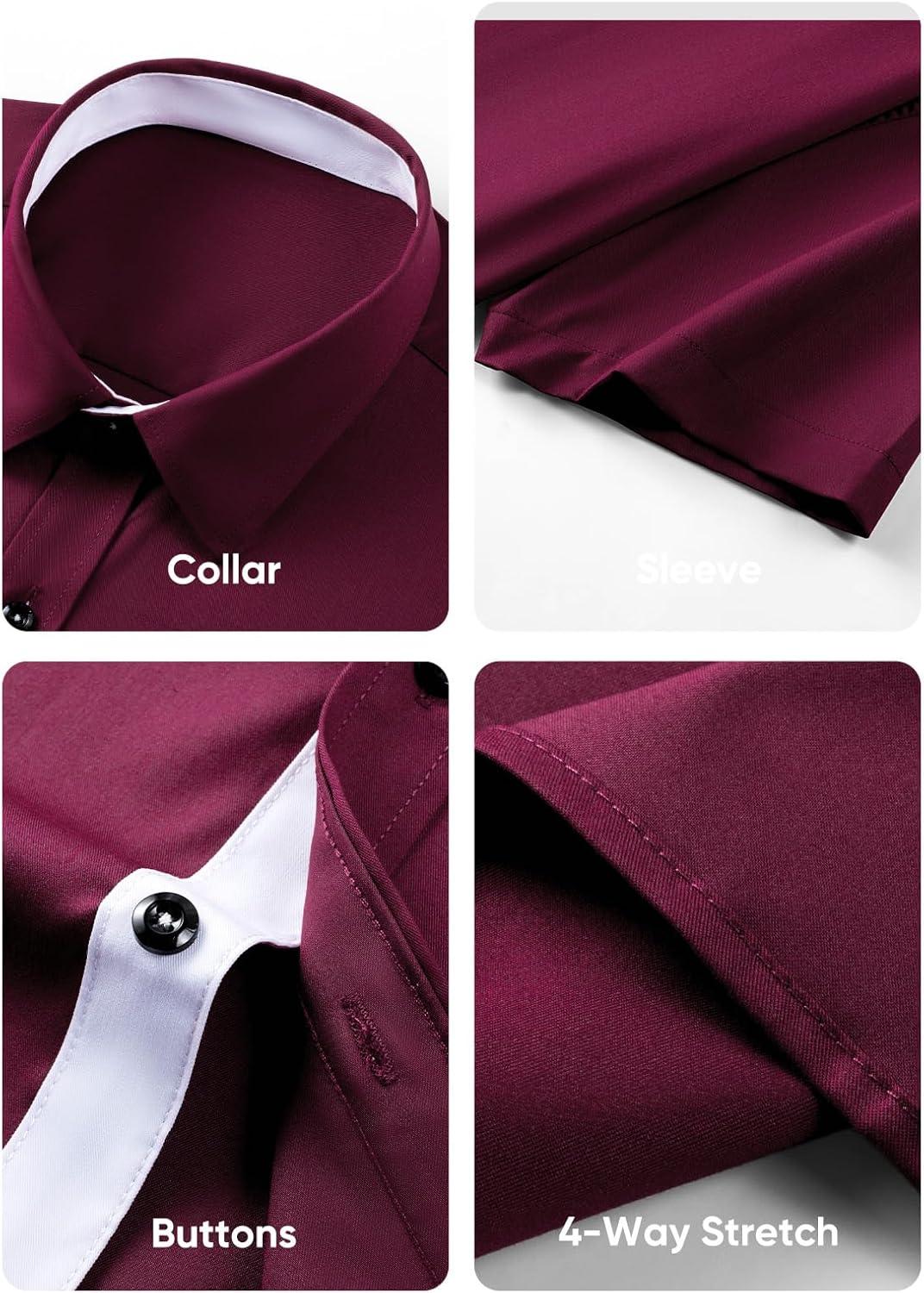 JMIERR Men’s Casual Button Down Shirts Wrinkle-Free Short Sleeve Business Dress Shirt(D Burgundy)