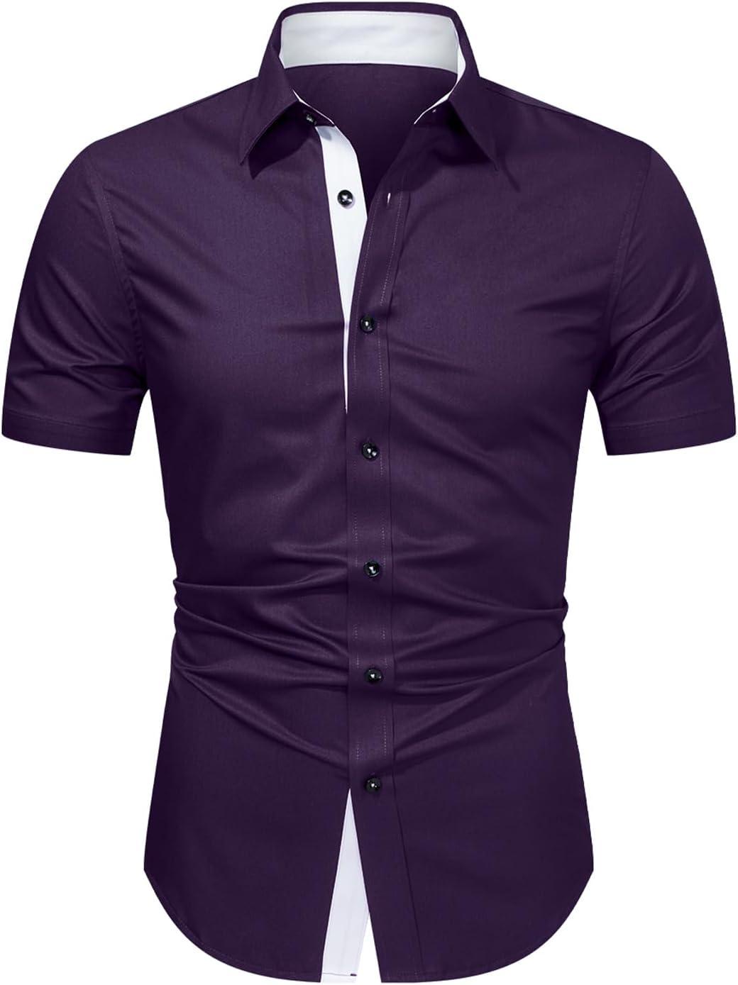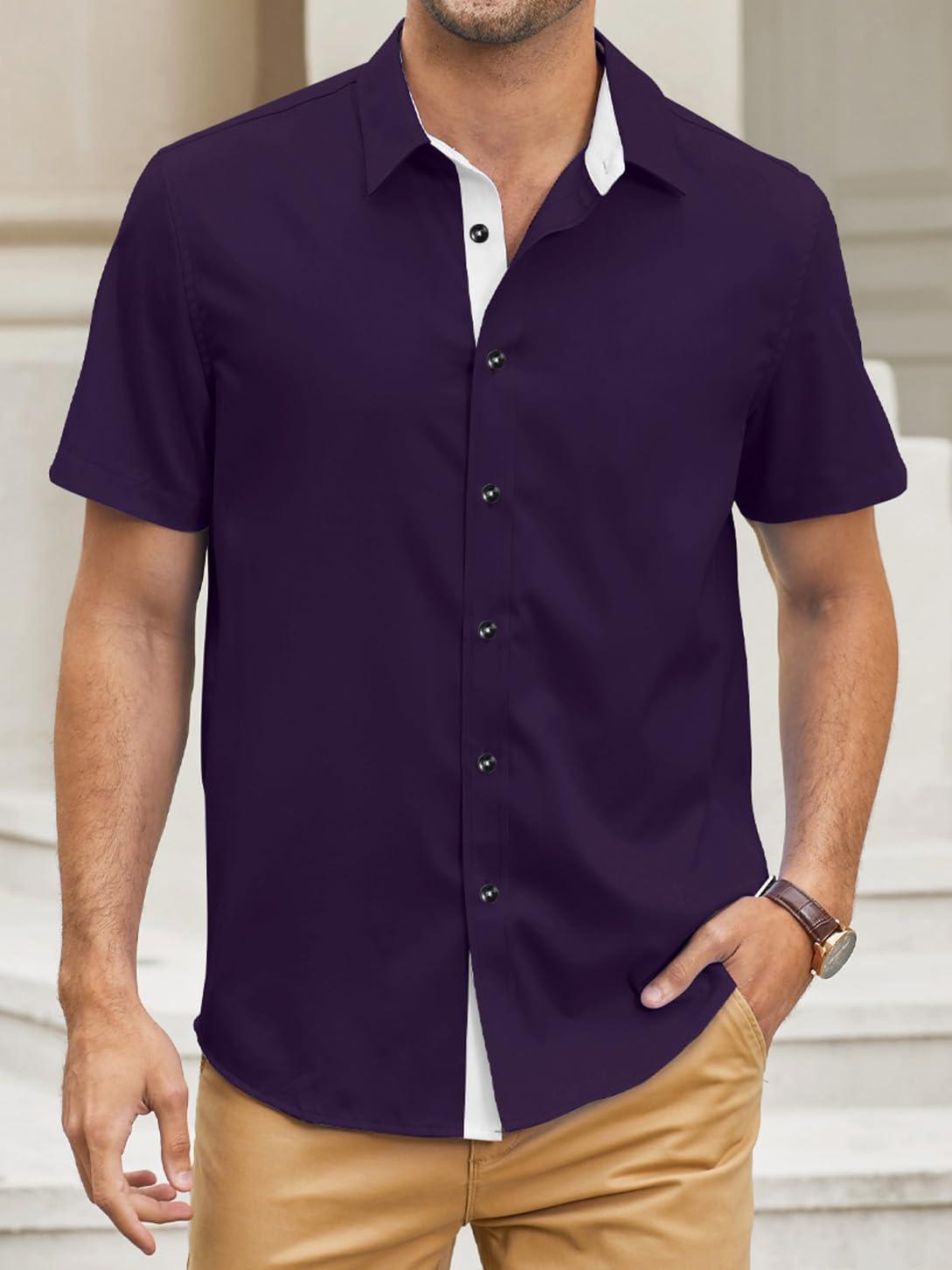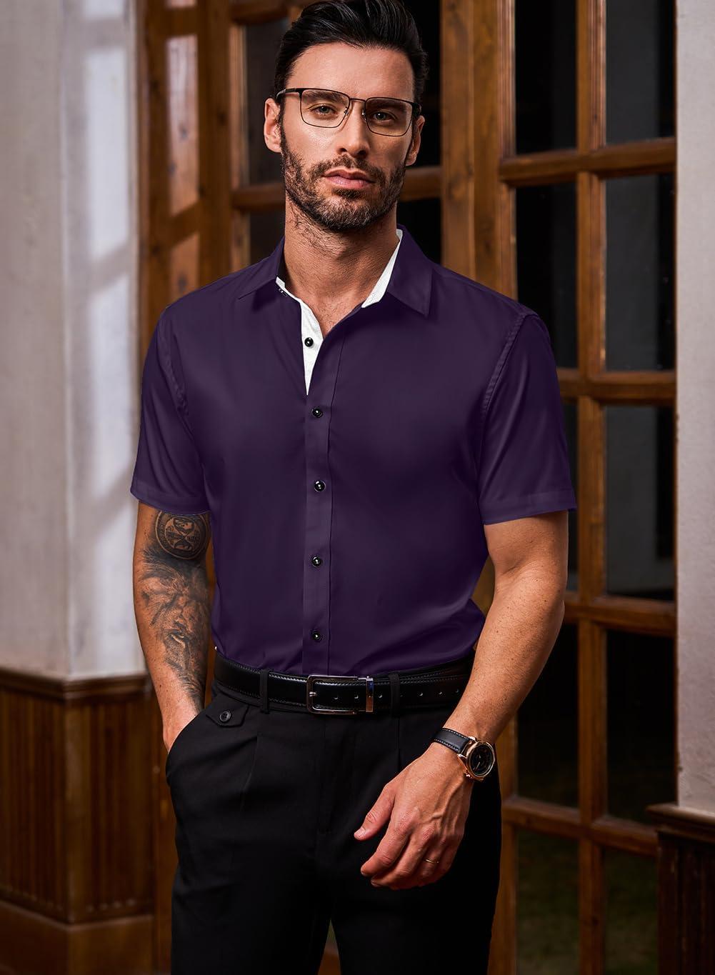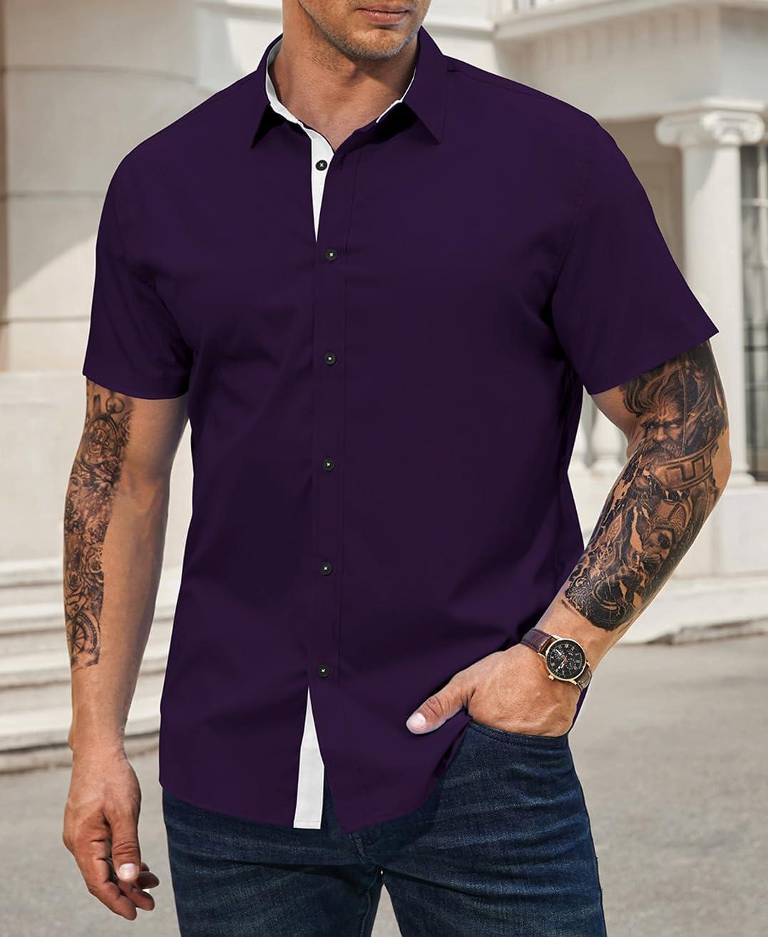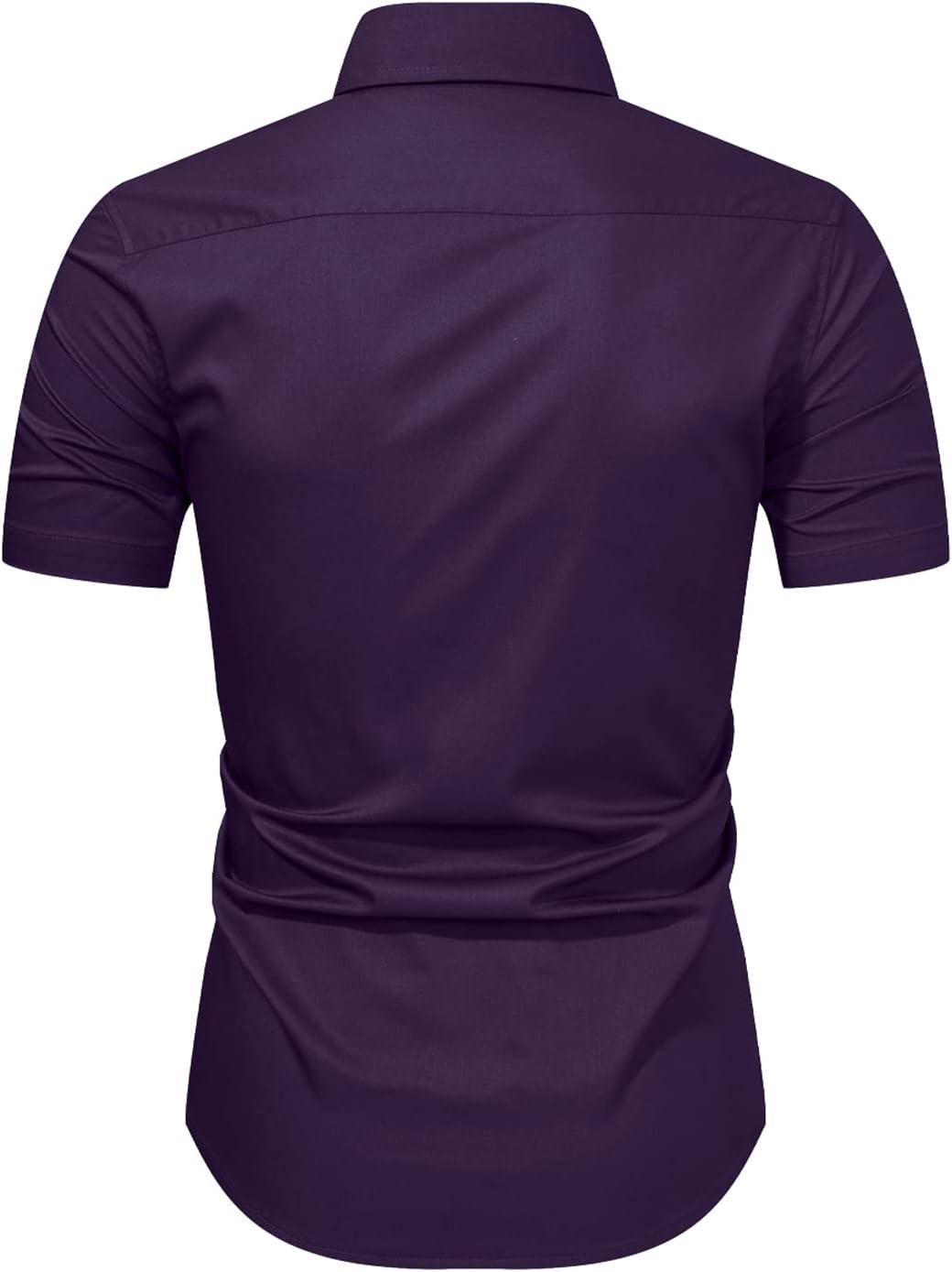 JMIERR Men’s Casual Button Down Shirts Wrinkle-Free Short Sleeve Business Dress Shirt(D Dark Purple)