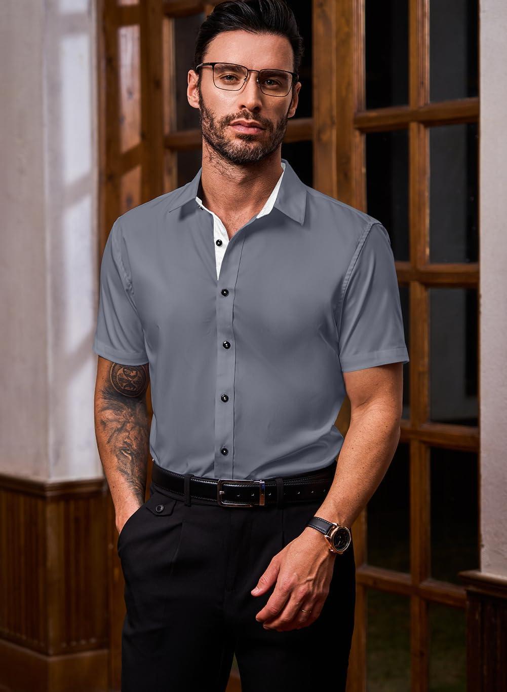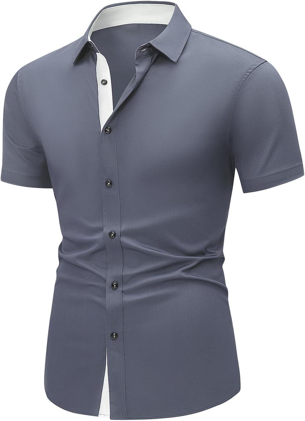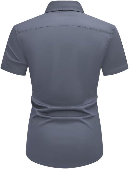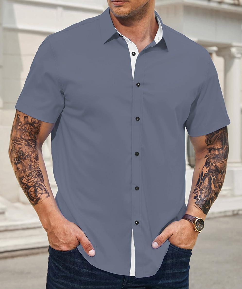 JMIERR Men’s Casual Button Down Shirts Wrinkle-Free Short Sleeve Business Dress Shirt(Dark Grey)