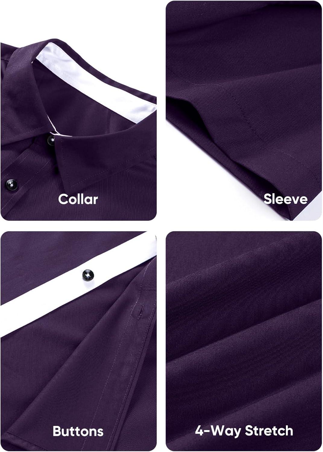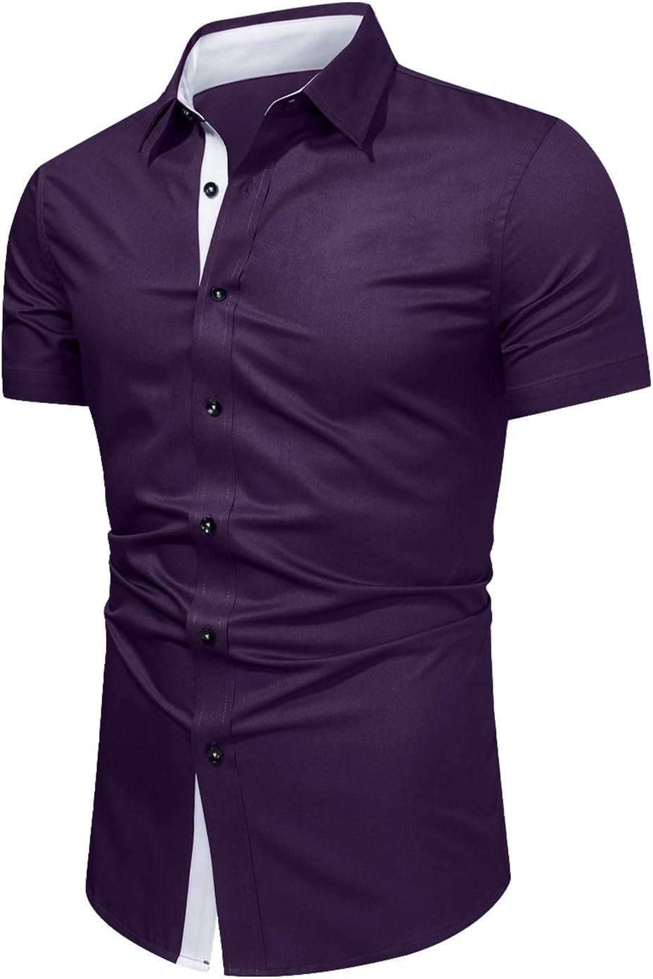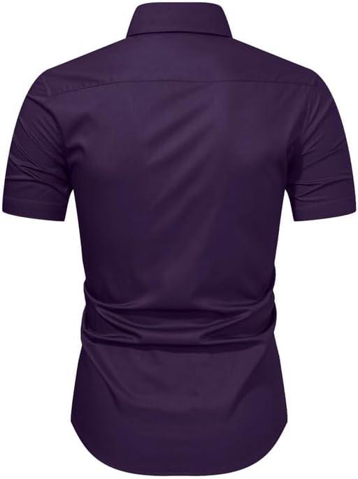 JMIERR Men’s Casual Button Down Shirts Wrinkle-Free Short Sleeve Business Dress Shirt(Dark Purple)