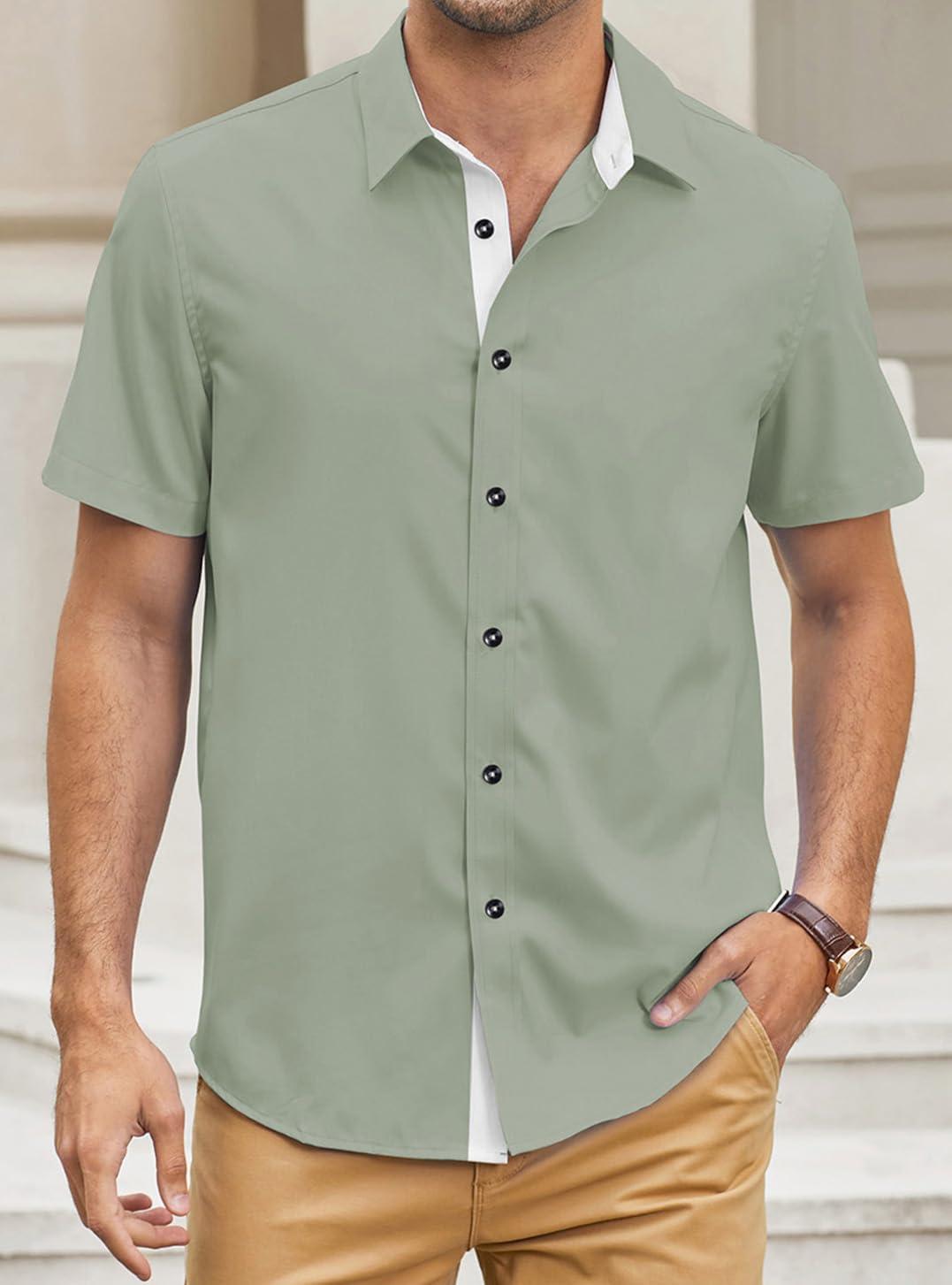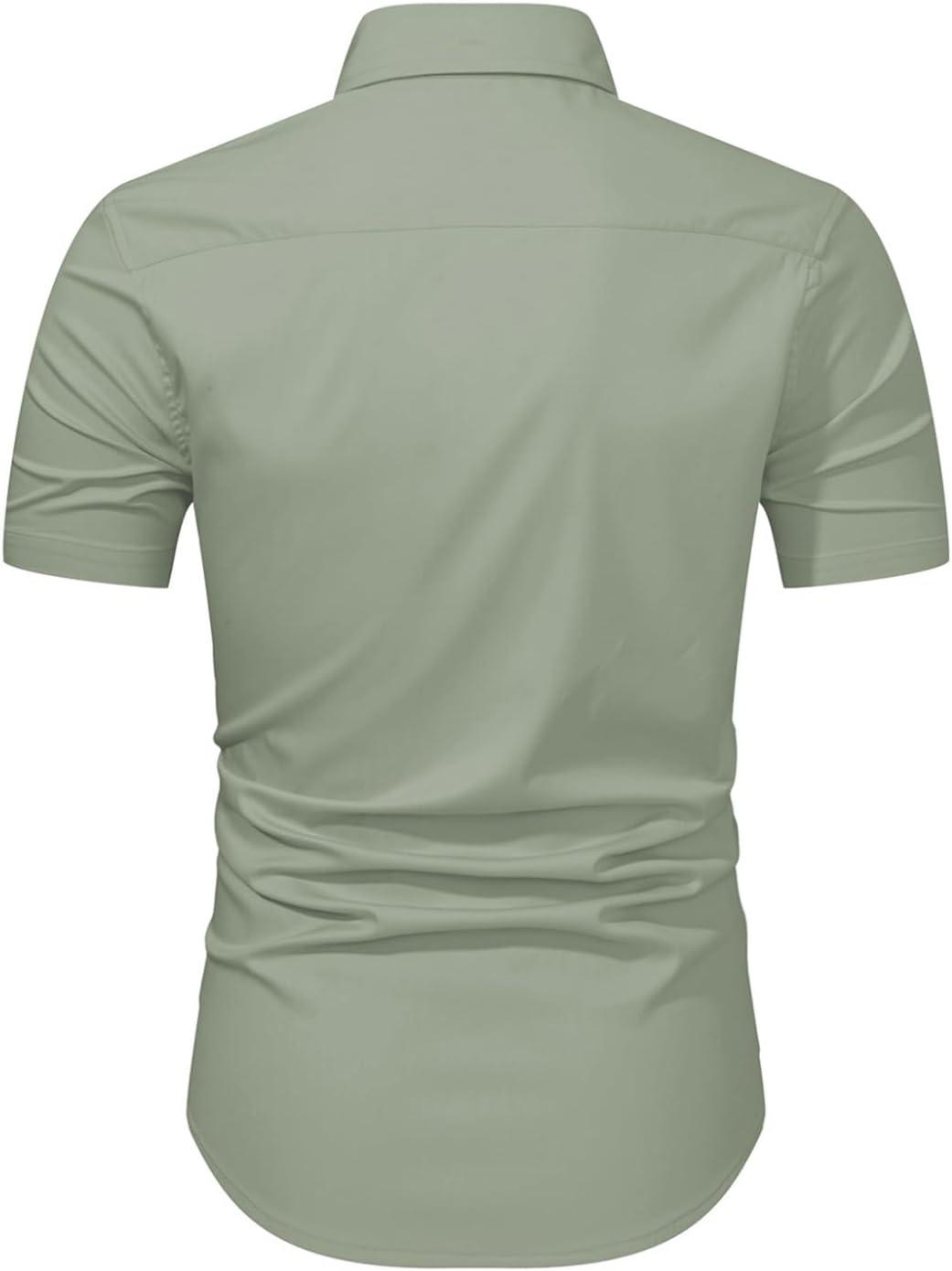 JMIERR Men’s Casual Button Down Shirts Wrinkle-Free Short Sleeve Business Dress Shirt(Green)