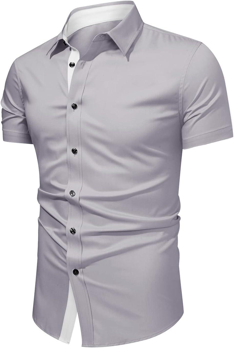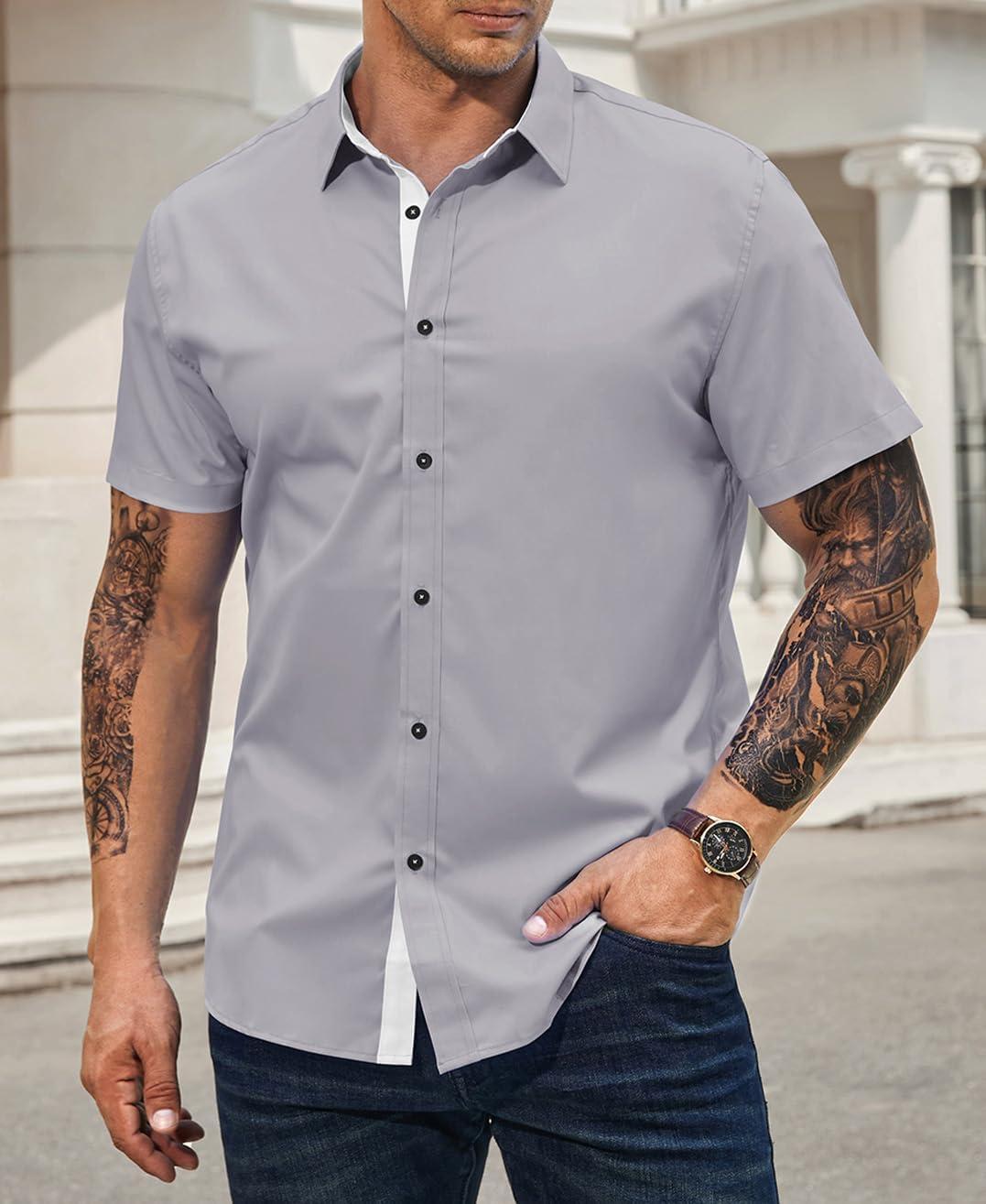 JMIERR Men’s Casual Button Down Shirts Wrinkle-Free Short Sleeve Business Dress Shirt(Grey)