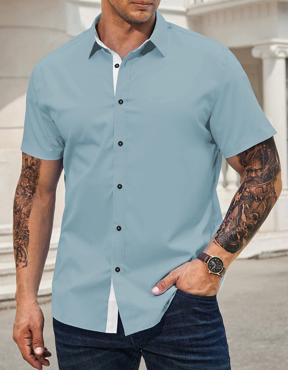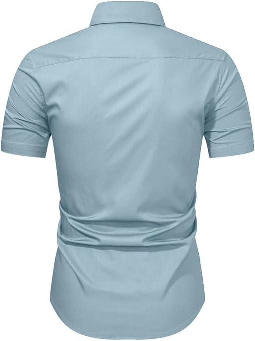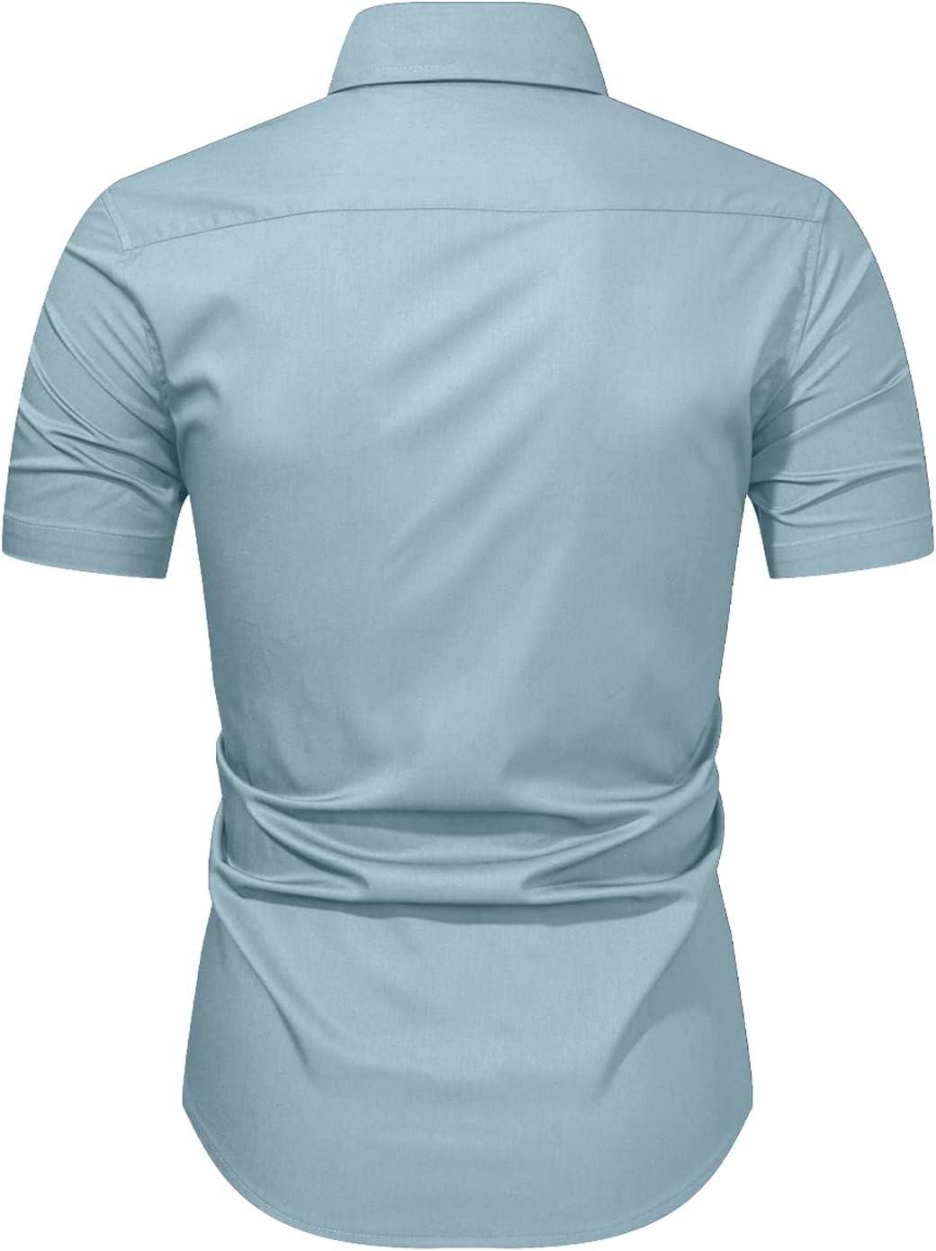 JMIERR Men’s Casual Button Down Shirts Wrinkle-Free Short Sleeve Business Dress Shirt(Light Blue)