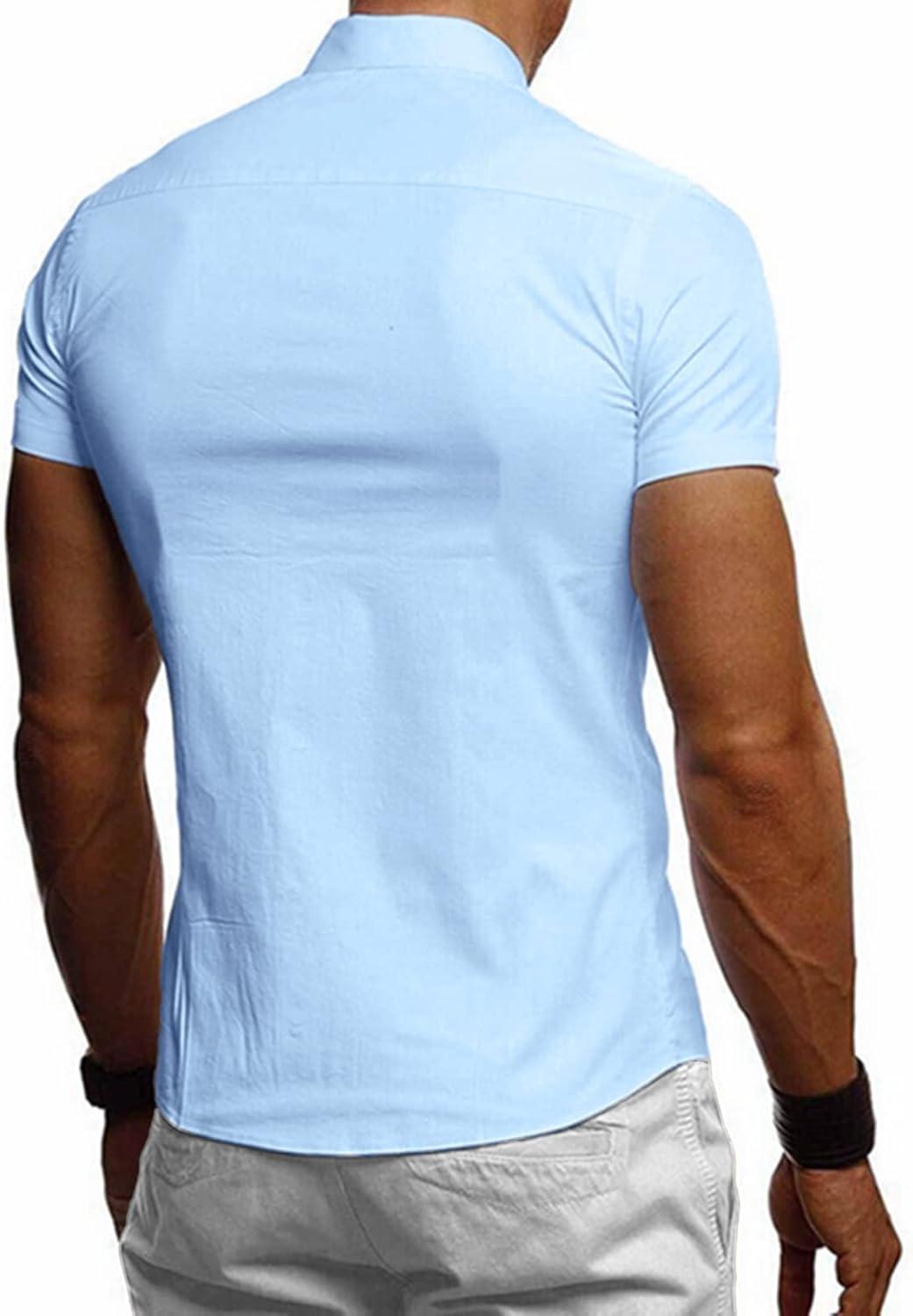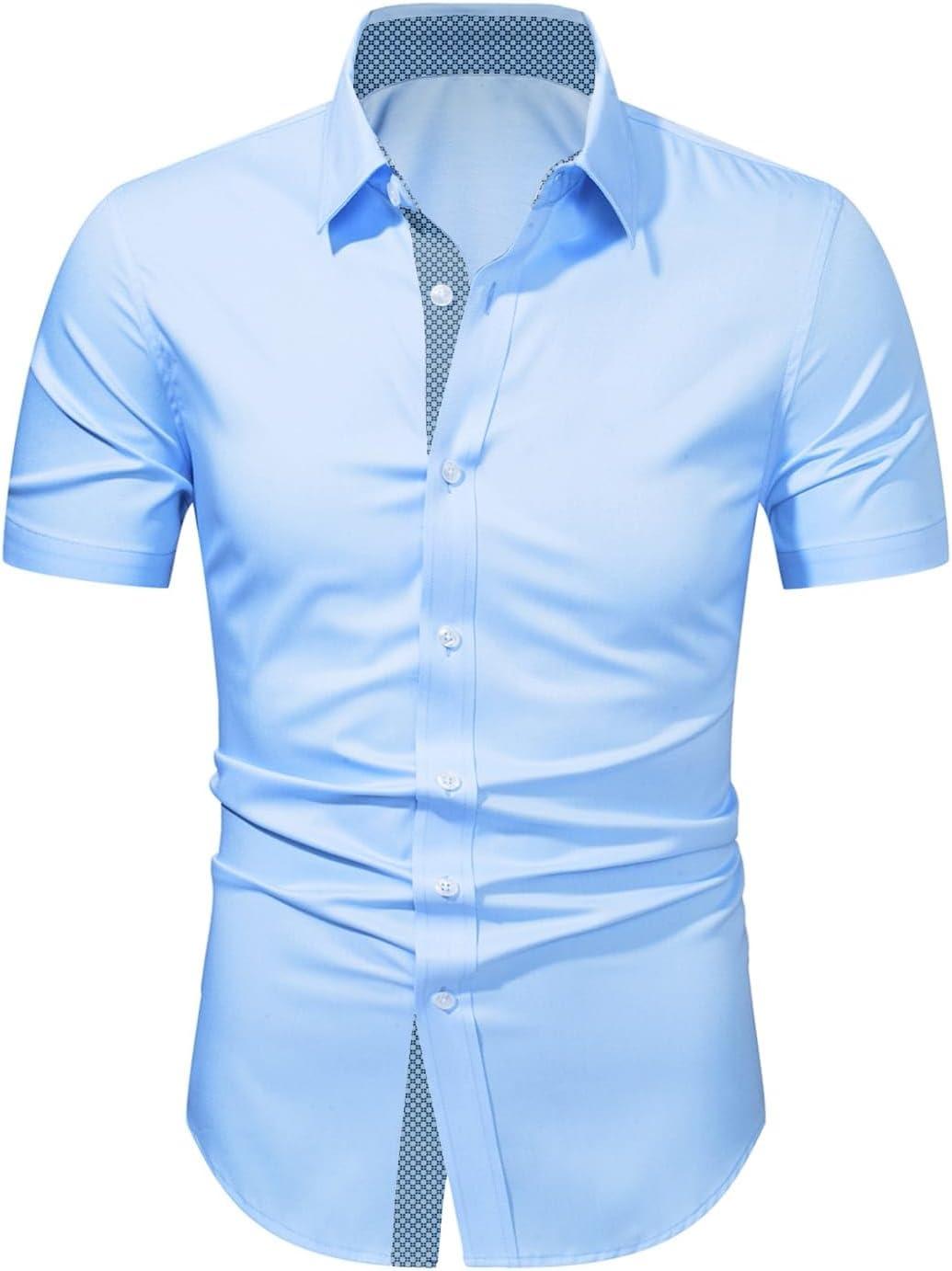 JMIERR Men’s Casual Button Down Shirts Wrinkle-Free Short Sleeve Business Dress Shirt(Sky Blue2)