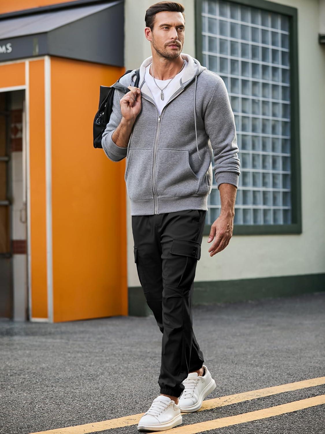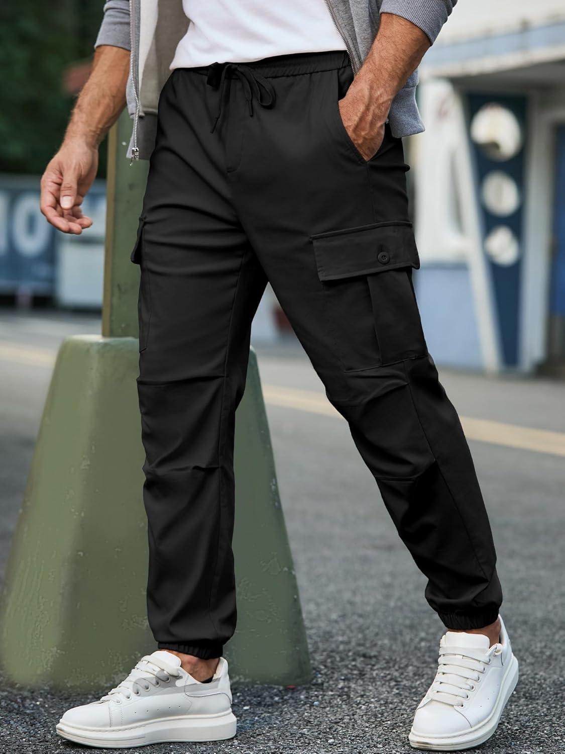 JMIERR Mens Casual Cargo Joggers Pants Elastic Waist Drawstring Stretch Relaxed Fit Work Pants Tapered Sweatpants(Black)