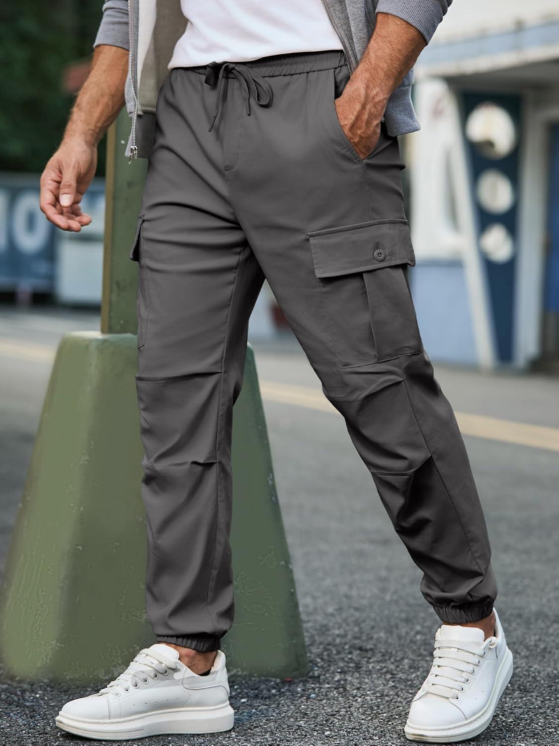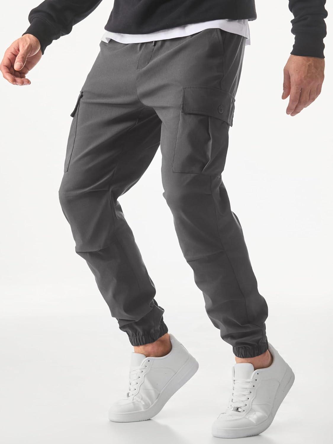 JMIERR Mens Casual Cargo Joggers Pants Elastic Waist Drawstring Stretch Relaxed Fit Work Pants Tapered Sweatpants(Carbon Grey)
