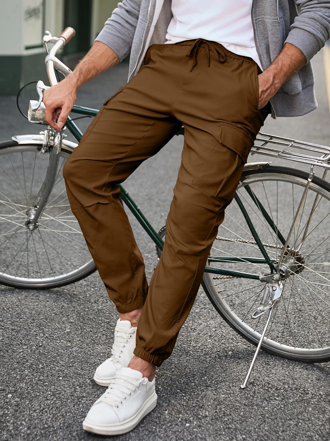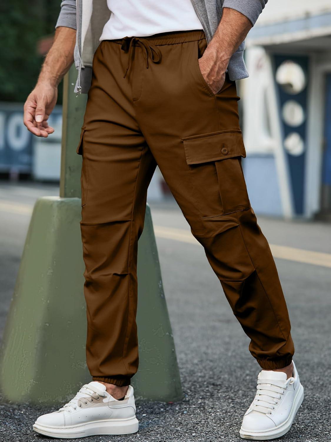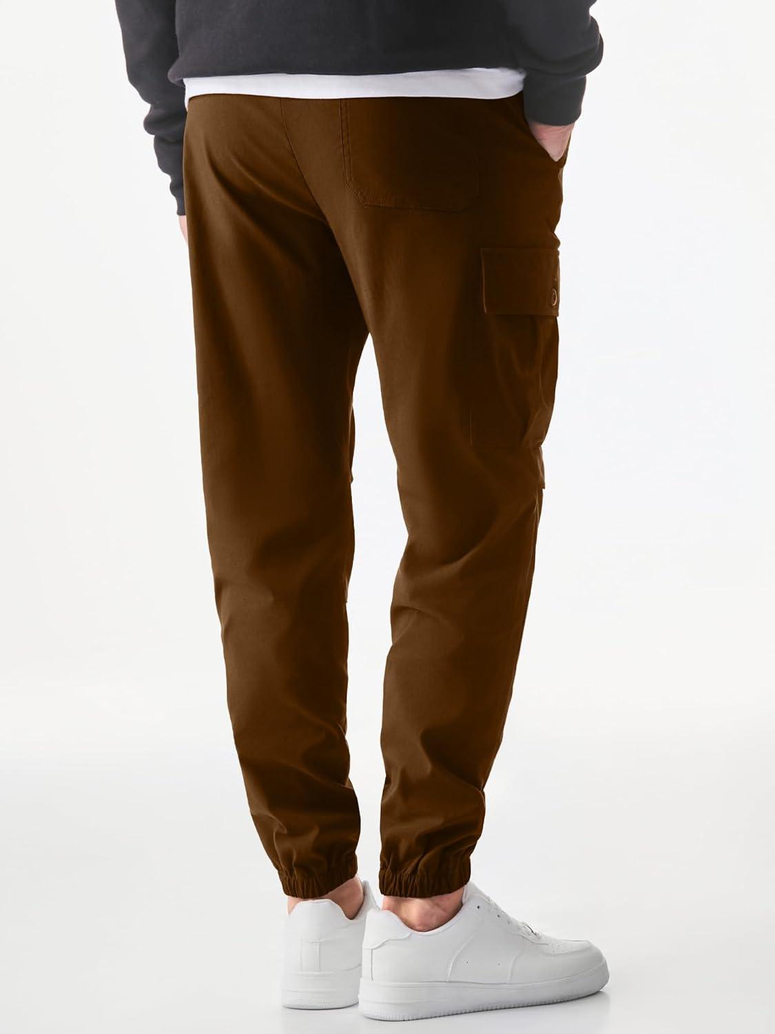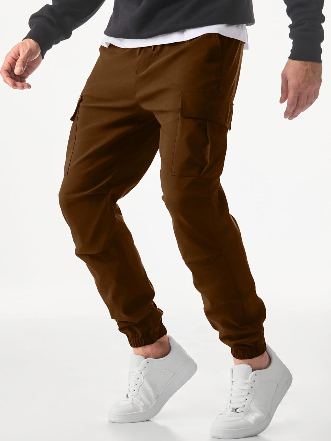 JMIERR Mens Casual Cargo Joggers Pants Elastic Waist Drawstring Stretch Relaxed Fit Work Pants Tapered Sweatpants(Coffee)