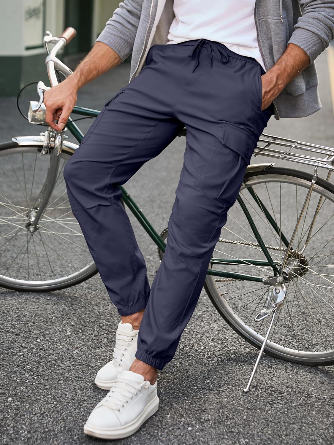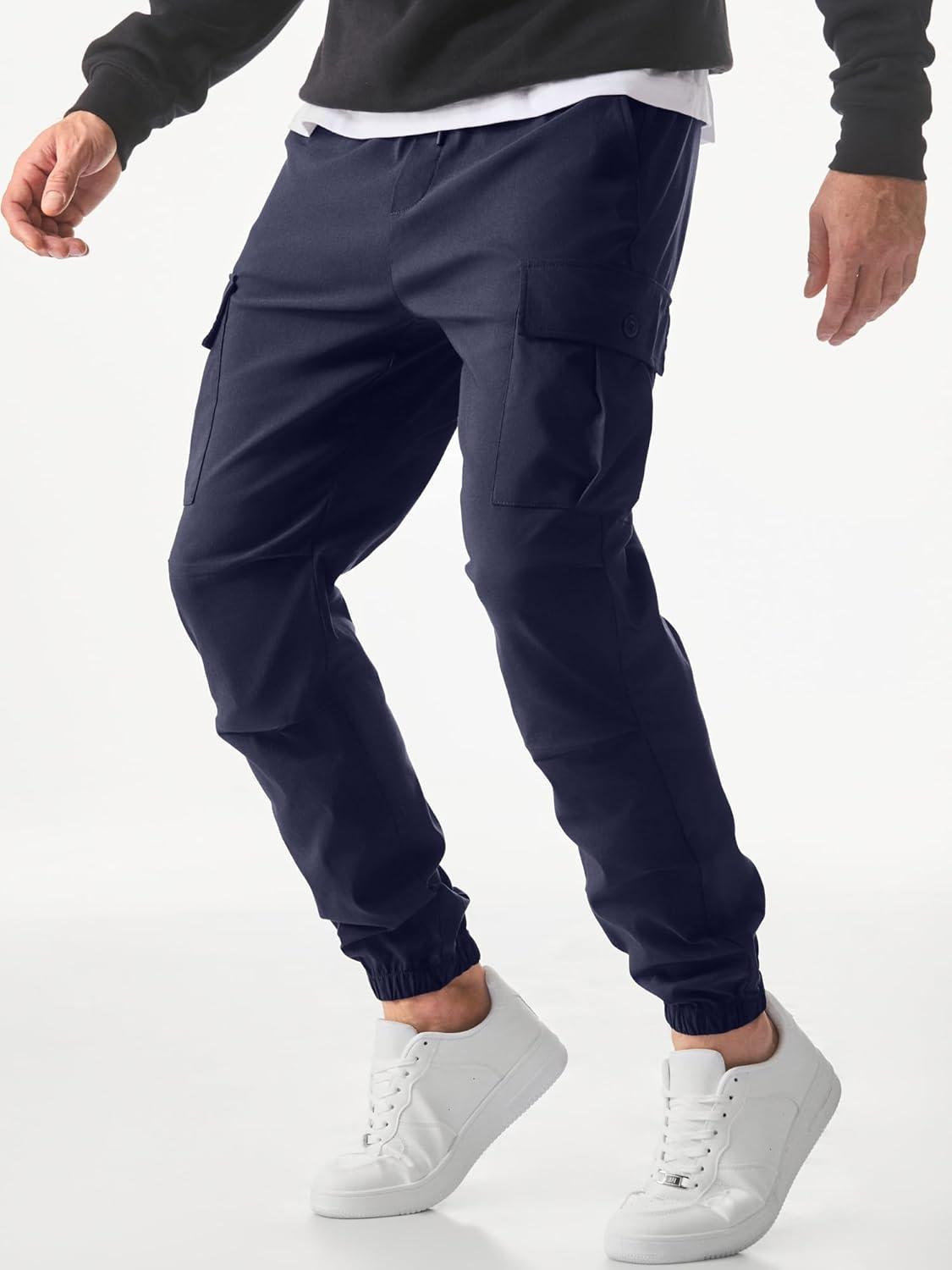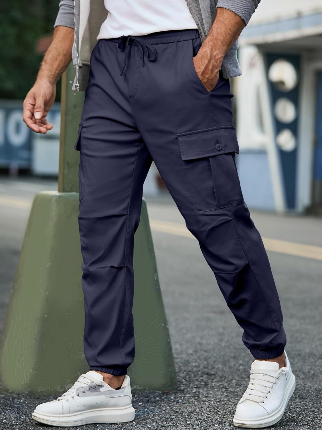 JMIERR Mens Casual Cargo Joggers Pants Elastic Waist Drawstring Stretch Relaxed Fit Work Pants Tapered Sweatpants(Philippine Gray)