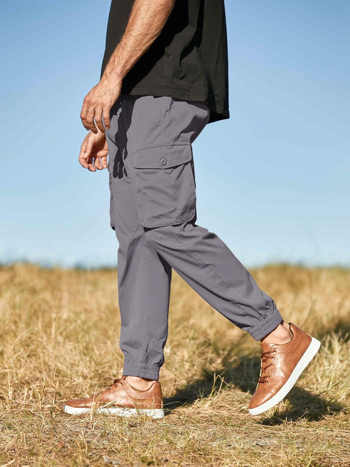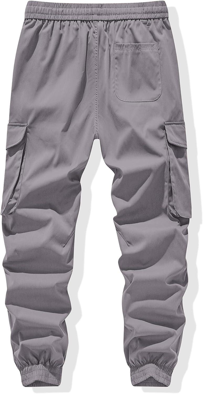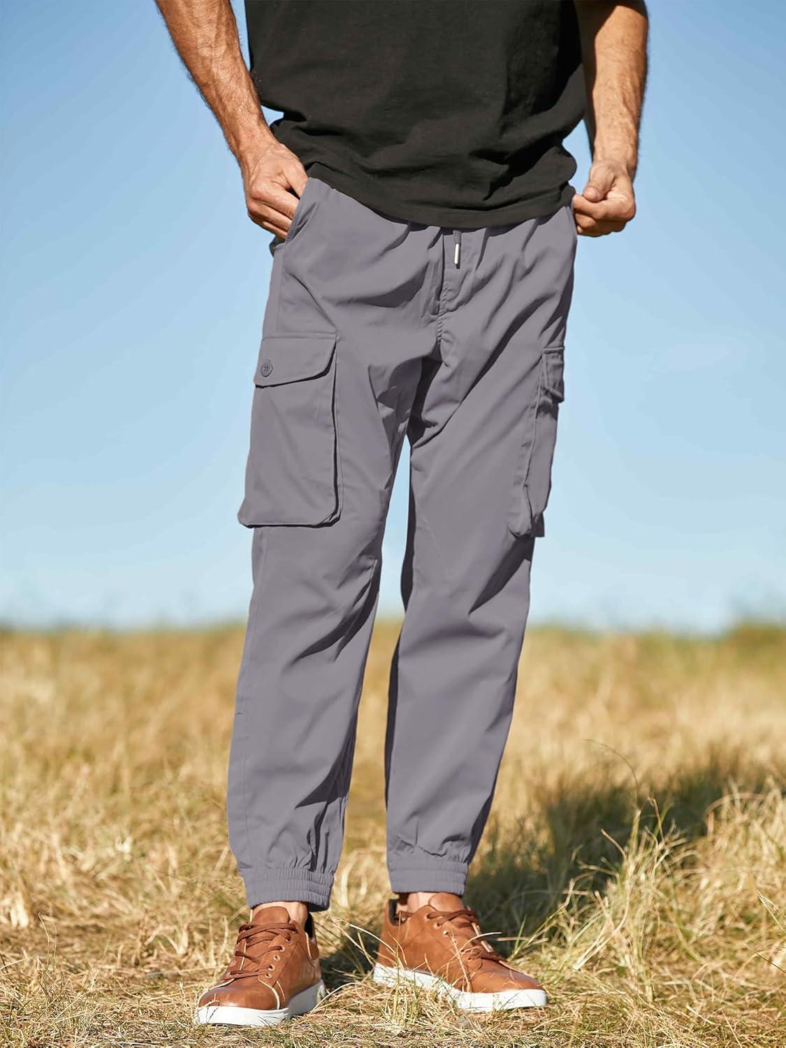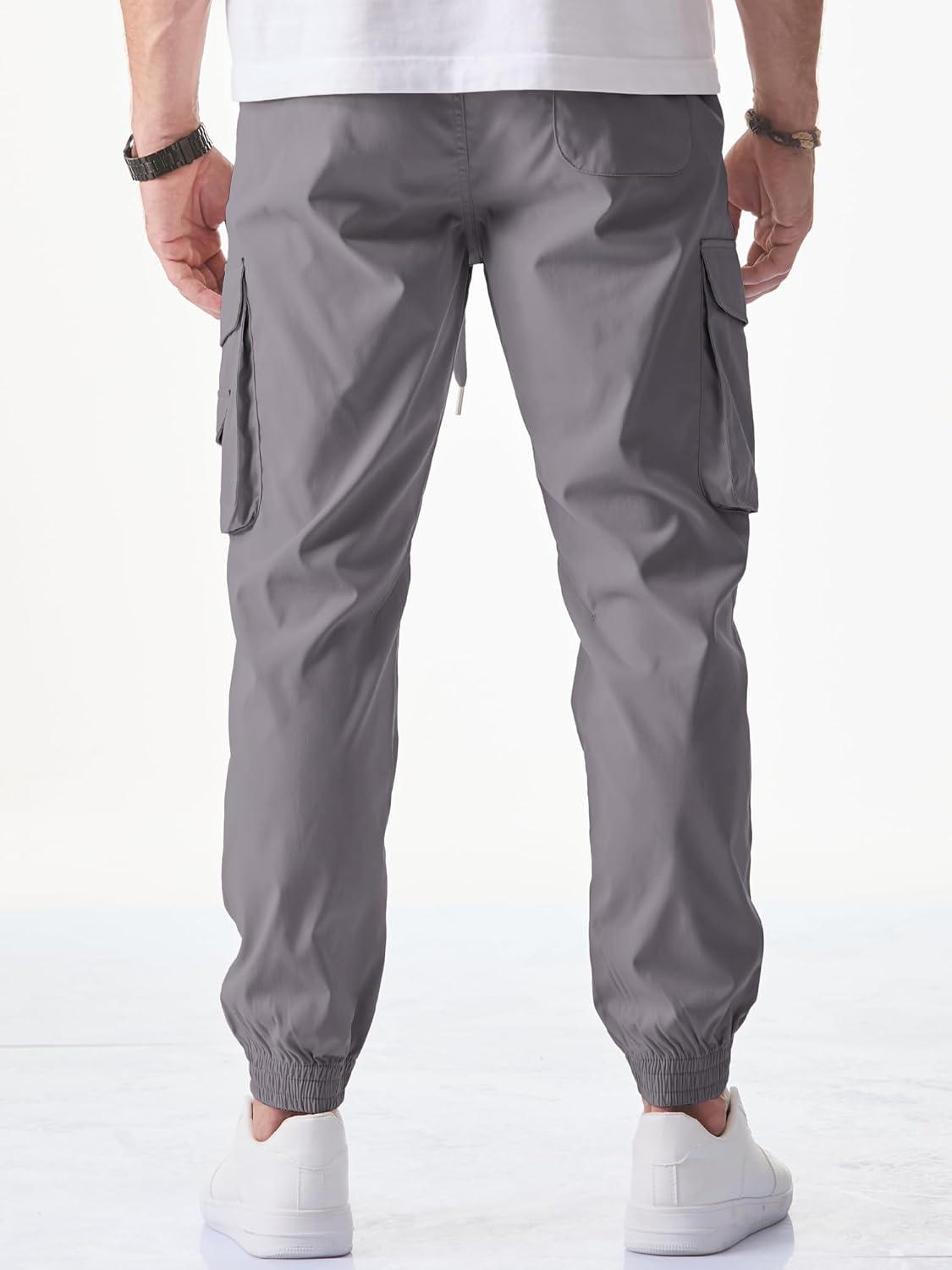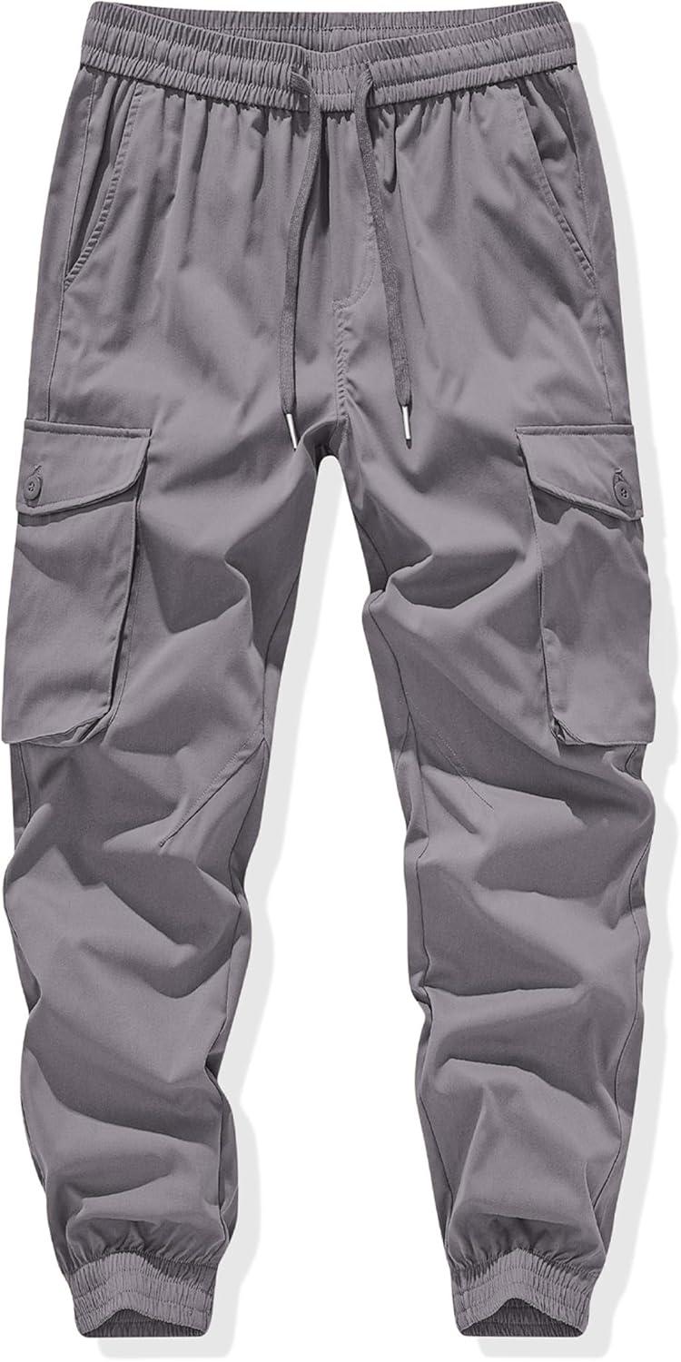 JMIERR Men’s Casual Cargo Joggers Pants Stretch Elastic Waist Drawstring Tapered Sweatpants with Pockets(Dark Grey)
