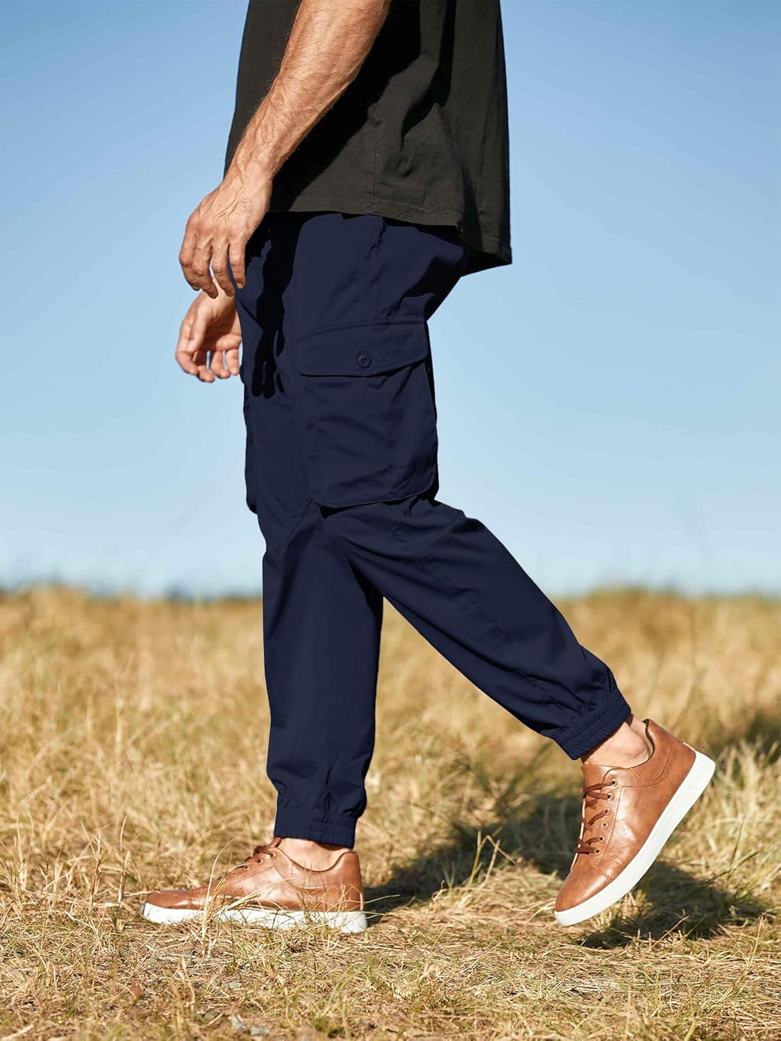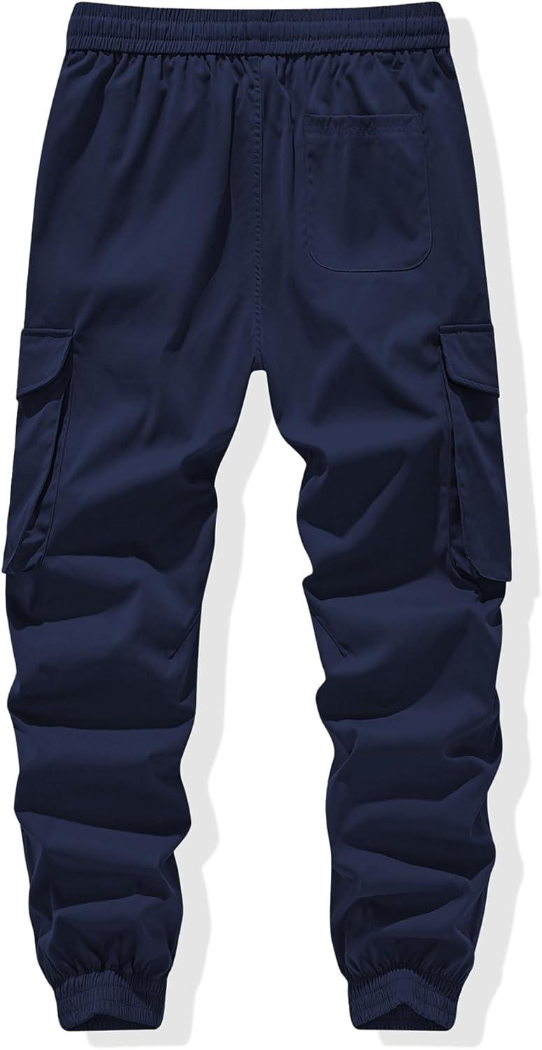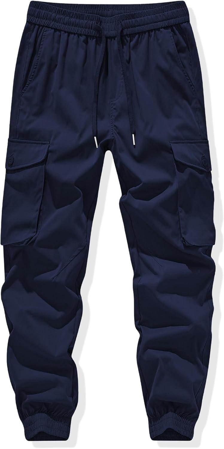 JMIERR Men’s Casual Cargo Joggers Pants Stretch Elastic Waist Drawstring Tapered Sweatpants with Pockets(Navy Blue)
