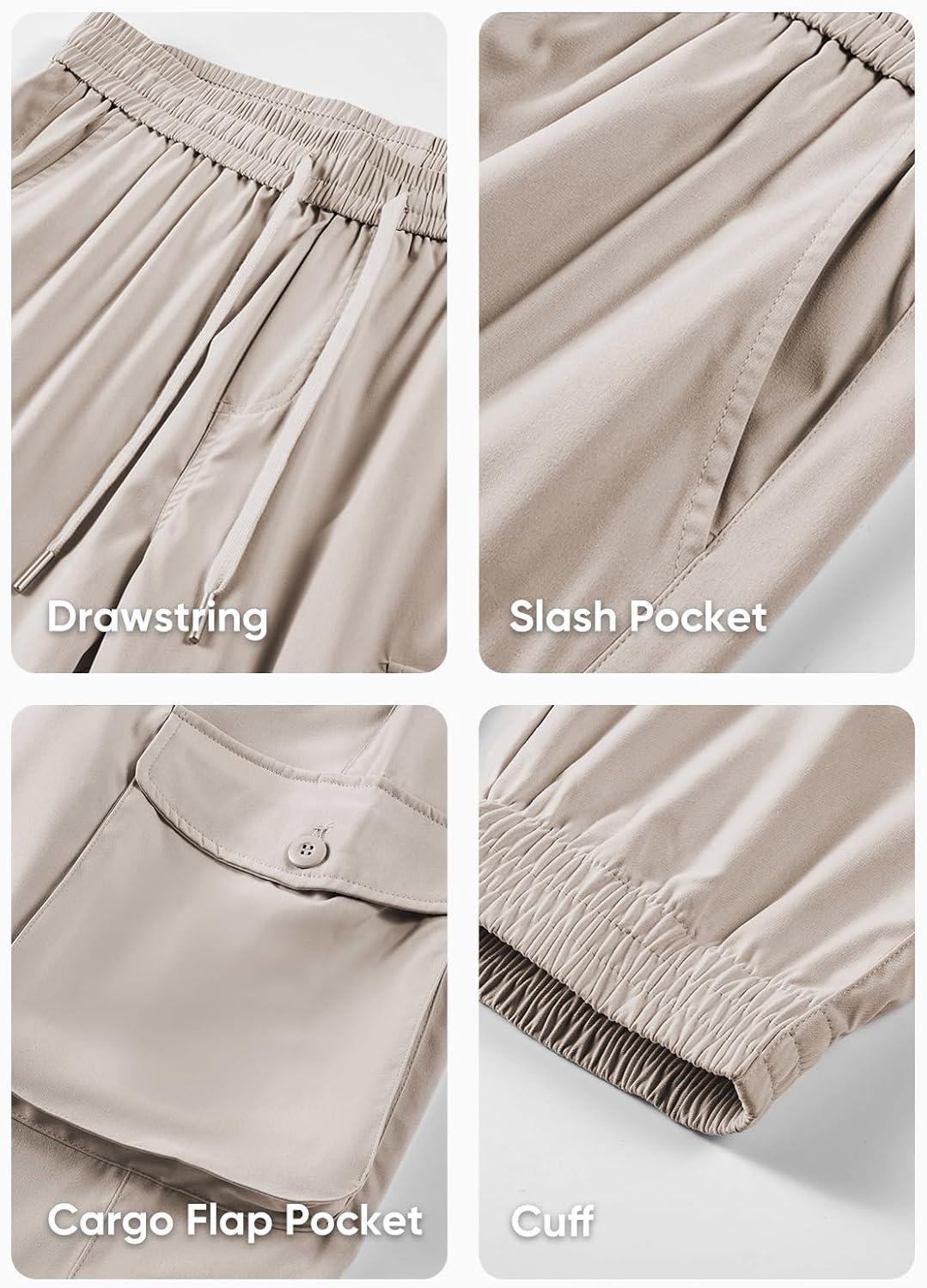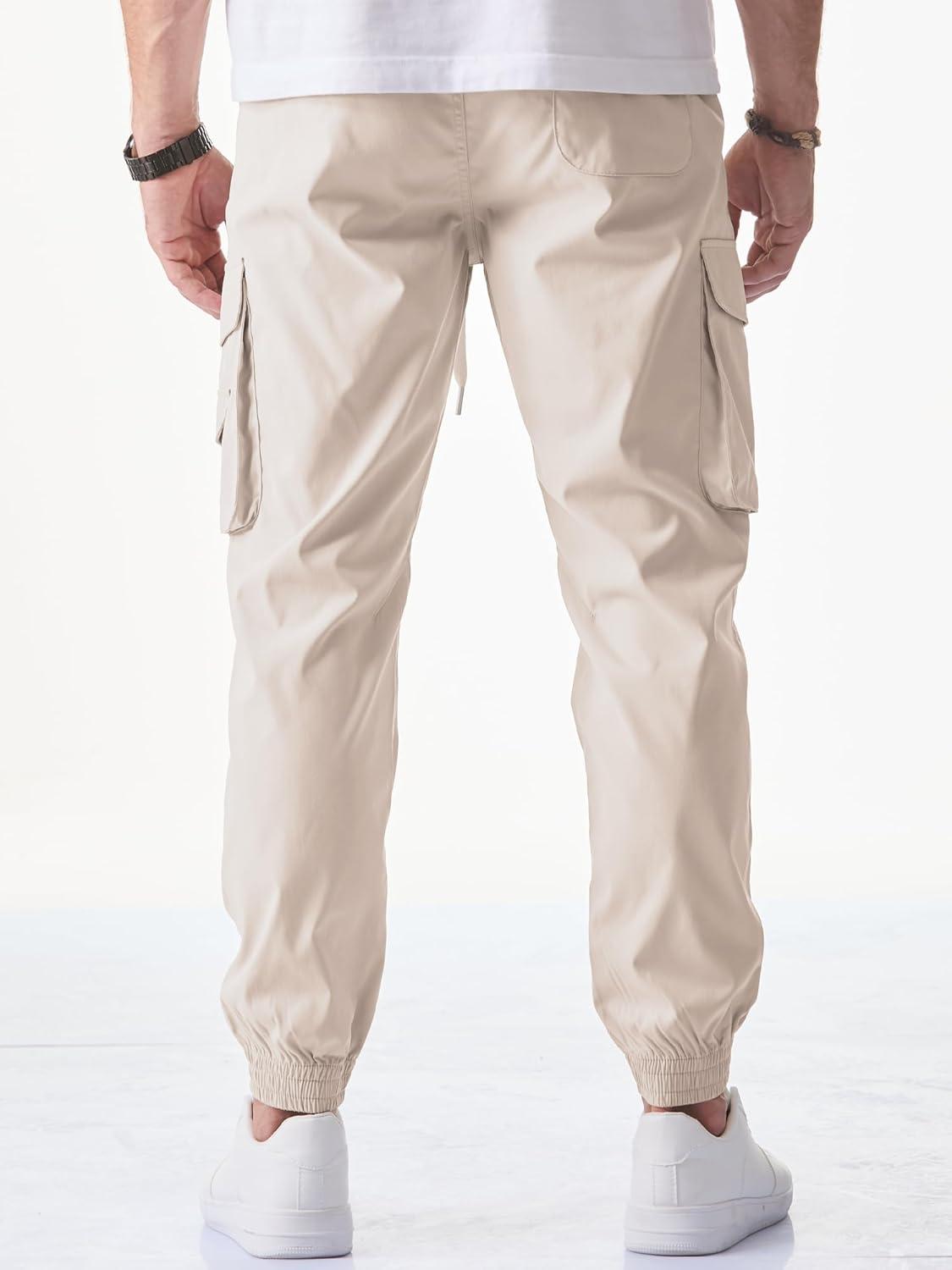 JMIERR Men’s Casual Cargo Joggers Pants Stretch Elastic Waist Drawstring Tapered Sweatpants with Pockets(Parchment)