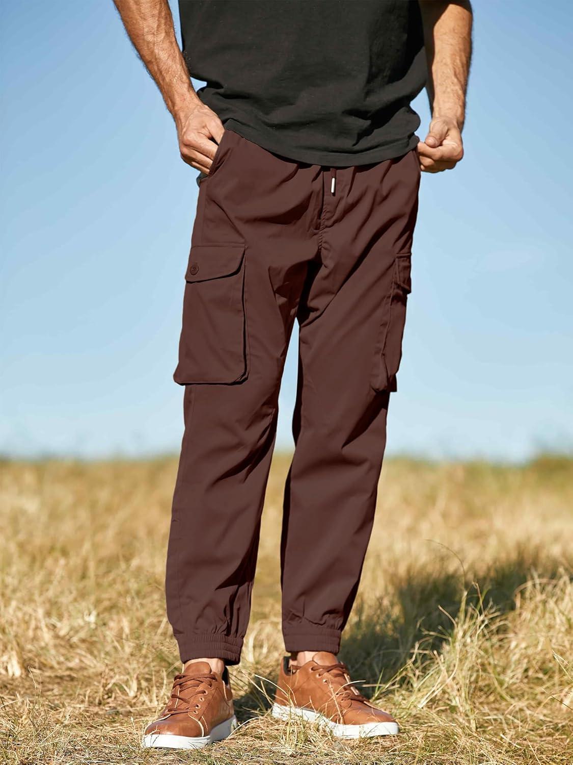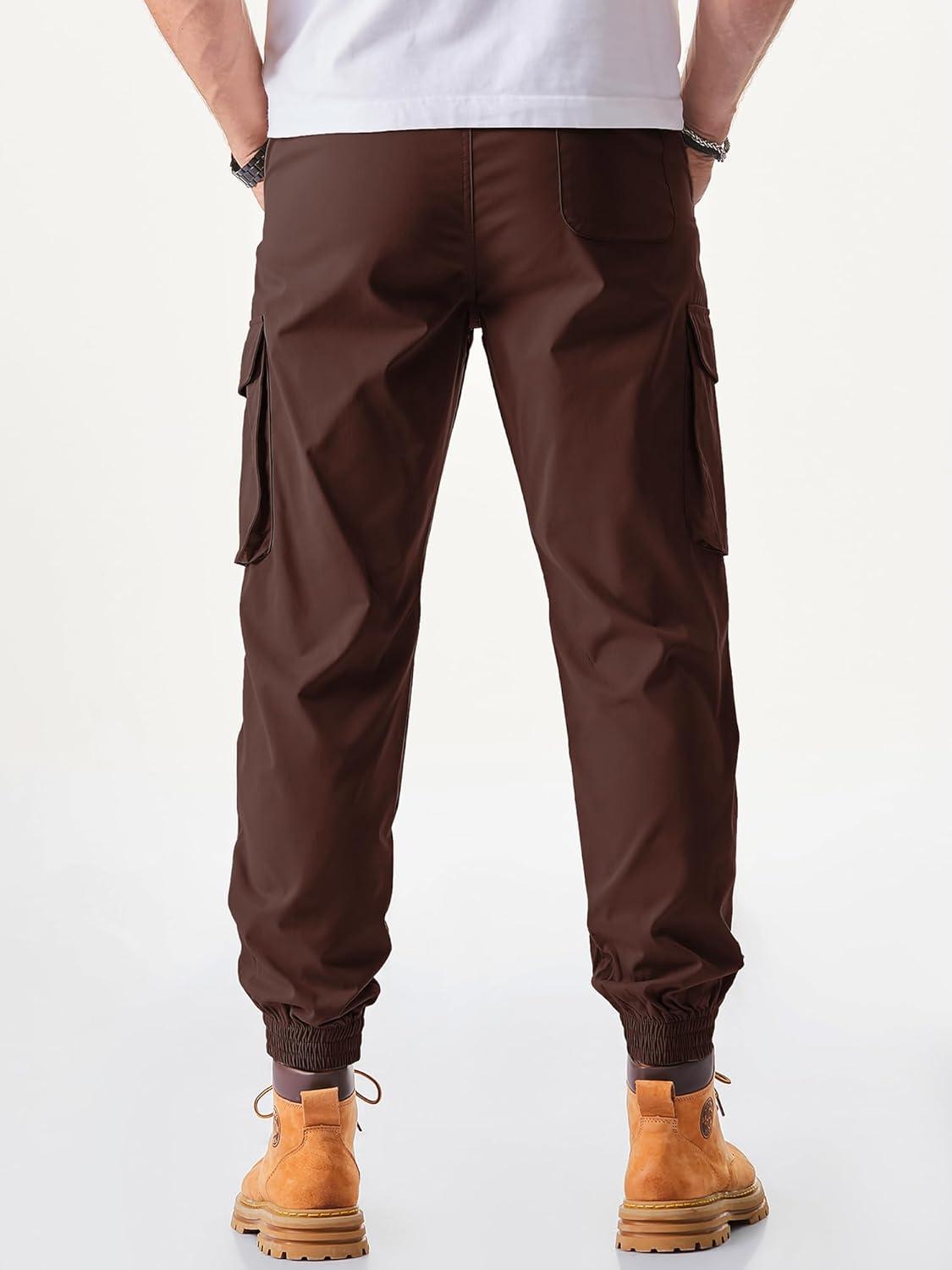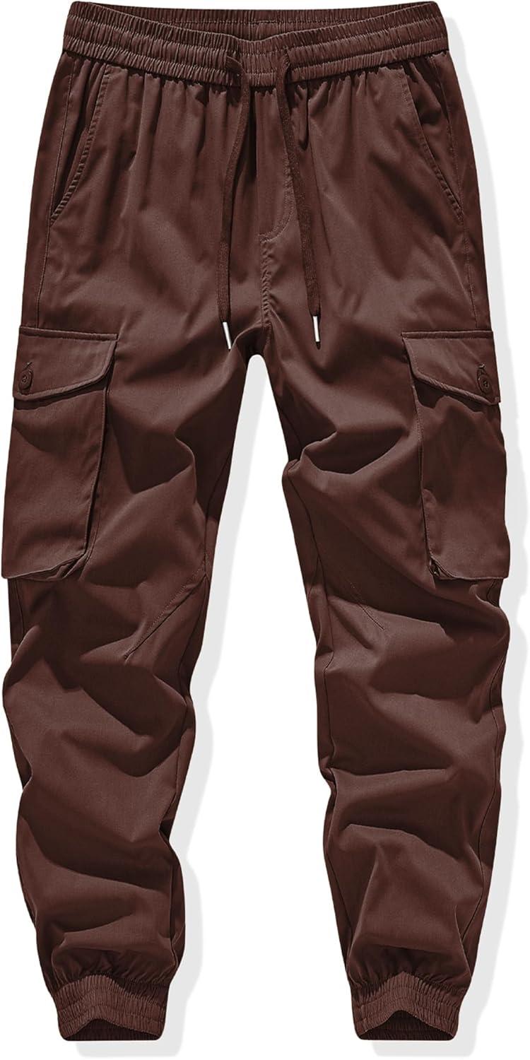JMIERR Men’s Casual Cargo Joggers Pants Stretch Elastic Waist Drawstring Tapered Sweatpants with Pockets(Y Coffee)