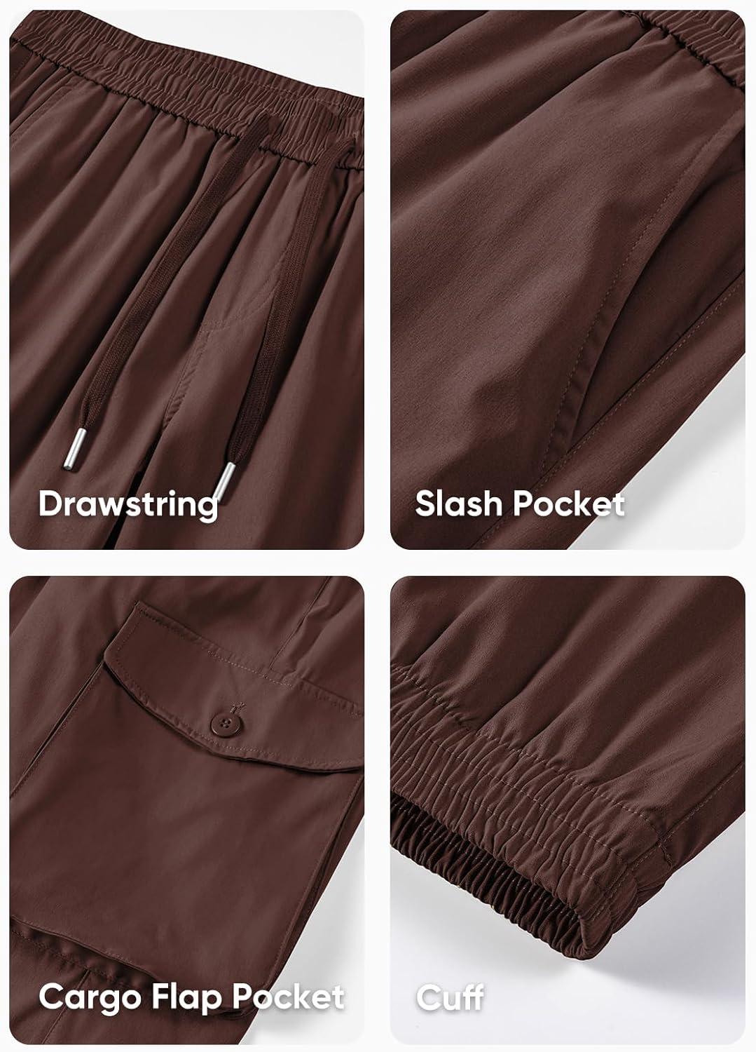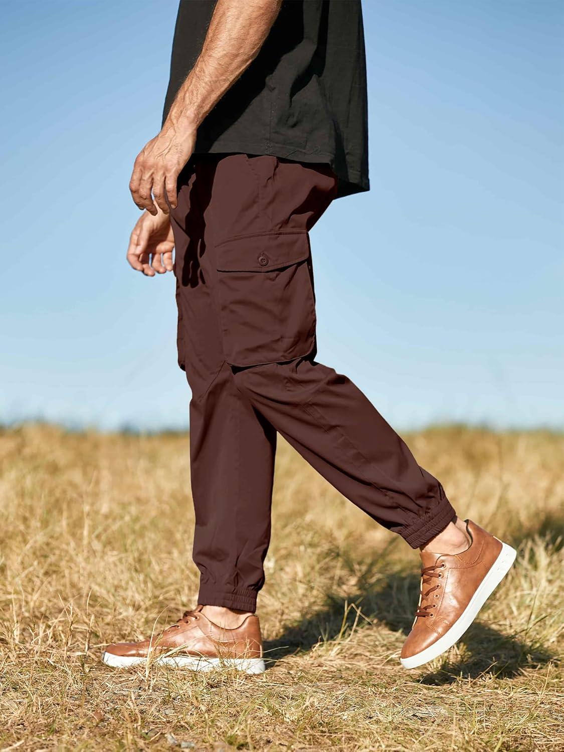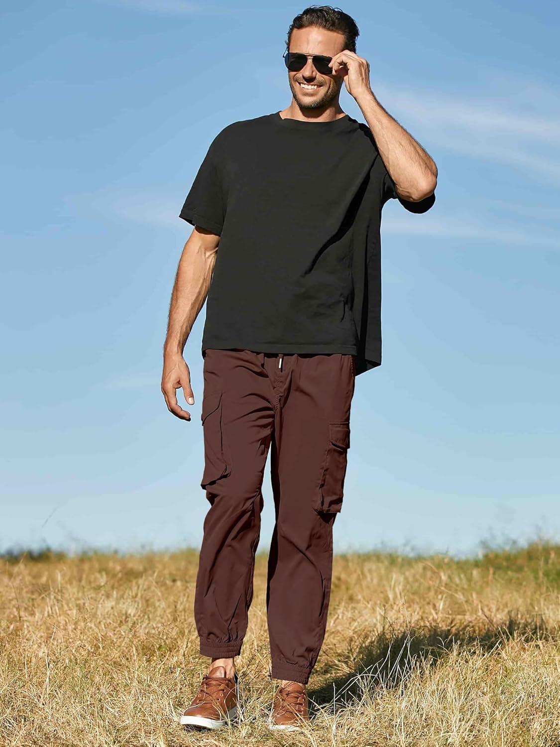JMIERR Men’s Casual Cargo Joggers Pants Stretch Elastic Waist Drawstring Tapered Sweatpants with Pockets(Y Coffee)