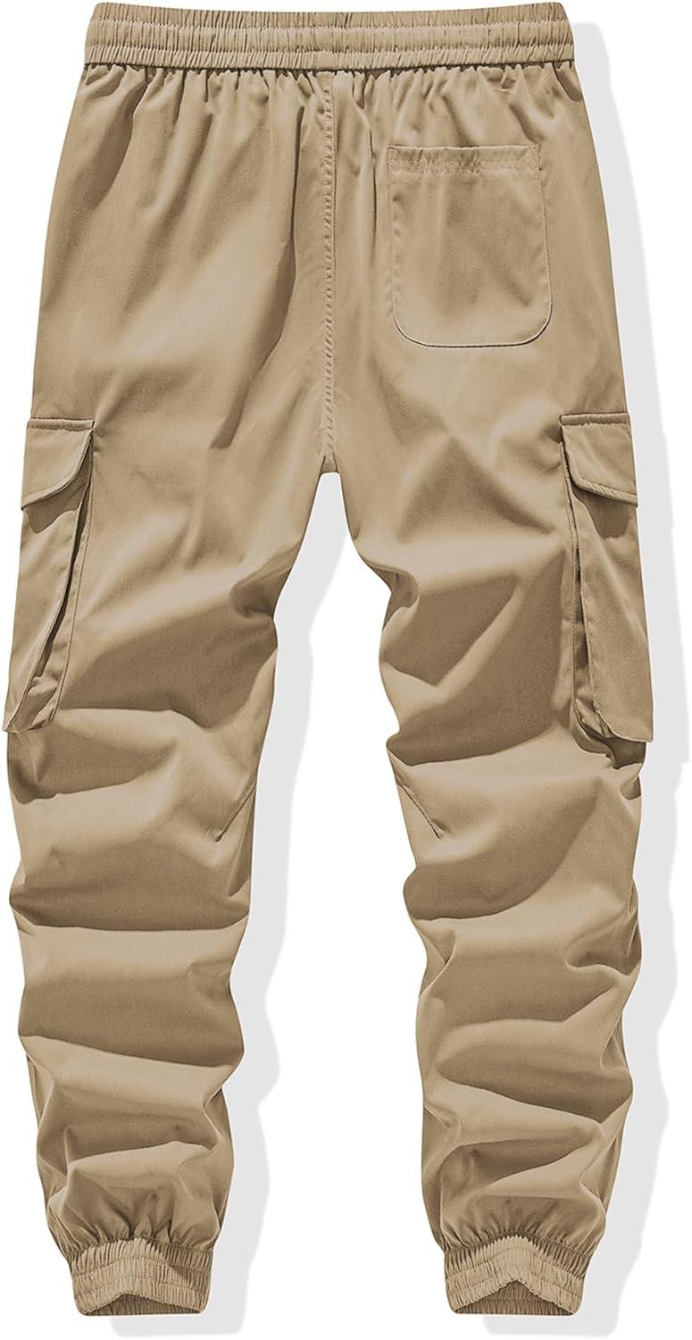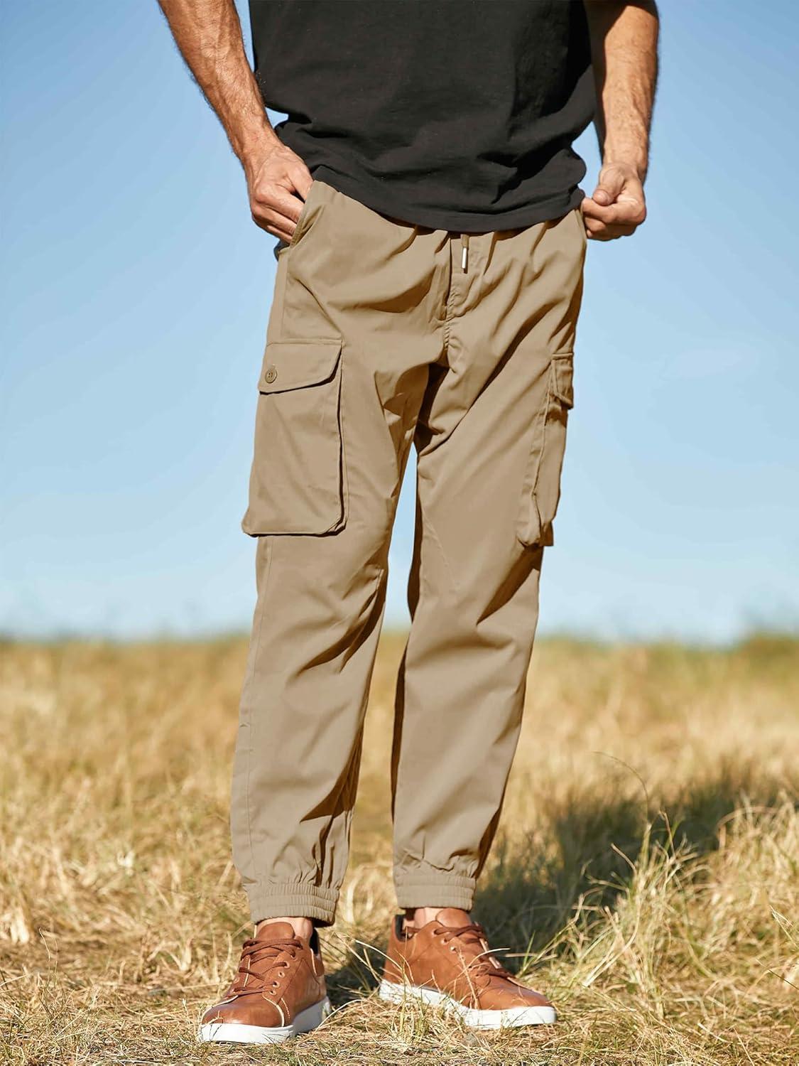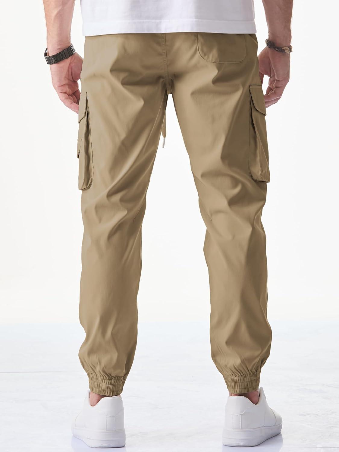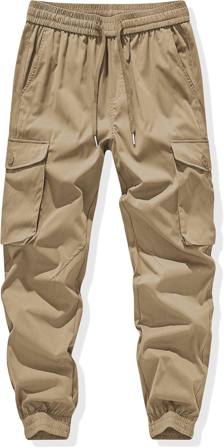 JMIERR Men’s Casual Cargo Joggers Pants Stretch Elastic Waist Drawstring Tapered Sweatpants with Pockets(Z Khaki)