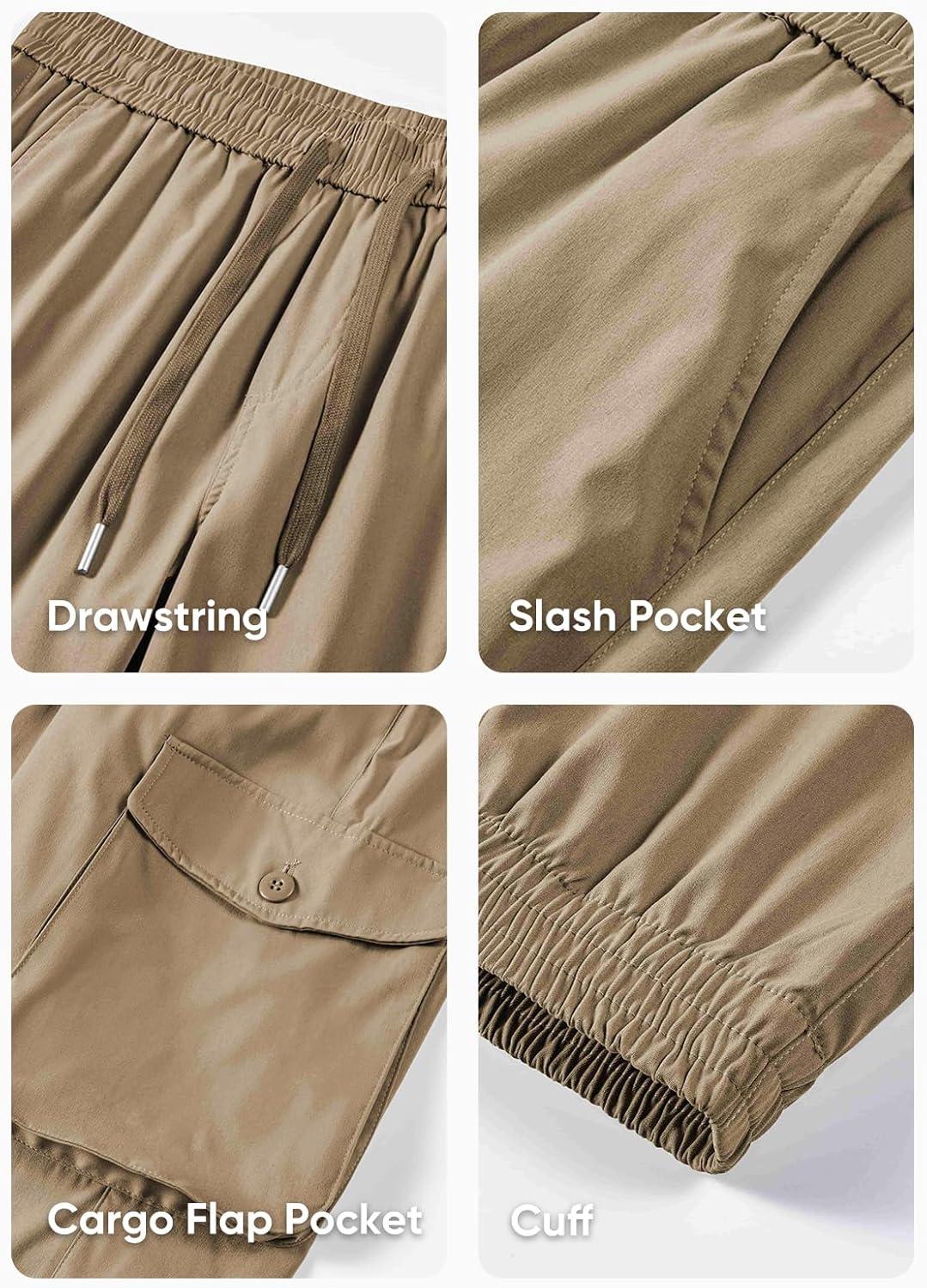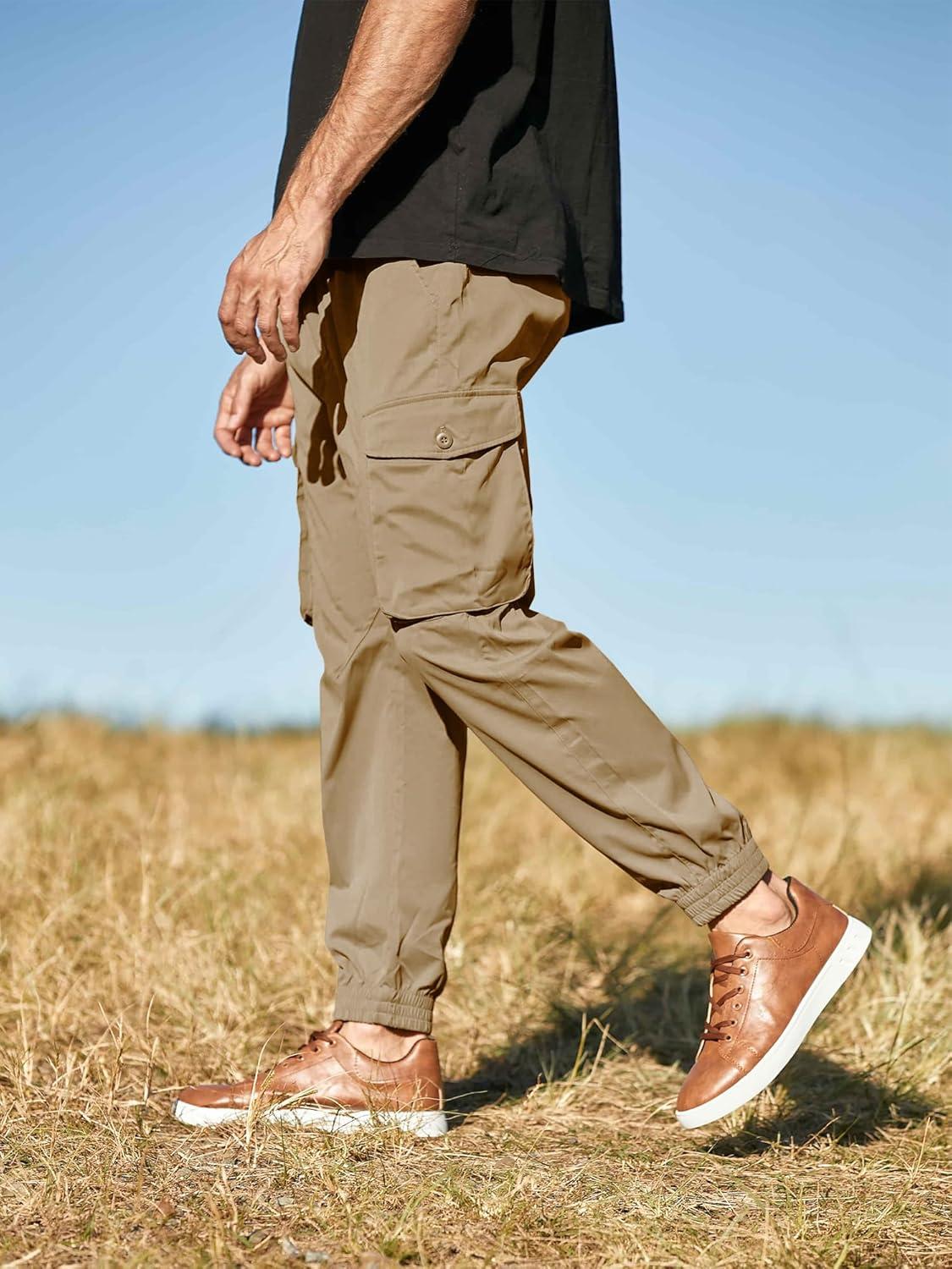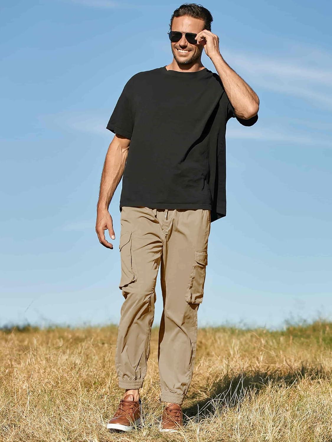 JMIERR Men’s Casual Cargo Joggers Pants Stretch Elastic Waist Drawstring Tapered Sweatpants with Pockets(Z Khaki)