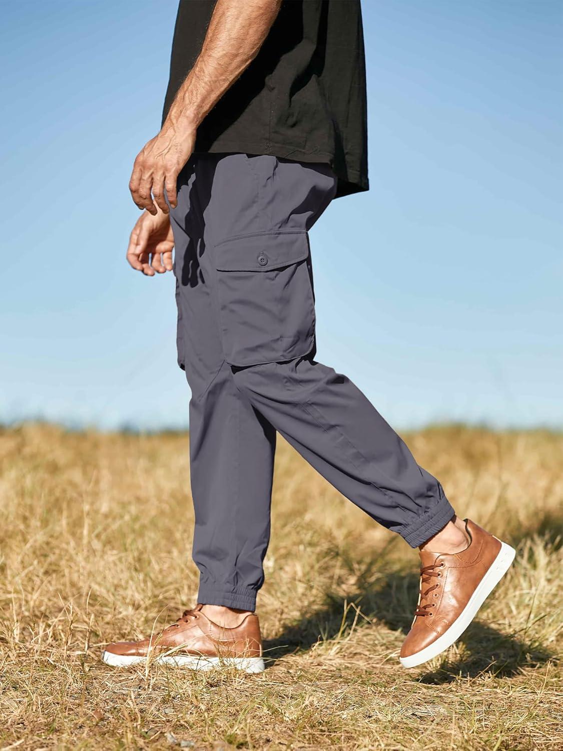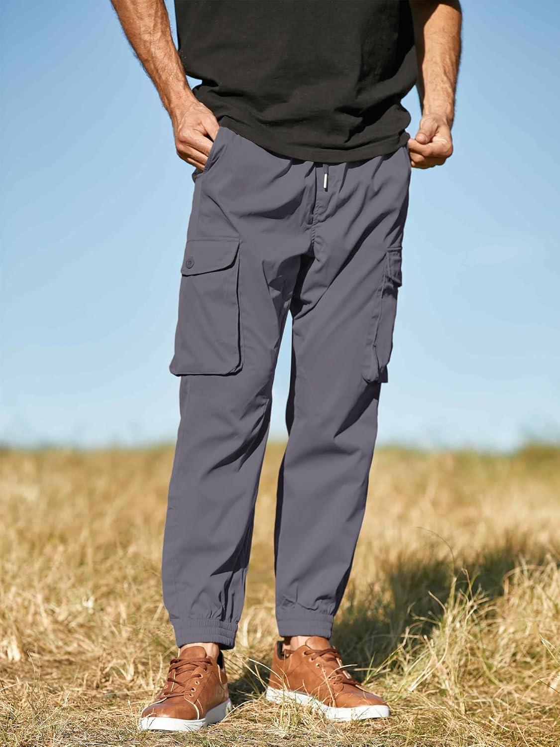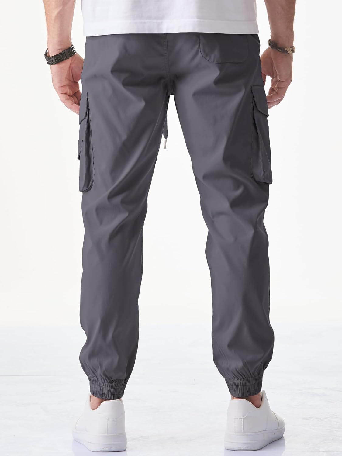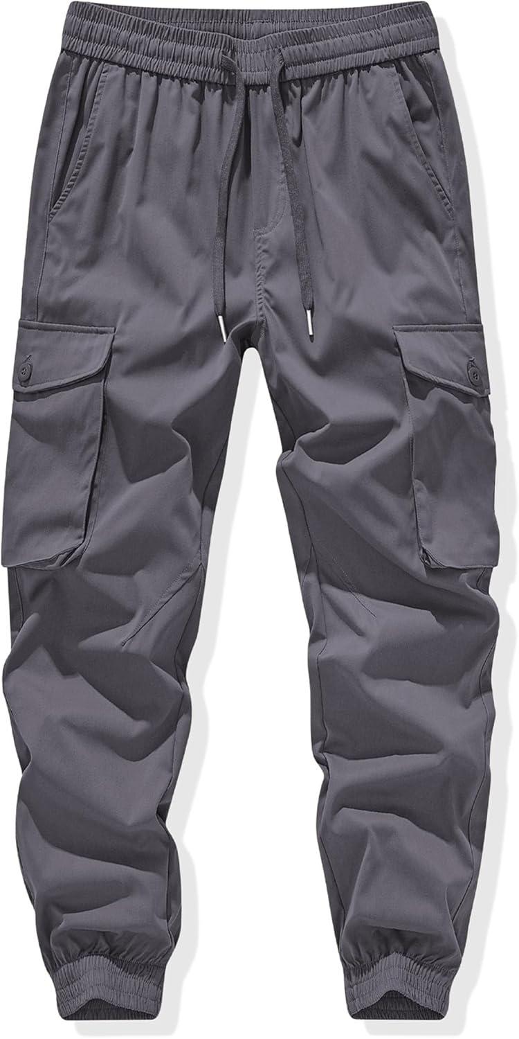 JMIERR Men’s Casual Cargo Joggers Pants Stretch Elastic Waist Drawstring Tapered Sweatpants with Pockets(Z Medium Grey)