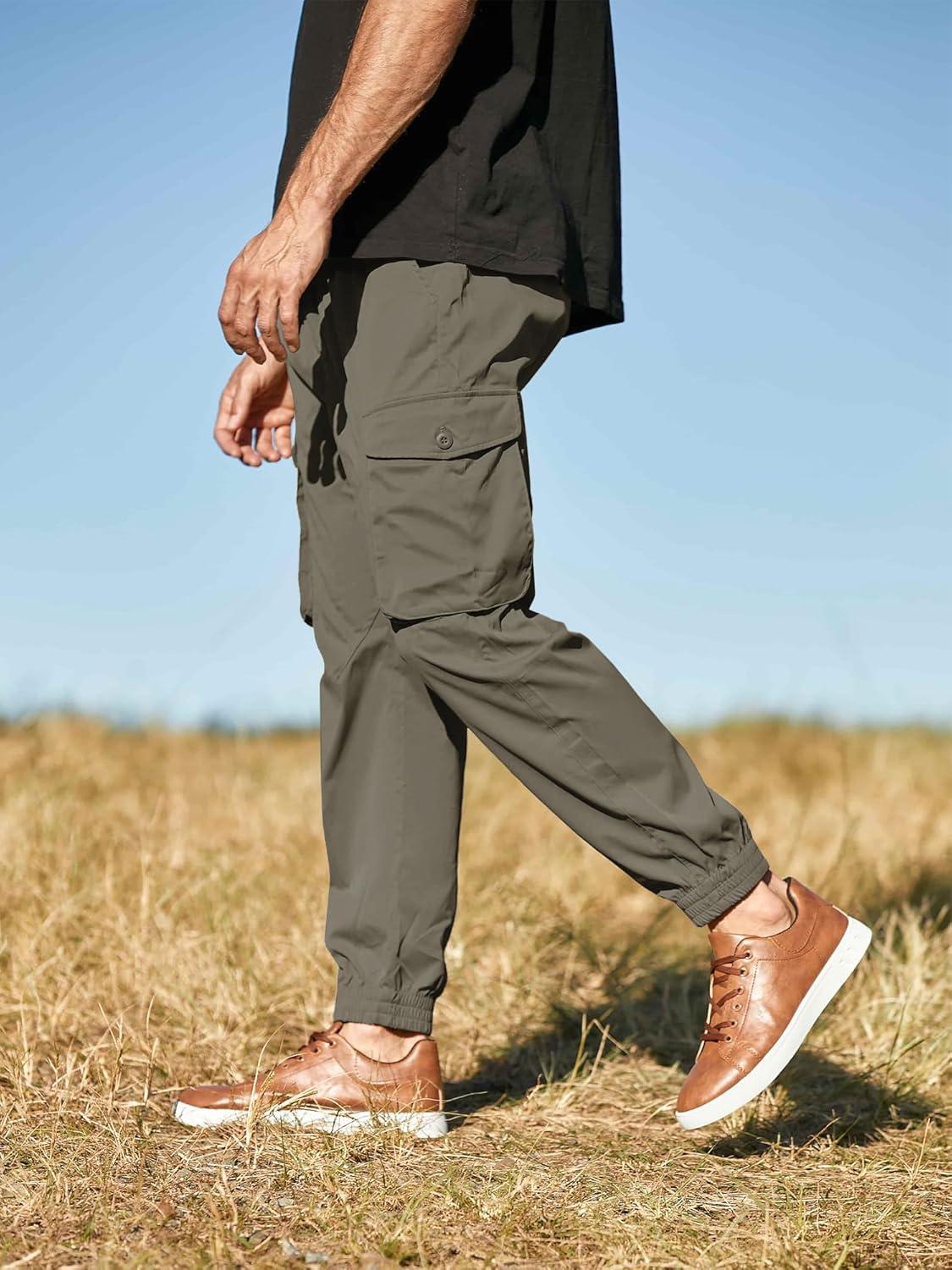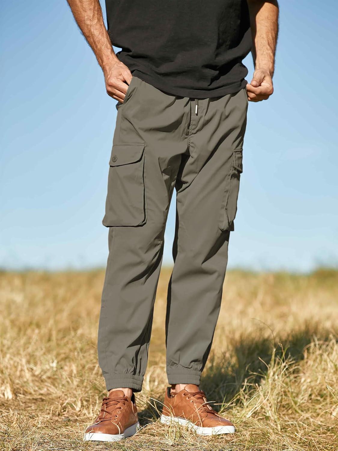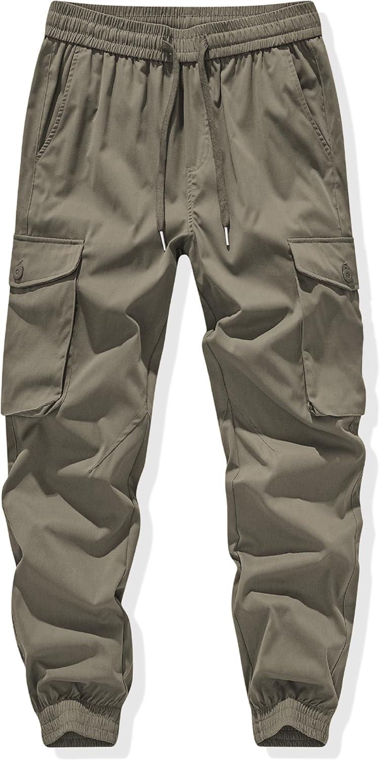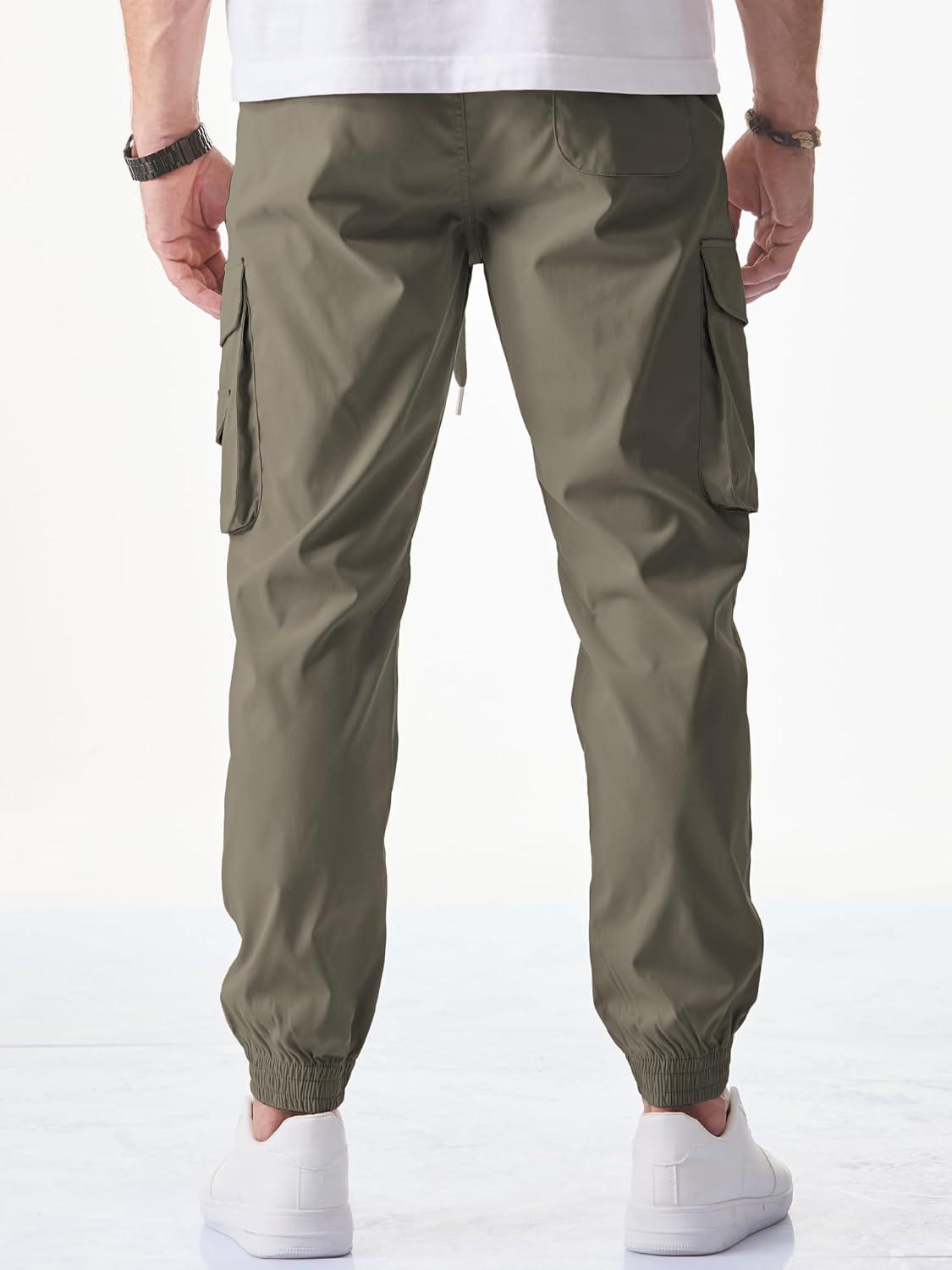 JMIERR Men’s Casual Cargo Joggers Pants Stretch Elastic Waist Drawstring Tapered Sweatpants with Pockets(Z Olive Green)