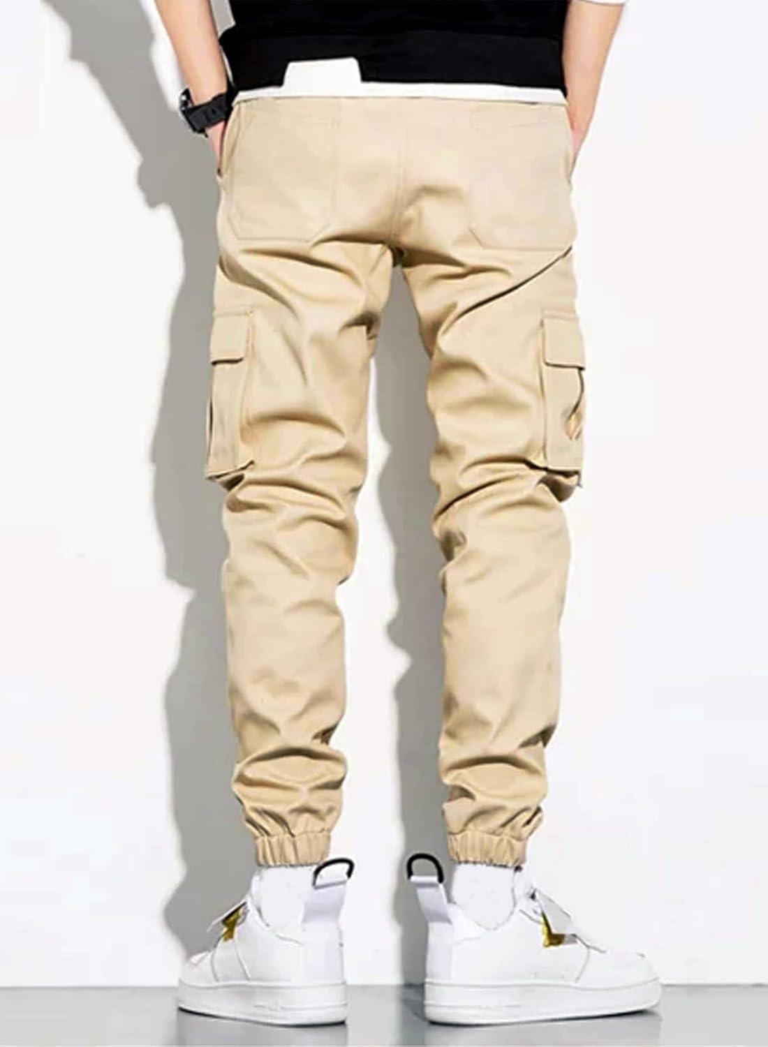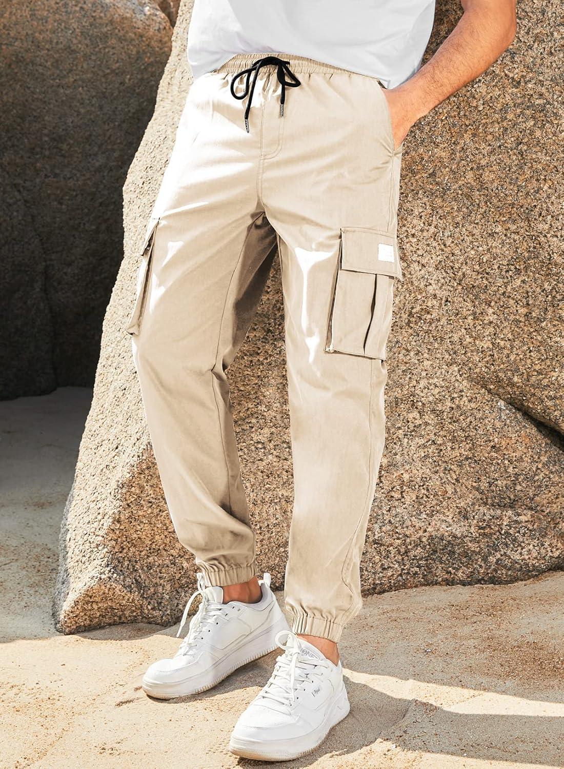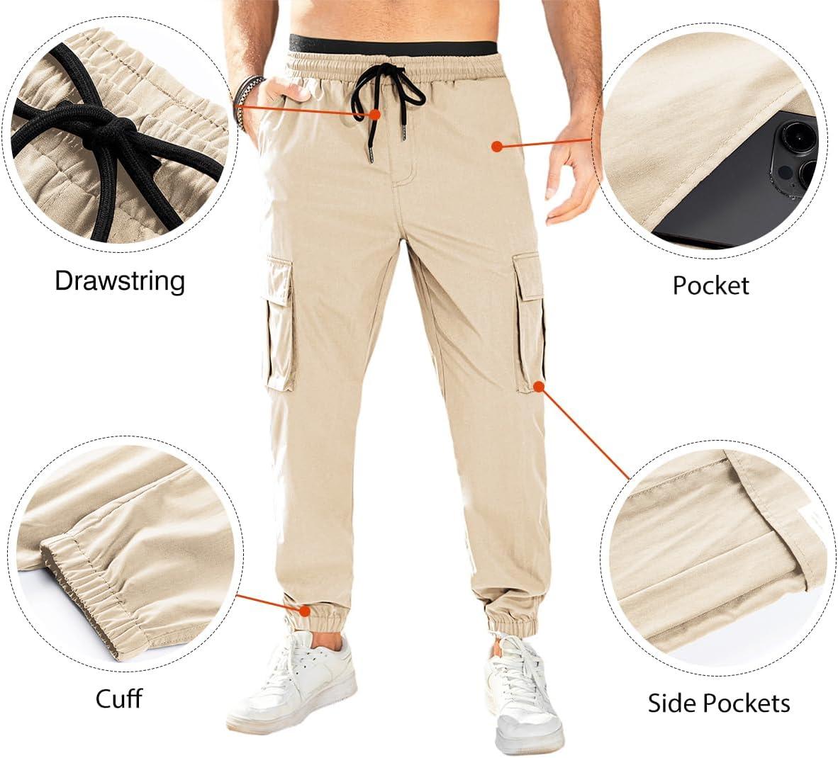JMIERR Mens Casual Cargo Pants Stretch Elastic Waist Drawstring Joggers Pants Tapered Sweatpants for Men Multi Pockets(A2 Light Khaki)