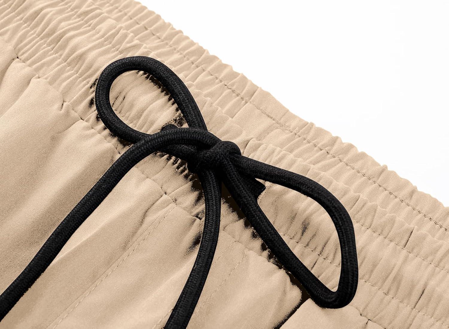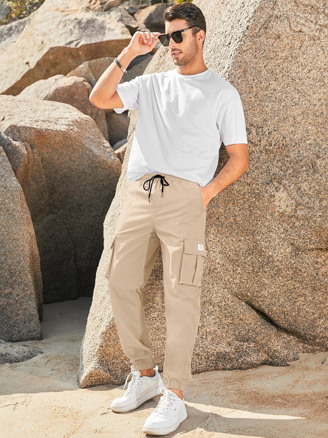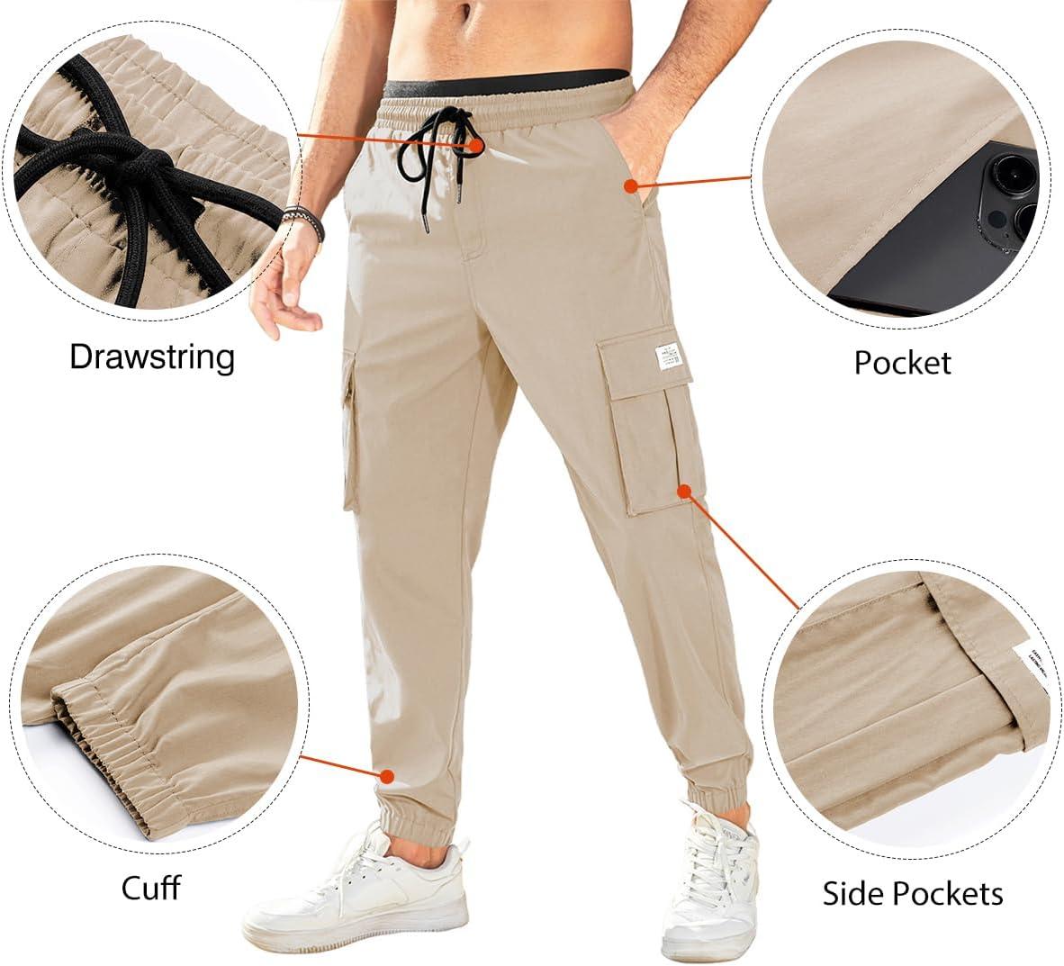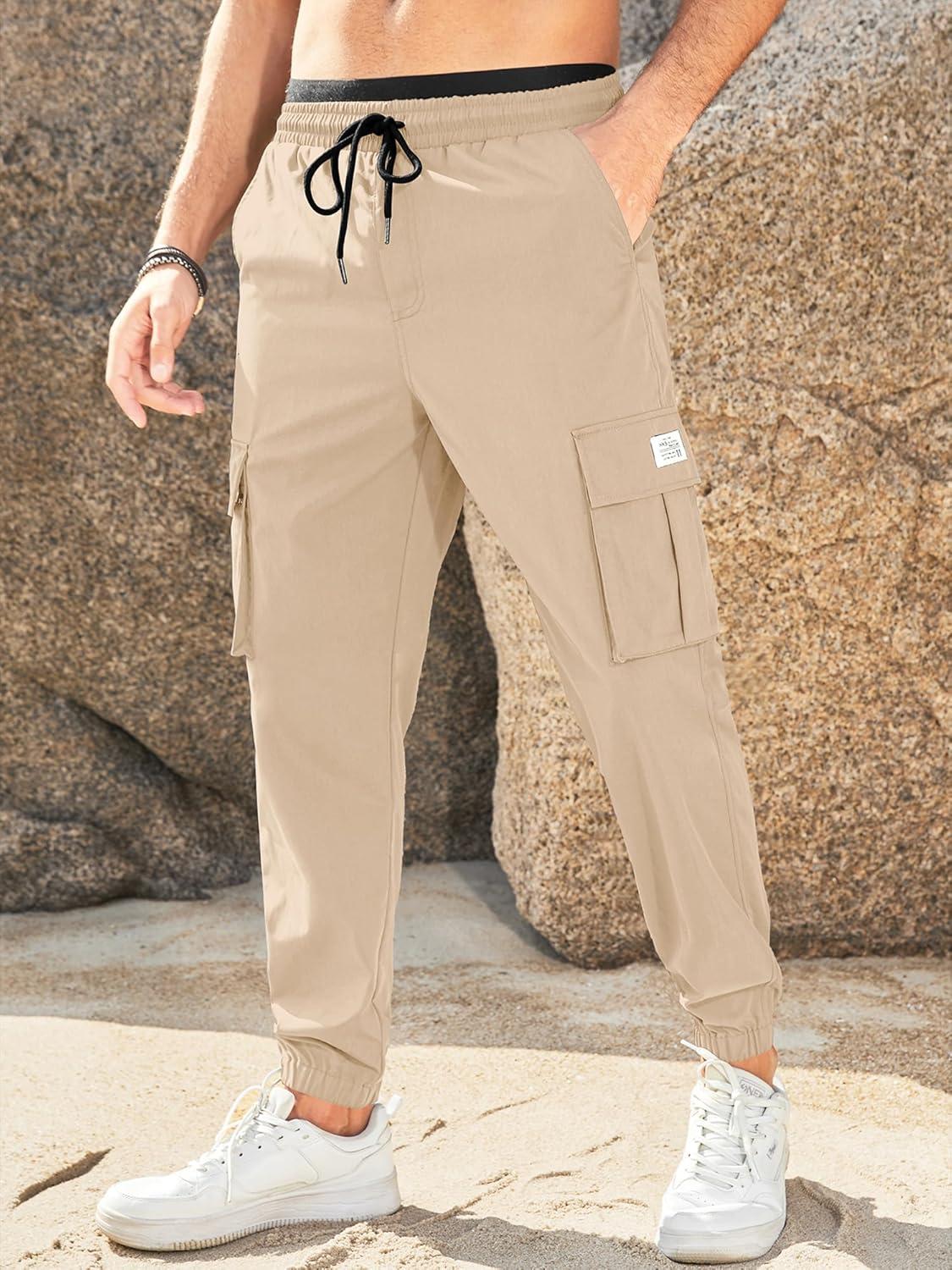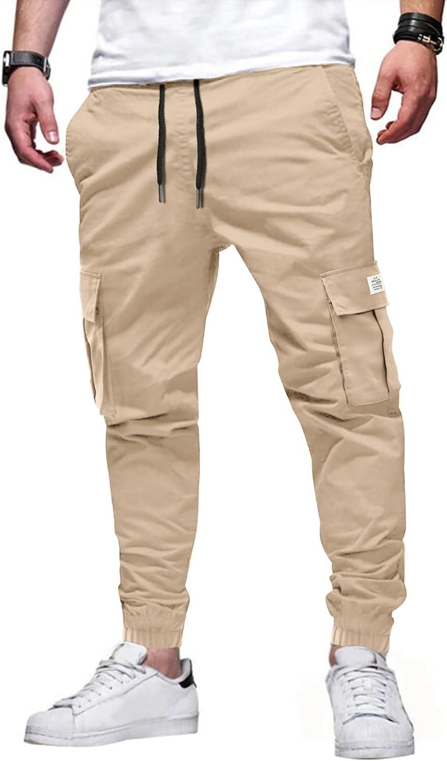 JMIERR Mens Casual Cargo Pants Stretch Elastic Waist Drawstring Joggers Pants Tapered Sweatpants for Men Multi Pockets(Apricot)