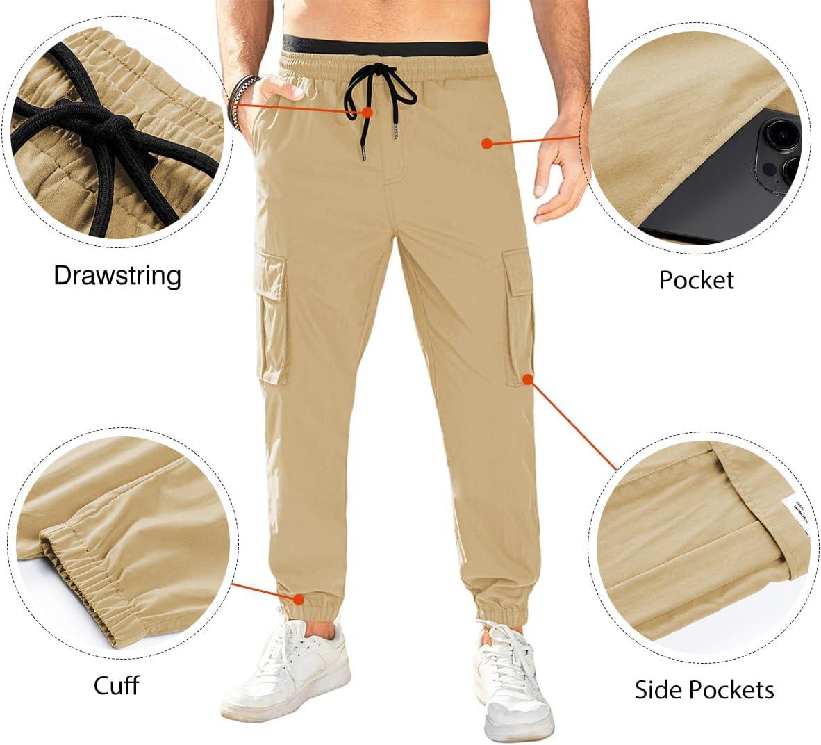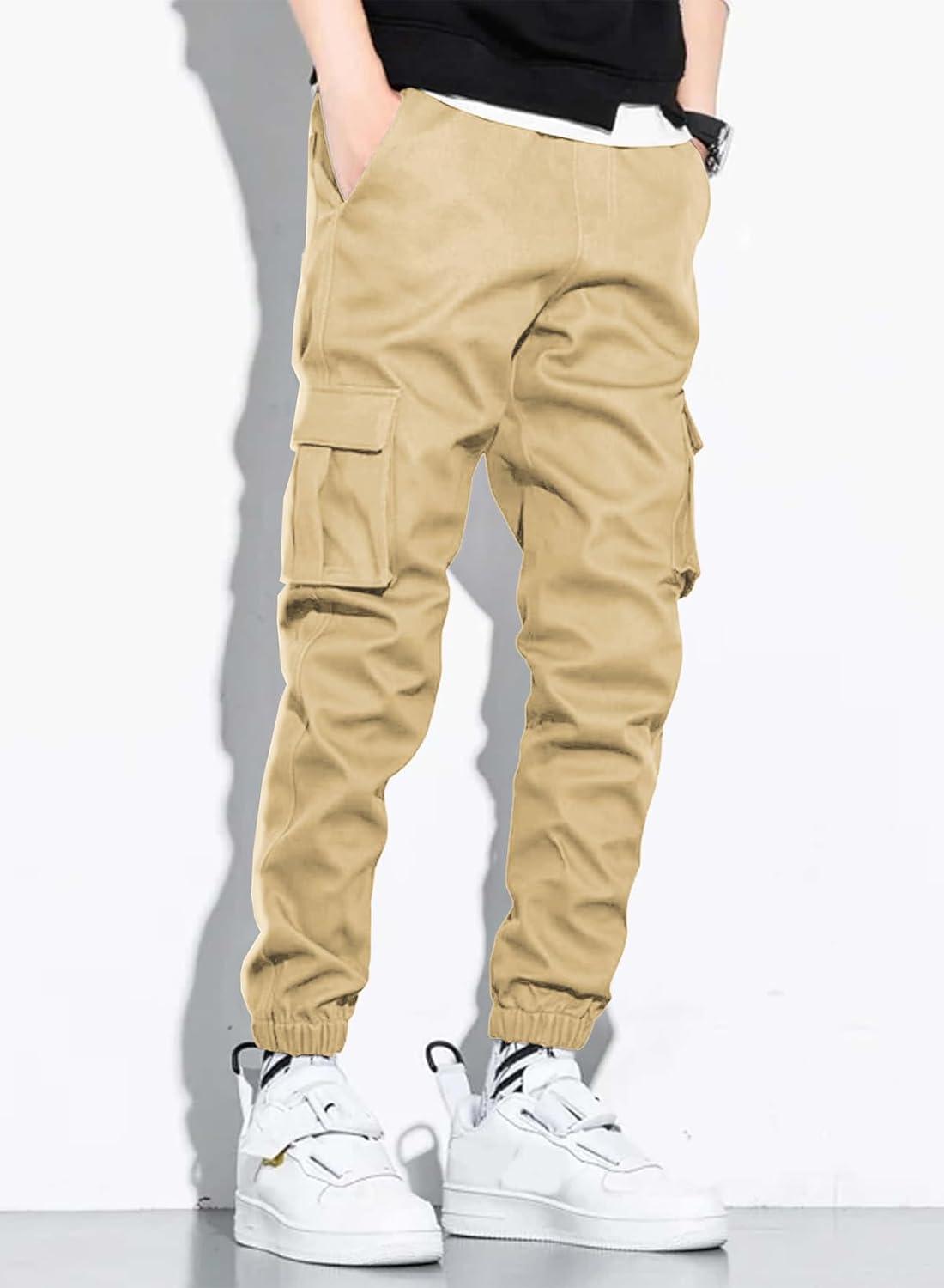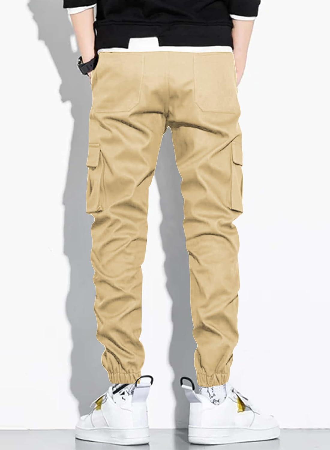 JMIERR Mens Casual Cargo Pants Stretch Elastic Waist Drawstring Joggers Pants Tapered Sweatpants for Men Multi Pockets(Khaki)
