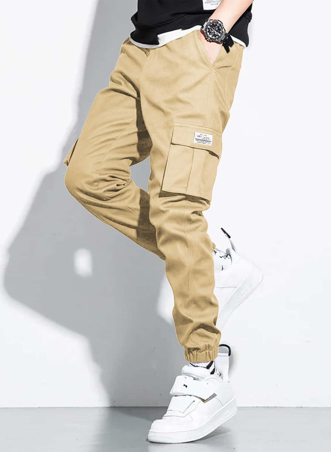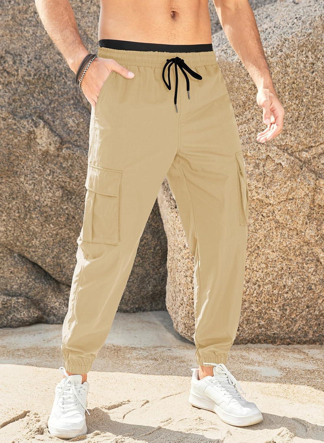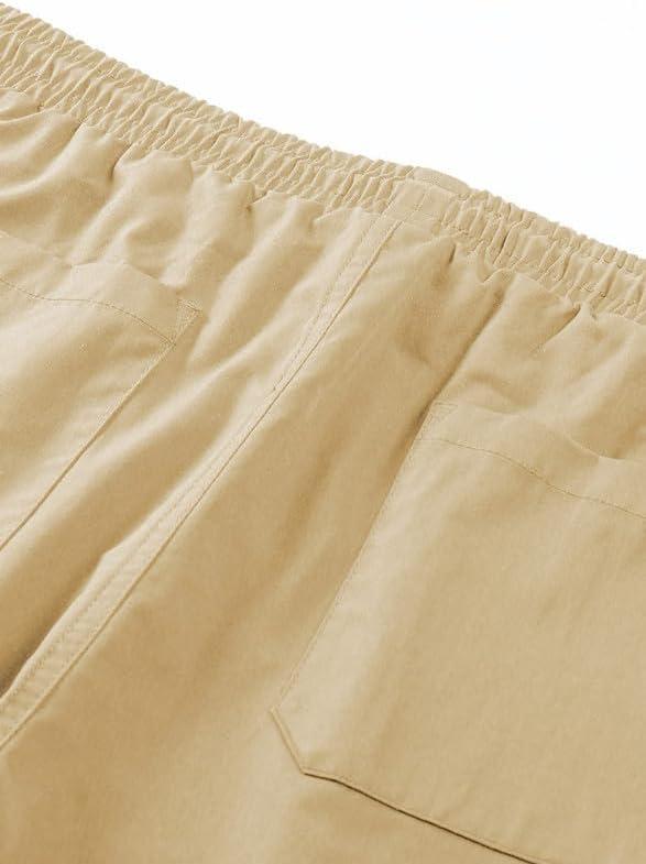 JMIERR Mens Casual Cargo Pants Stretch Elastic Waist Drawstring Joggers Pants Tapered Sweatpants for Men Multi Pockets(Khaki)