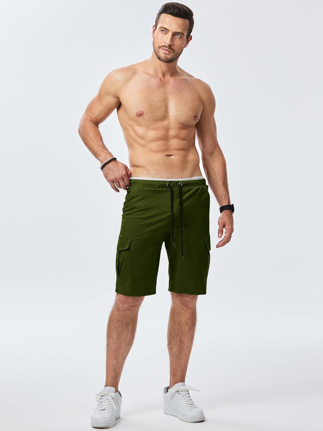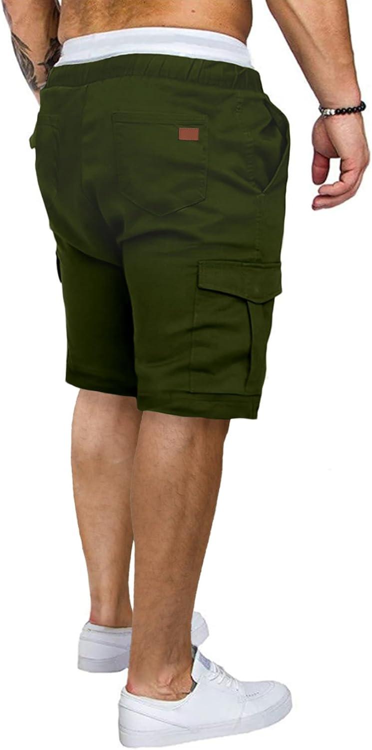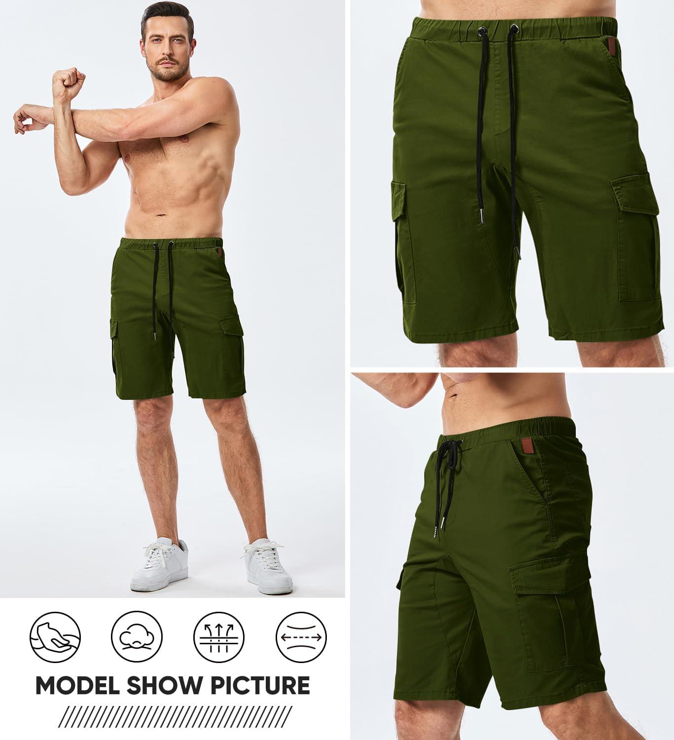 JMIERR Mens Casual Cargo Shorts – Cotton Drawstring Stretch Summer Beach Shorts Twill Chino Short with 6 Pockets(A Green)