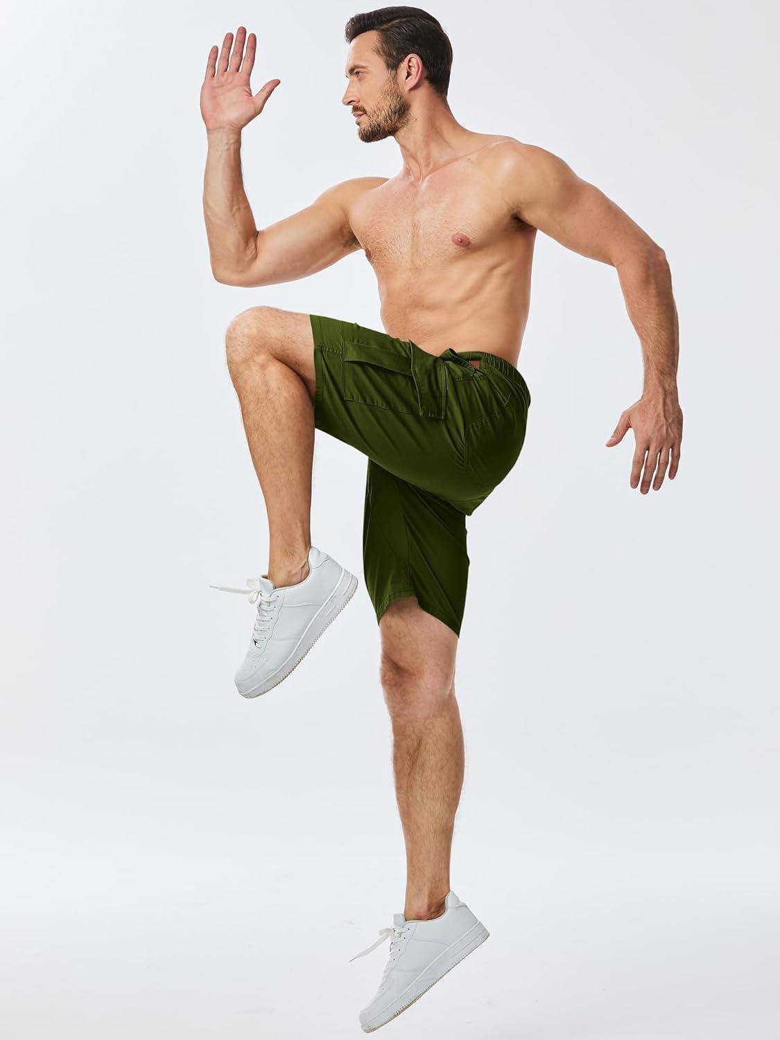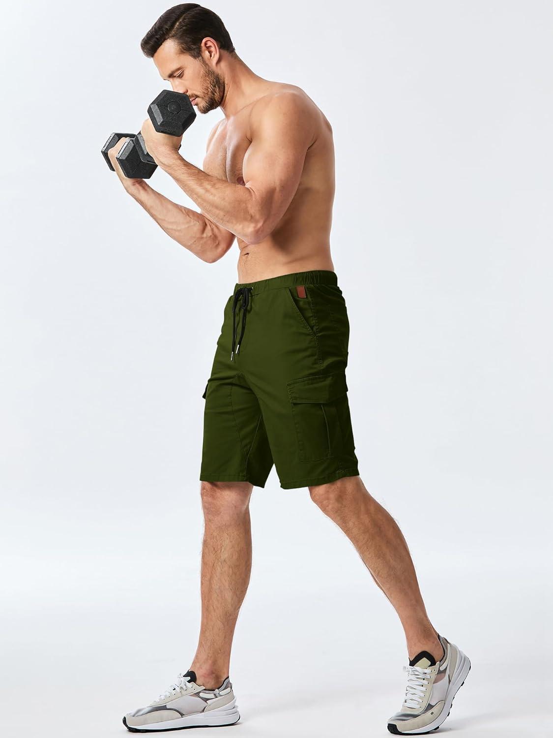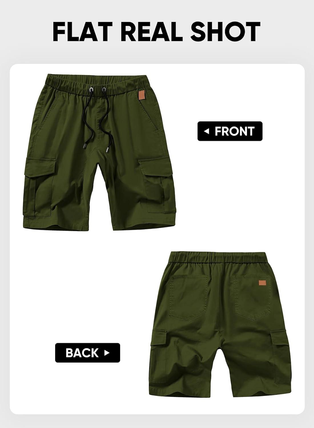 JMIERR Mens Casual Cargo Shorts – Cotton Drawstring Stretch Summer Beach Shorts Twill Chino Short with 6 Pockets(A Green)