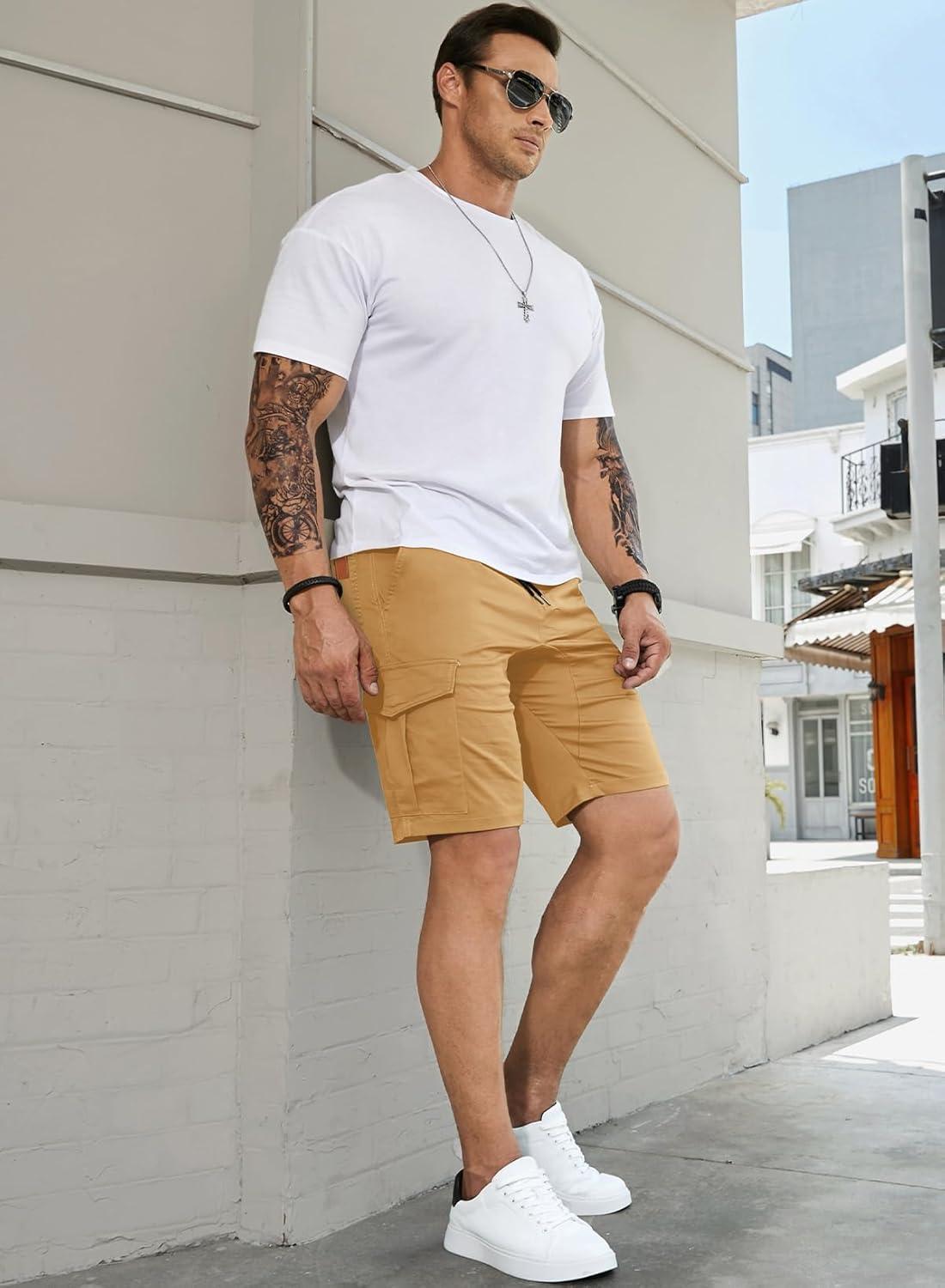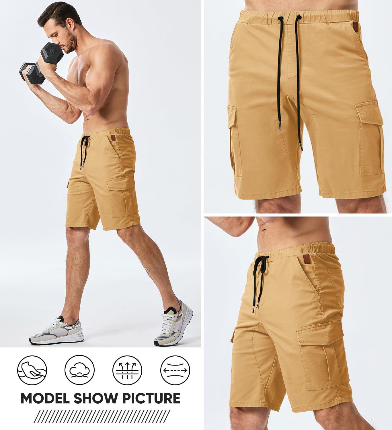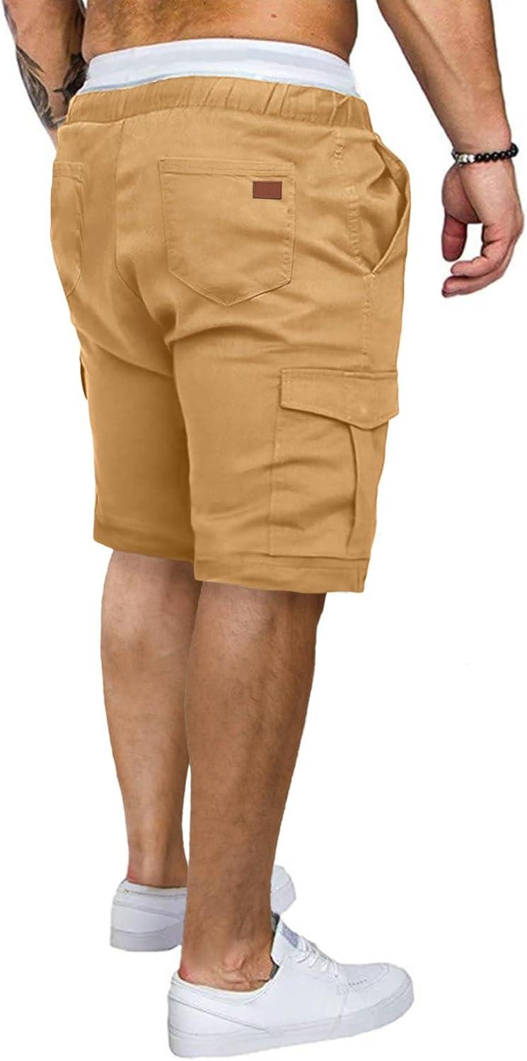JMIERR Mens Casual Cargo Shorts – Cotton Drawstring Stretch Summer Beach Shorts Twill Chino Short with 6 Pockets(A Khaki3)