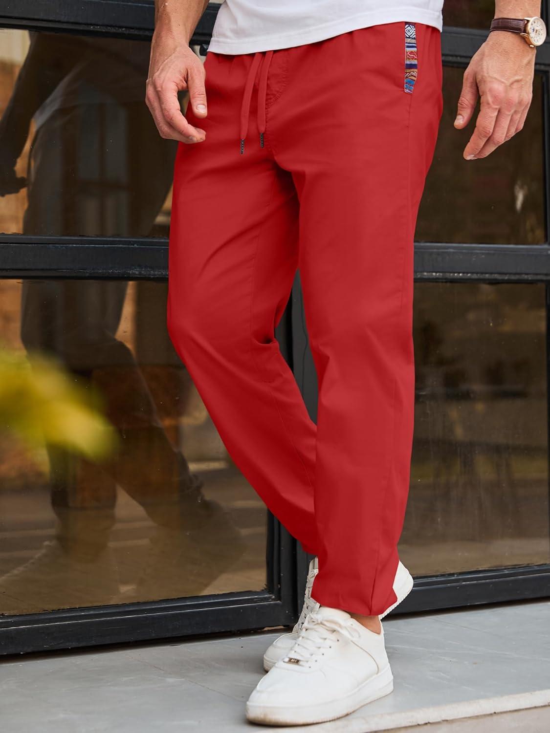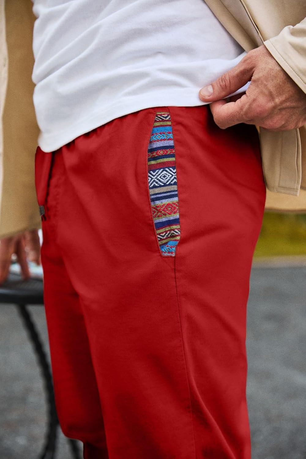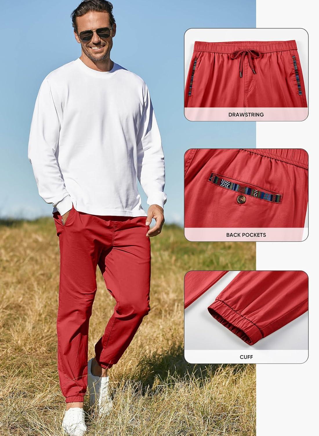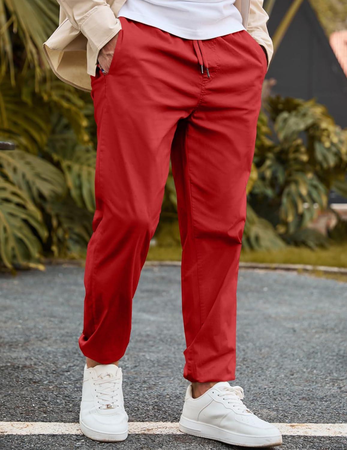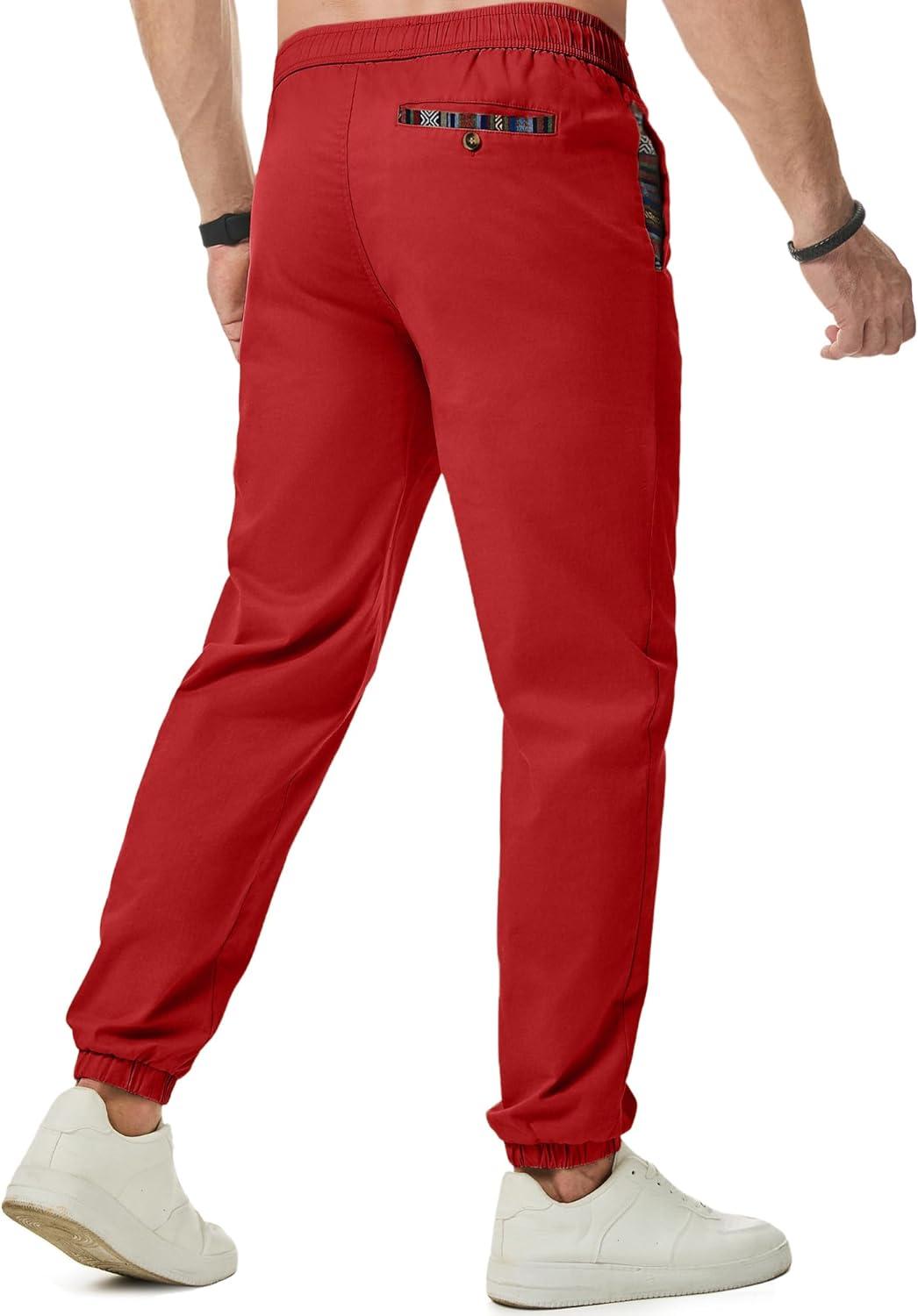 JMIERR Men’s Casual Chino Joggers Pants Cotton Twill Elastic Drawstring Waist Tapered Pants with Pockets(Red)